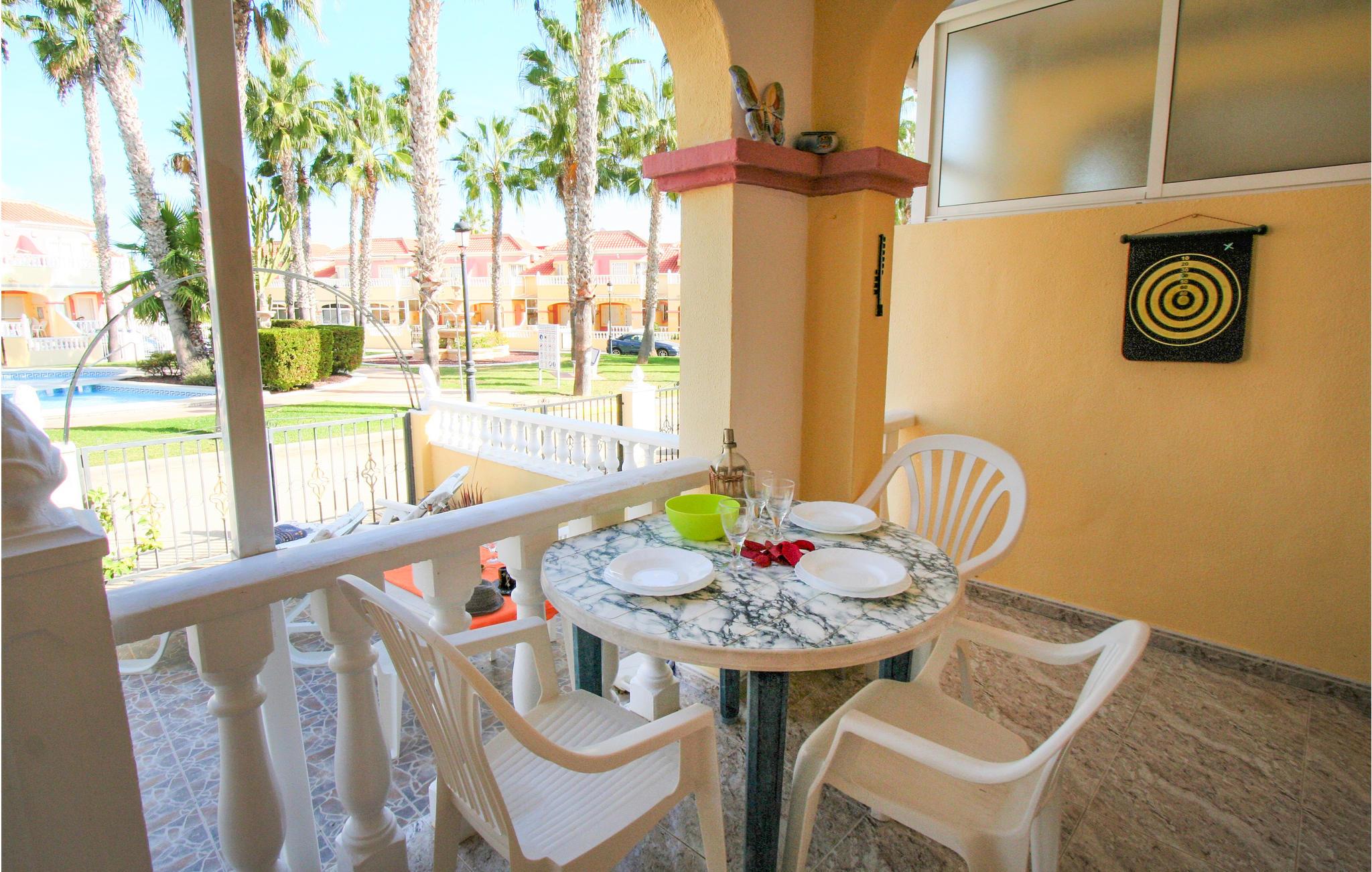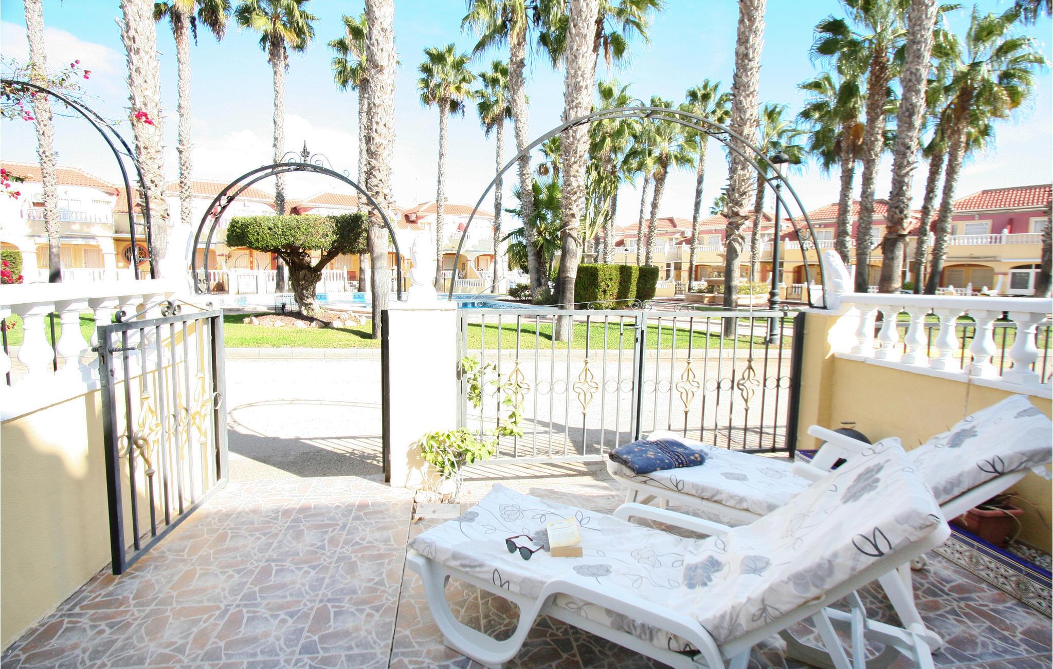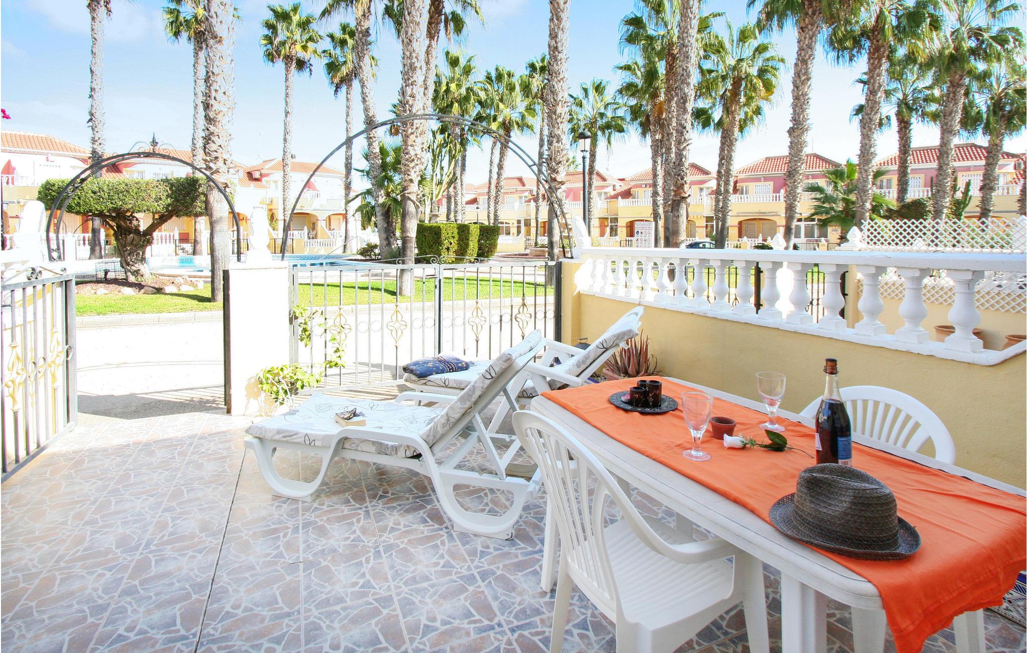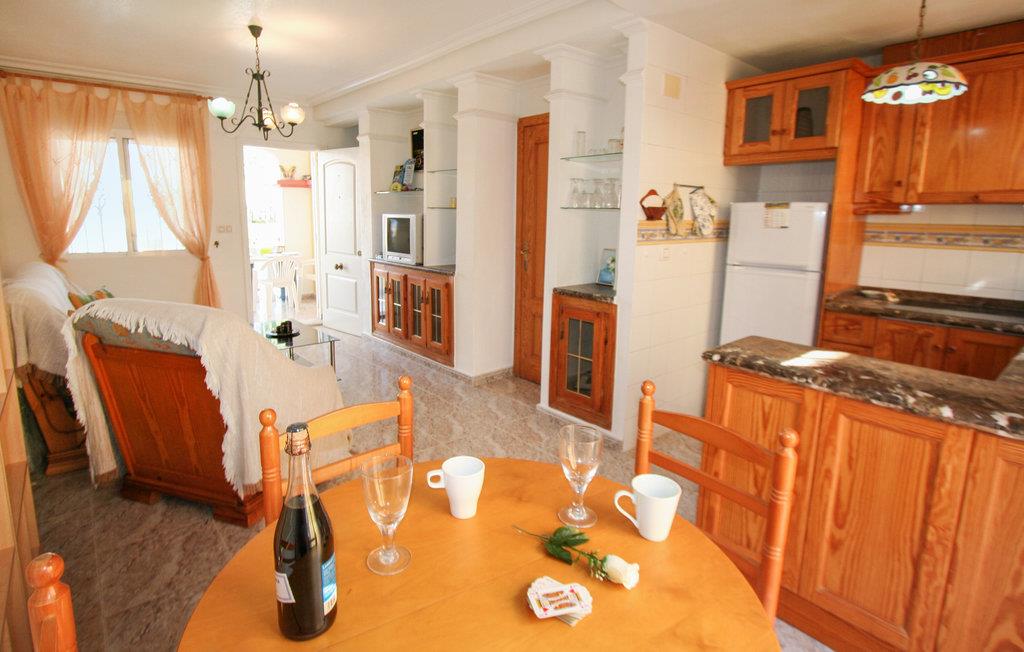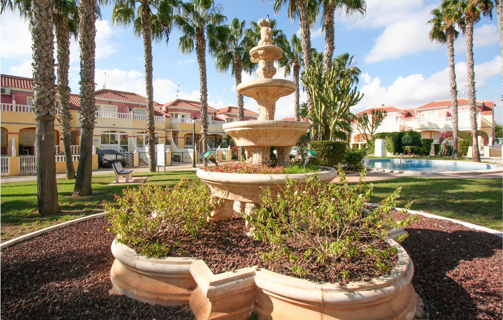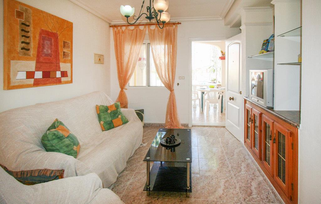 Dette rækkehus ligger i rolige omgivelser med udsigt til den fælles pool i feriekomplekset Colinas de la Zenia, tæt på havet og den skønne sandstrand. Her kan I holde ferie året rundt – forkæl jer selv med en skøn lang vinterferie i det behagelige klima – eller kom om sommeren hvor der er solgaranti. Ud over et populært indkøbscenter er der alle mulige servicetilbud i La Zenia. Der er to km til nærmeste golfbane og nærmeste restaurant ligger kun 400 m væk. Den nærmeste by er den livlige badeby Torrevieja (otte km), med mange former for restauranter, underholdning og seværdigheder.