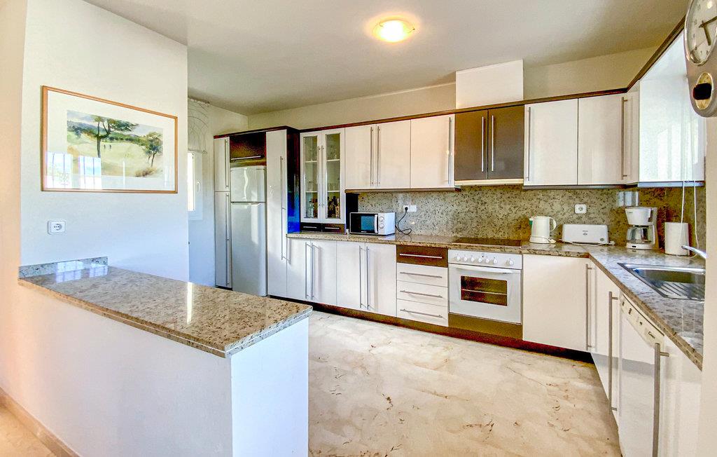 Det lyse og behageligt indrettede feriehus har plads i 3 soveværelser, 2 badeværelser, køkken med spisestue, opholdsstue og separat toilet og er derfor ideel til en ferie med hele familien. I det store og veludstyrede køkken kan I tilberede måltider sammen, mens de andre gæster slapper af i stuen med et stort tv.