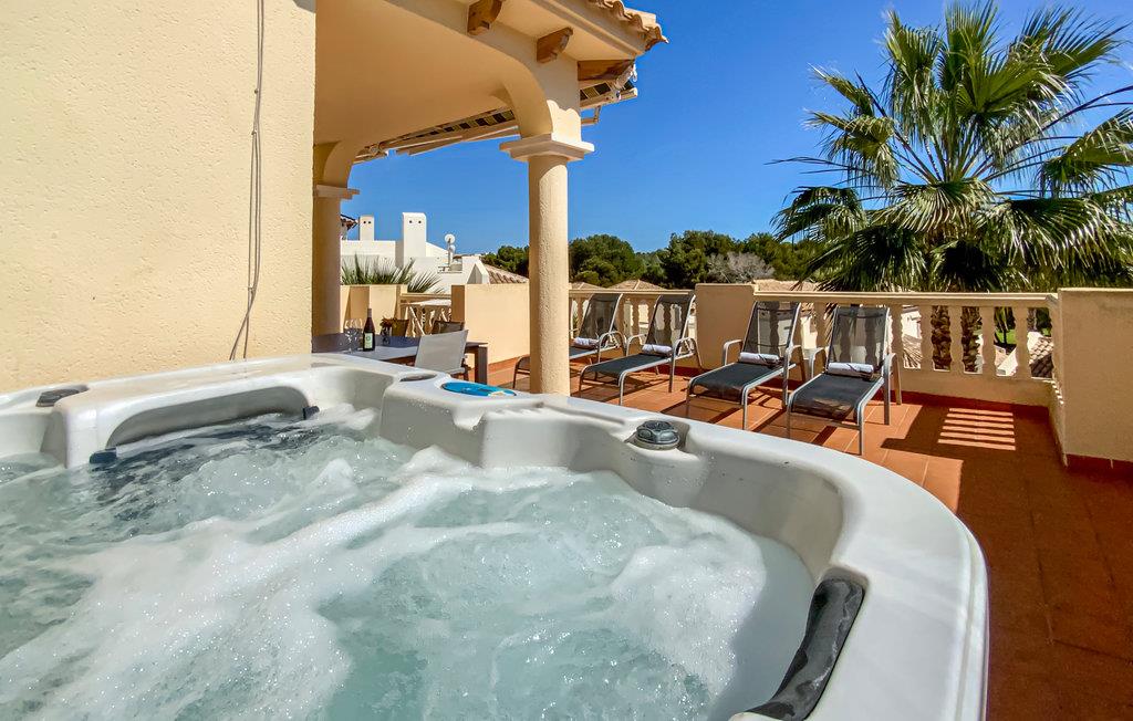 Et højdepunkt i huset er det smukke poolområde med liggestole, hvor I kan afslutte dagen med et glas vin eller tilbringe mange afslappende øjeblikke i solen. Poolen tilbyder behagelig afkøling på varme dage. I kan også nyde en afslappende tur i husets boblebad. Terrassen inviterer jer til at tilbringe hyggelige aftener med familie eller venner.