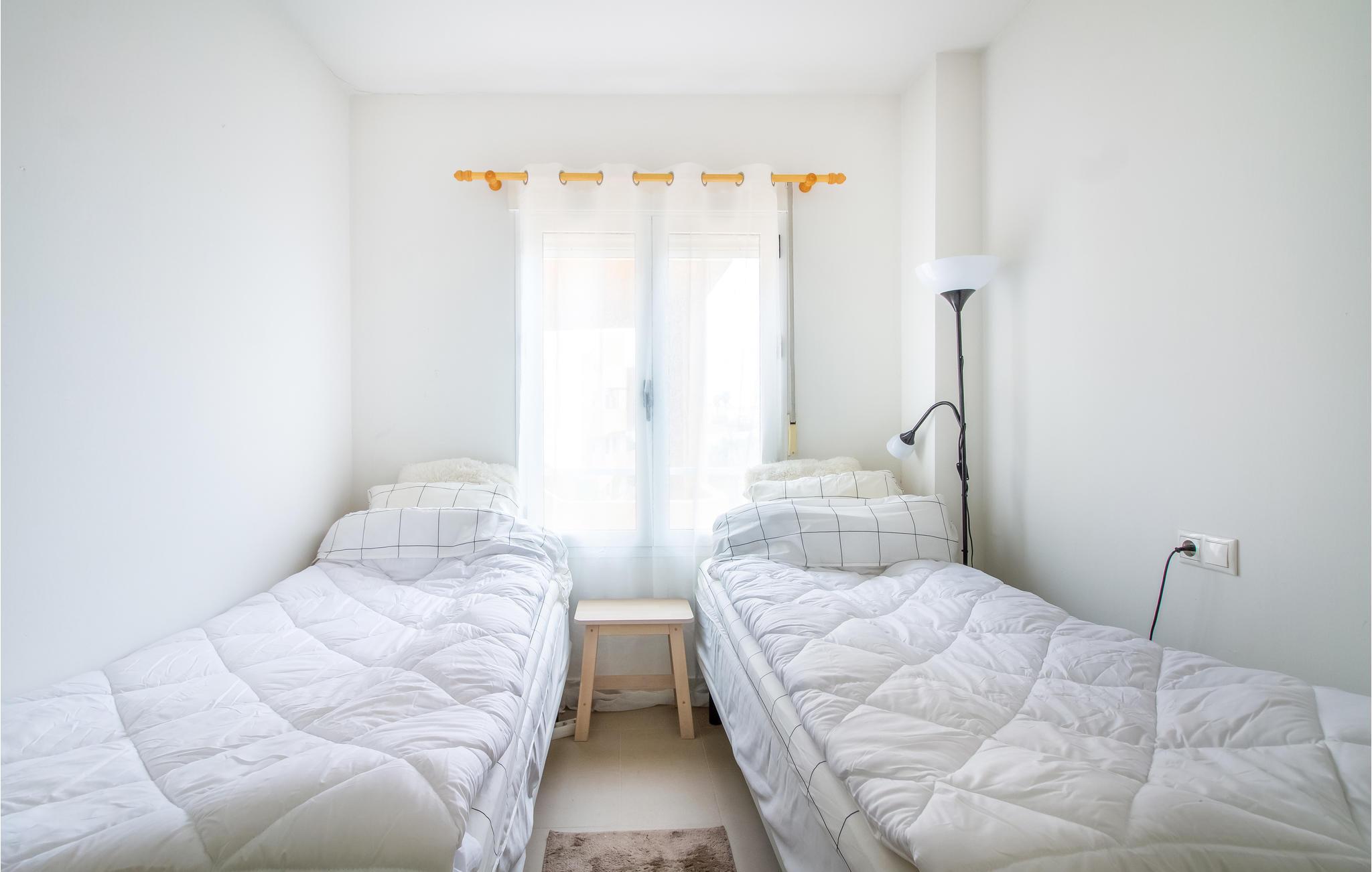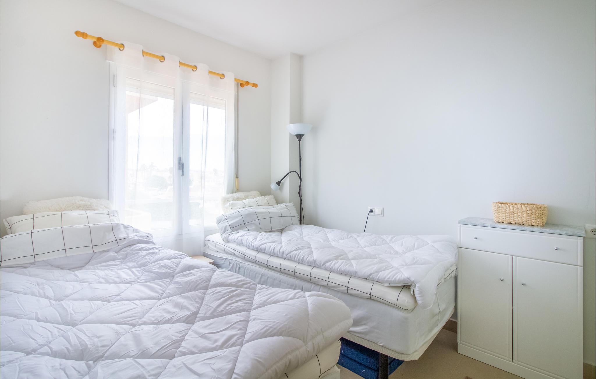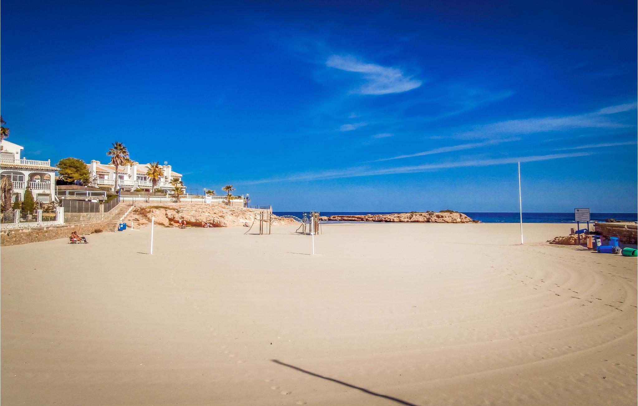 Denne indbydende ferielejlighed ligger på kysten syd for Torrevieja. Indretningen er komfortabel, lys og hjemlig, og størrelsen er velegnet til en familie eller for to vennepar.