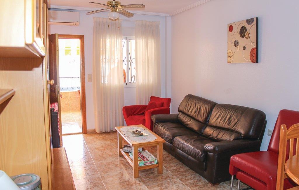 Denne praktiske ferielejlighed i et populært boligkompleks tilbyder jer alt hvad I behøver for en vellykket ferie. Lyse værelser og ferievenlig indretning skaber en behagelig atmosfære for feriegæster i alle aldre. Boligkomplekset er noget særligt med sin nærhed til adskillige faciliteter og lægger op til at slappe af efter en spændende dag i området. Orihuela Costa byder på utallige muligheder for udflugter. Oplev den nærliggende by Torrevieja, kendt for sin saltproduktion og imponerende saltlaguner. Gå en tur langs promenaden eller besøg de gyldne sandstrande ved kysten. Golfentusiaster vil finde adskillige golfbaner i regionen, og vandsportsfans vil også få noget for pengene. Udforsk den livlige bymidte med restauranter, butikker og et pulserende natteliv.
