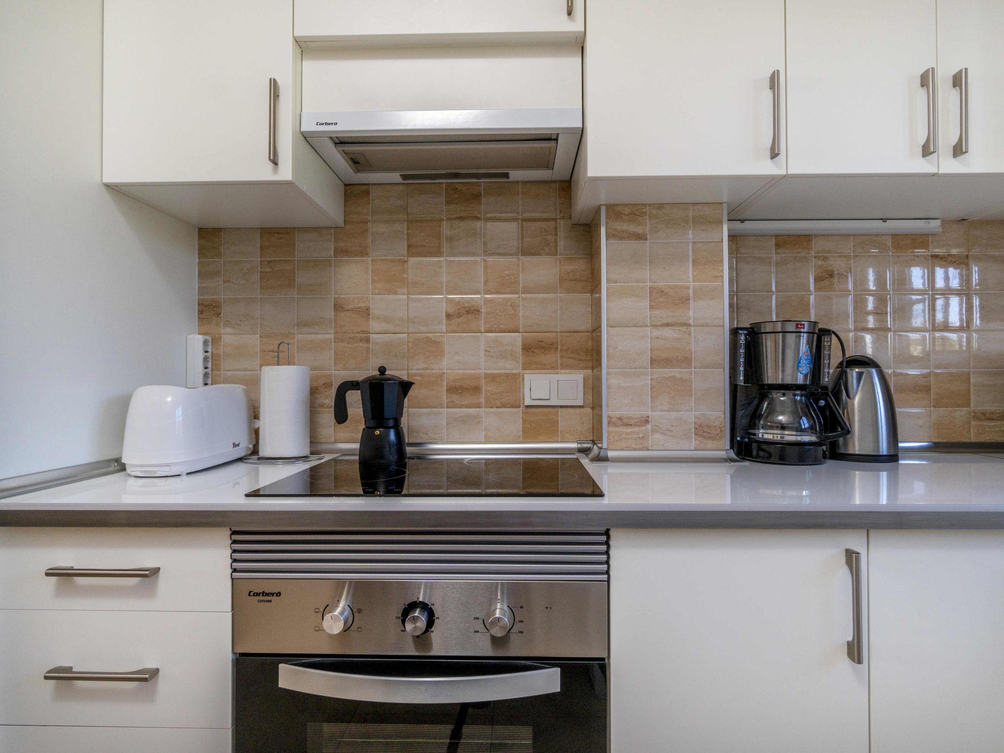 3-room apartment 55 m2 on 1st floor. Bright, comfortable furnishings: living/dining room with dining table, international TV channels, flat screen, air conditioning and forced-air heating. Exit to the terrace. 1 room with 1 french bed (150 cm, length 190 cm). 1 room with 1 bed (90 cm, length 190 cm). Open kitchen (oven, dishwasher, 4 ceramic glass hob hotplates, kettle, microwave, freezer, electric coffee machine). Shower/WC. Electric heating, forced-air heating. 2 terraces. Terrace furniture. Beautiful view of the sea. Facilities: washing machine, dryer, iron, hair dryer. Internet (WiFi, free). Parking. Please note: suitable for families. Non-smokers only. Private entrance, smoke alarm. VT-467041-A // Reg. Nr.: ESFCTU00000304800048026900000000000000000VT-467041-A1