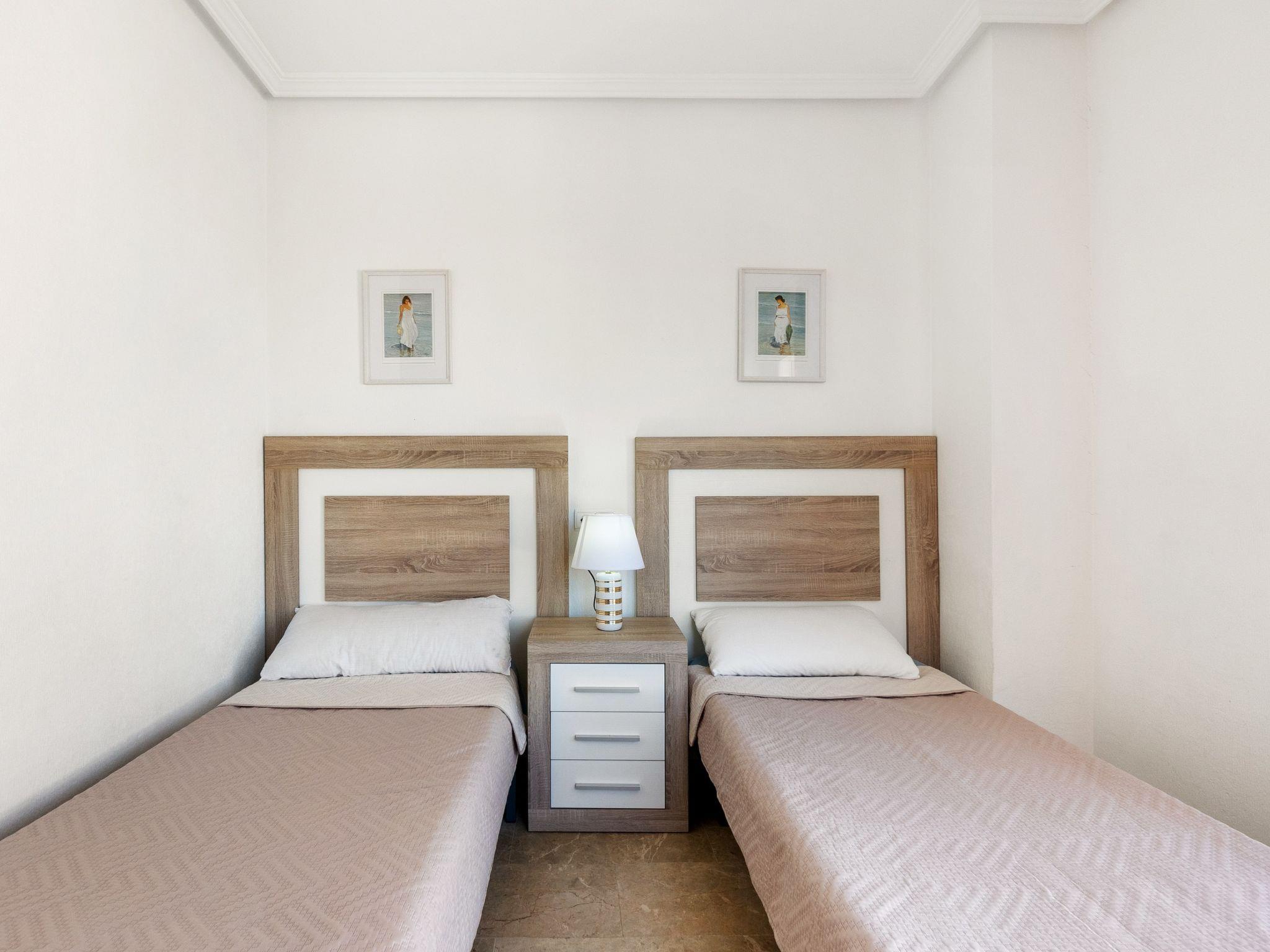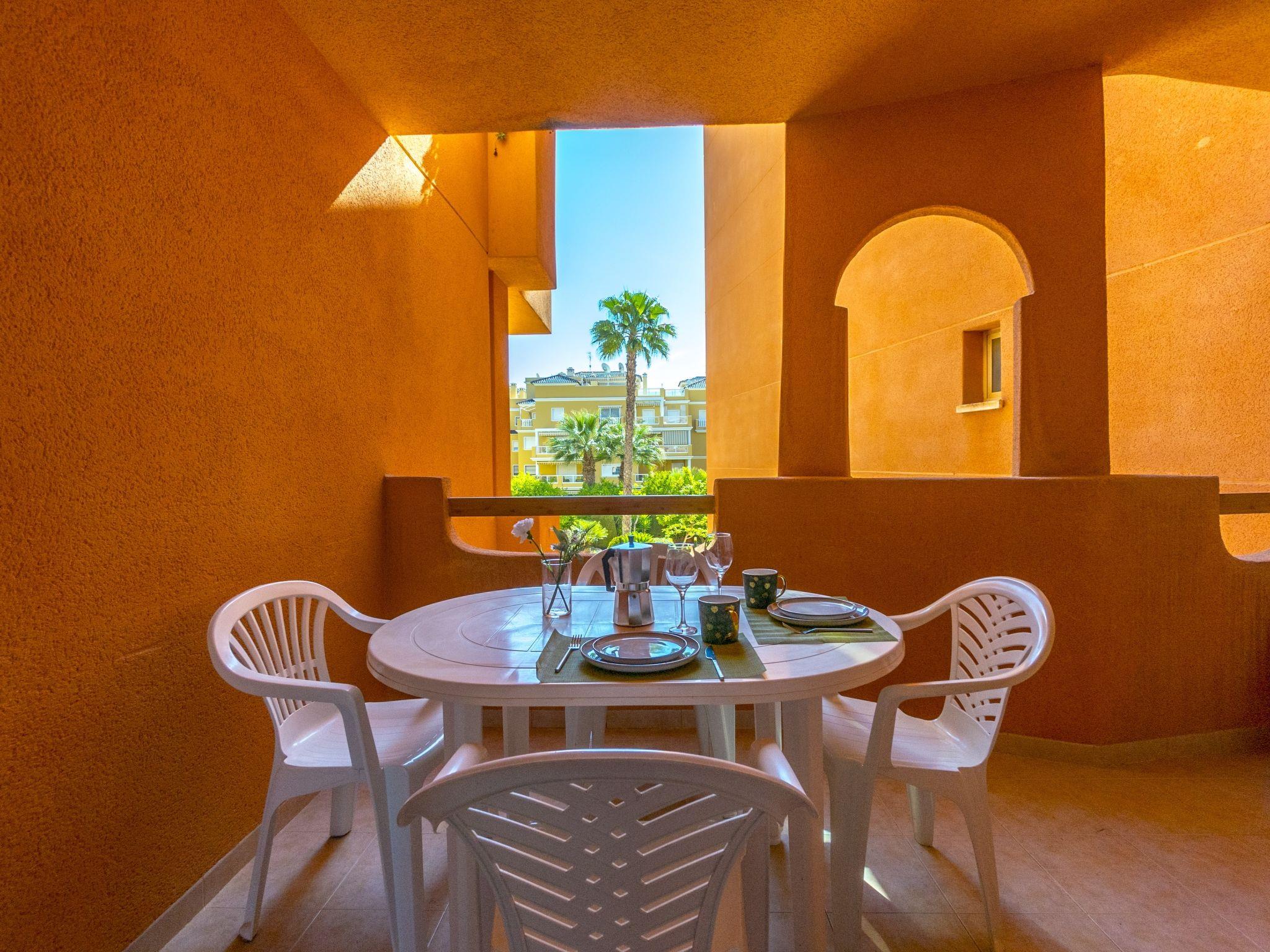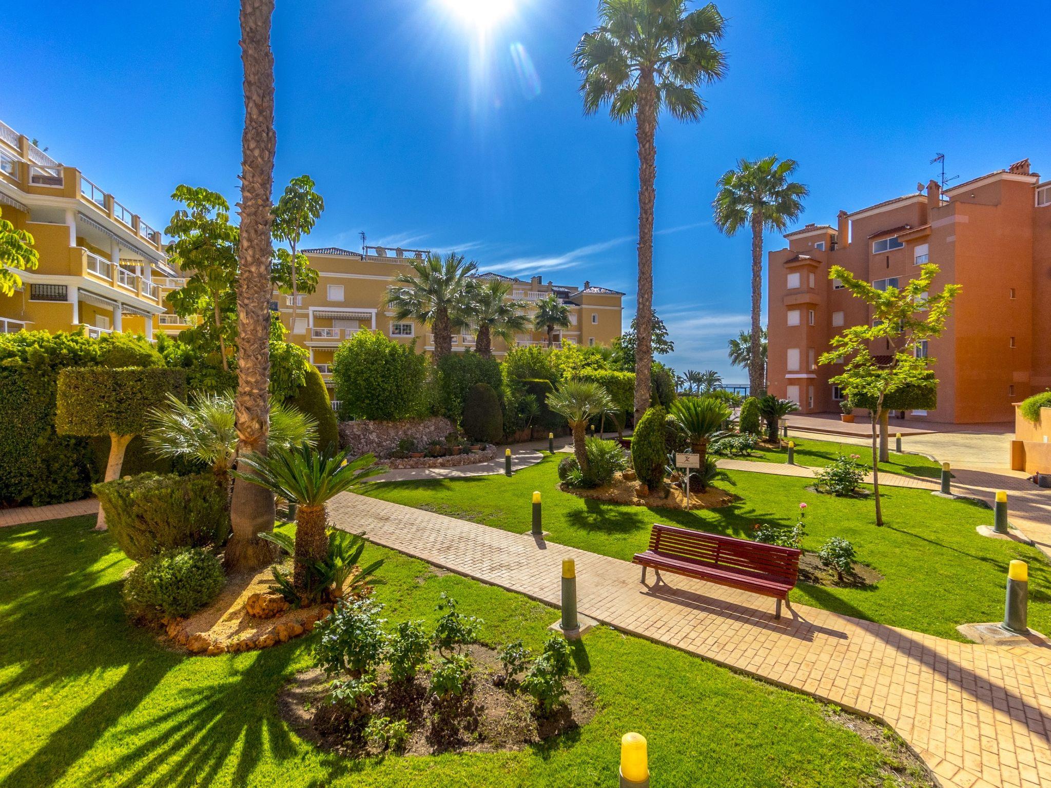 Urb. Campoamor 9 km from de Torrevieja: Swimming pool with sea views. Residence "Las Calitas". 100 m from the sea. For shared use: garden with lawn and plants, swimming pool fenced (seasonal availability: 01.Jan. - 31.Dec.). Children's pool, outdoor shower. In the house: lift. Communal covered parking space n 29. Shop 100 m, shopping centre 2 km, restaurant, bar 50 m, bicycle rental 2 km, bus stop "C/ Isla Tabarca, front 6" 1 km, railway station "Orihuela" 25 km, sandy beach "Aguamarina" 600 m, public bathing area 200 m. Sports harbour 500 m, golf course (18 hole) 5 km. Please note: suitable for families, baby equipment on request (extra).