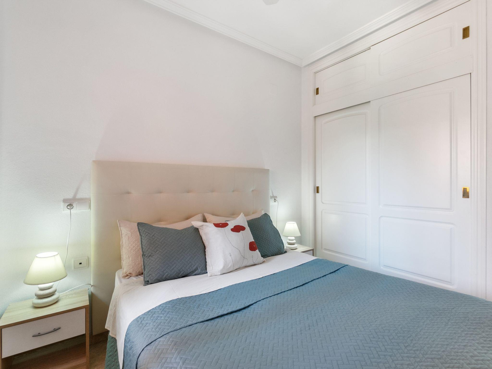 "Las Calitas Bloque III", 3-room apartment 60 m2 on 1st floor. Simple furnishings: living/dining room with 1 double sofabed (130 cm, length 190 cm), dining table, digital TV, flat screen, radio, air conditioning and forced-air heating. Exit to the loggia. 1 room 12 m2 with 1 double bed (135 cm, length 190 cm), bath/bidet/WC, air conditioning and forced-air heating. 1 room 12 m2 with 2 beds (80 cm, length 190 cm), air conditioning and forced-air heating. Small, open kitchen 5 m2 (oven, 4 ceramic glass hob hotplates). Shower/bidet/WC. Boiler (50 litres). Balcony 9 m2. Terrace furniture. Partial view of the garden. Facilities: washing machine, iron. Internet (WiFi). Garage space n 29. Please note: suitable for families. Parking space for small car only. Maximum 1 small pet/ dog allowed. TV only ES. AT-441626-A
