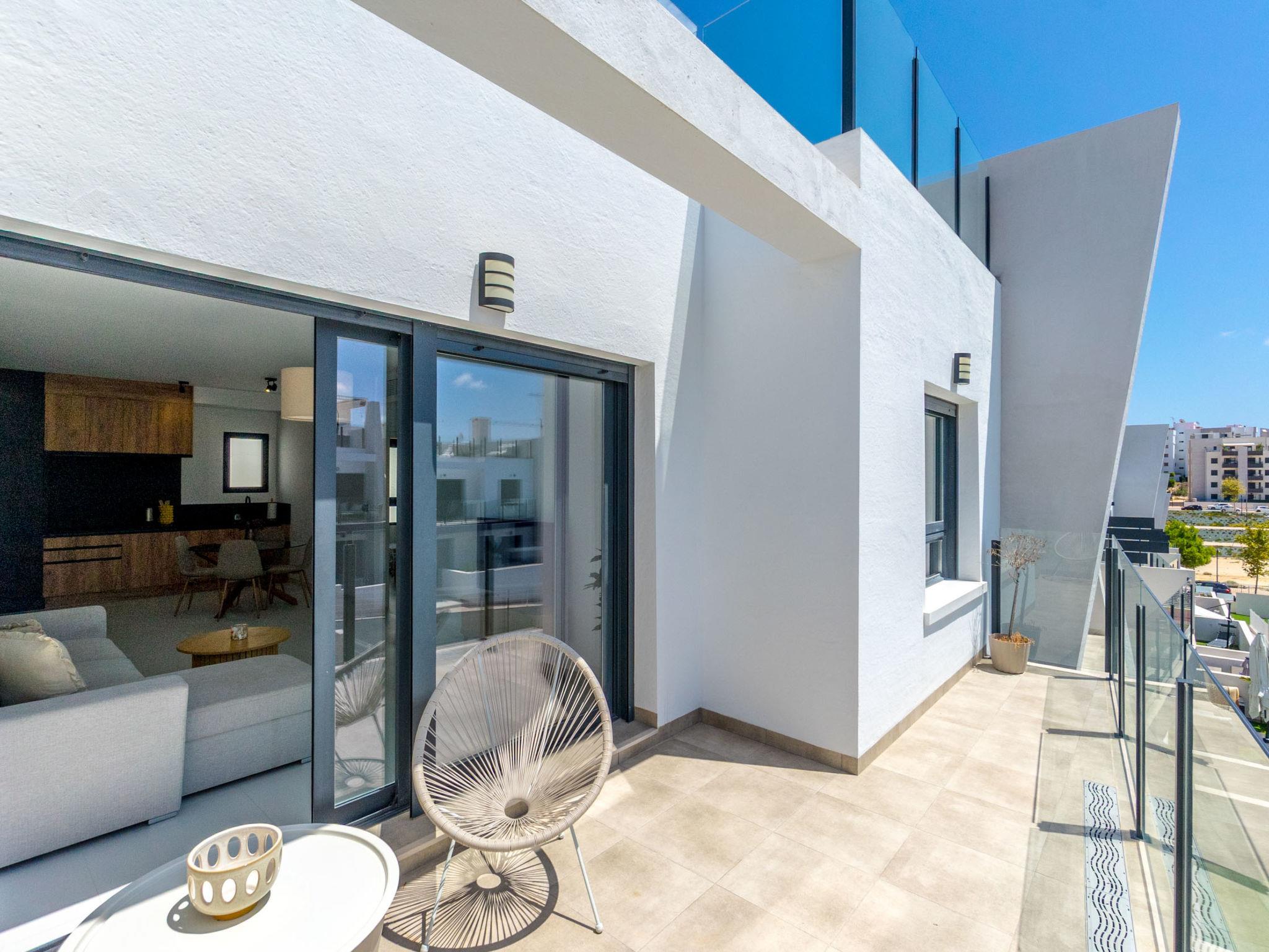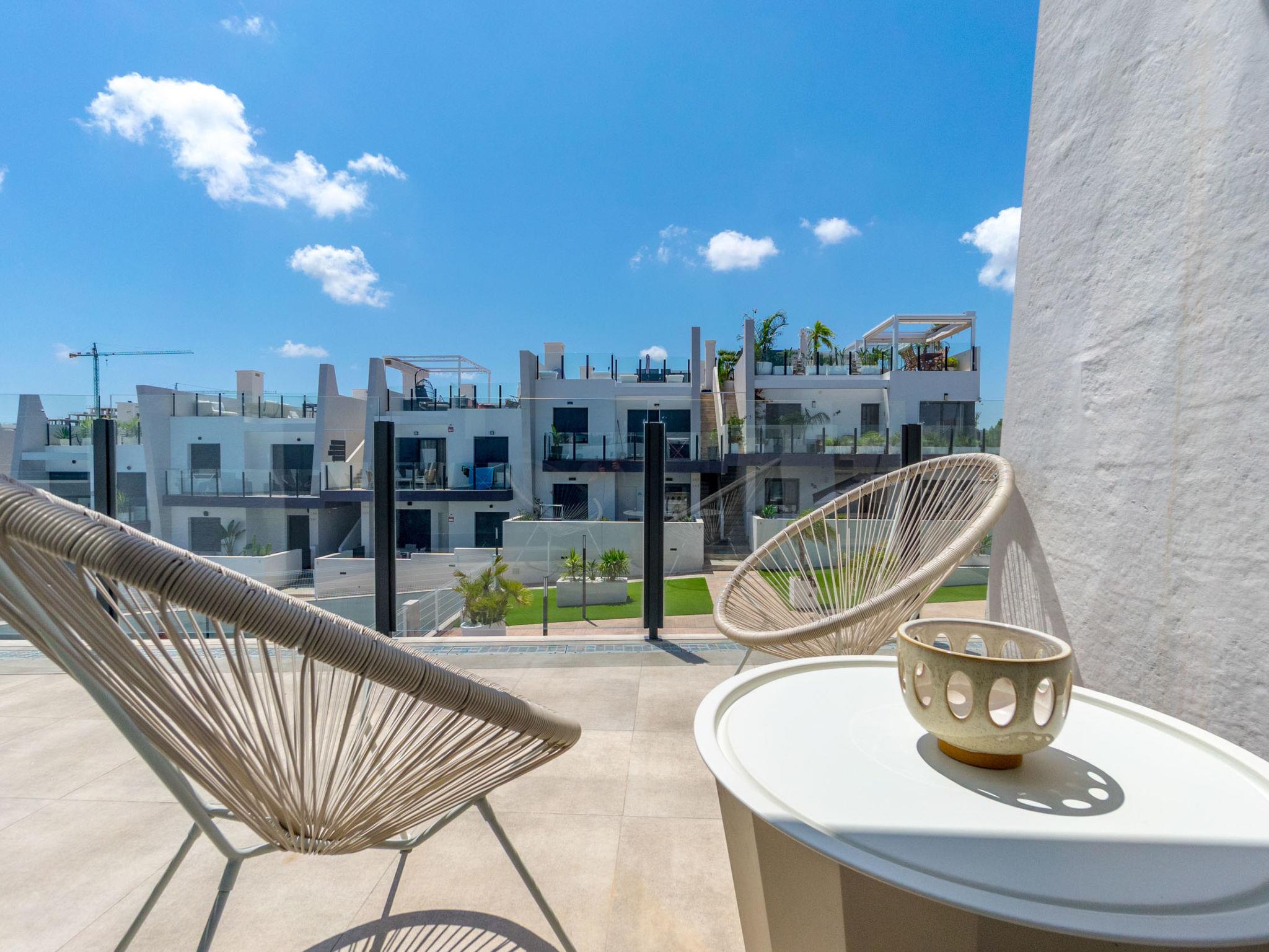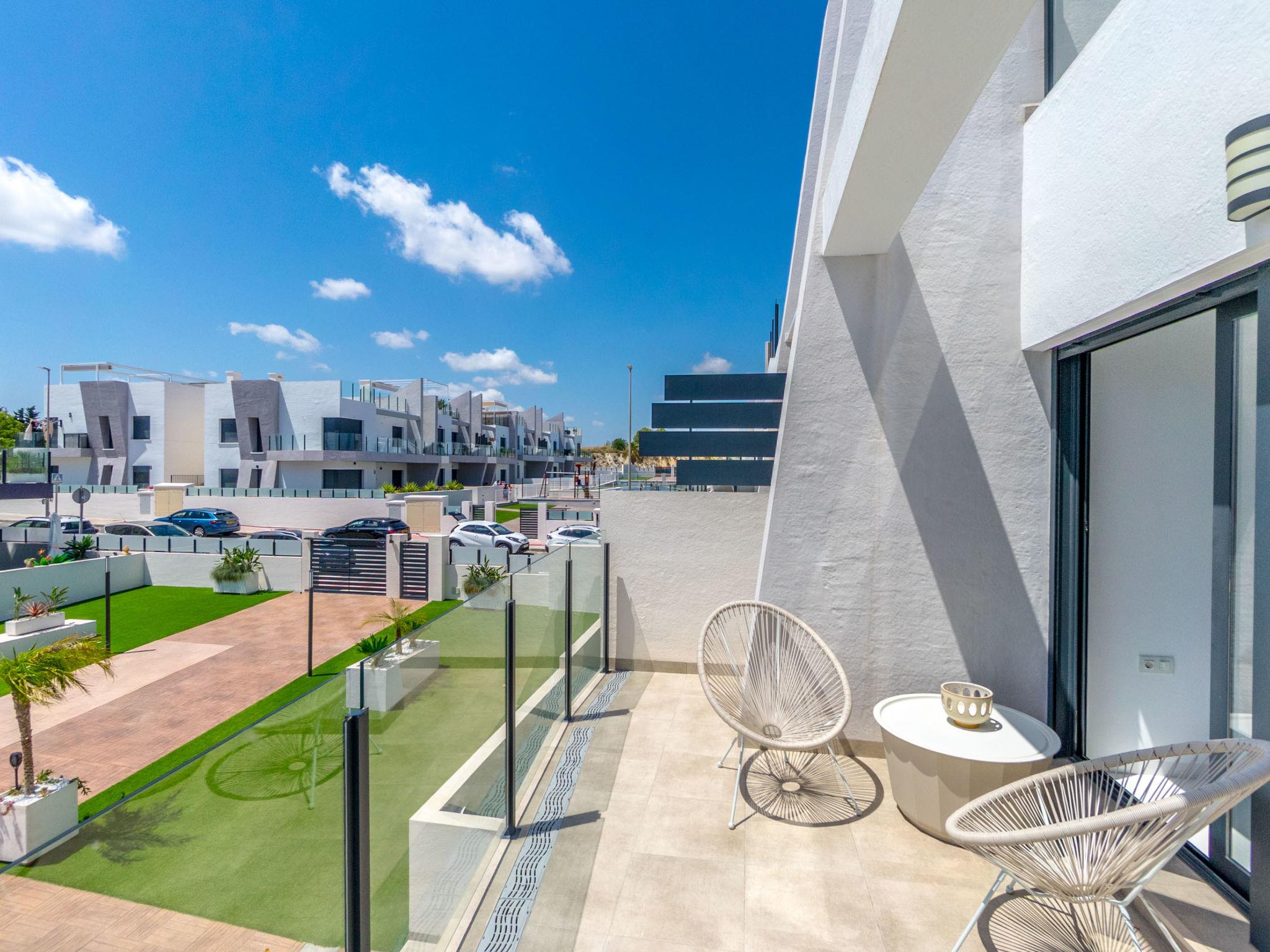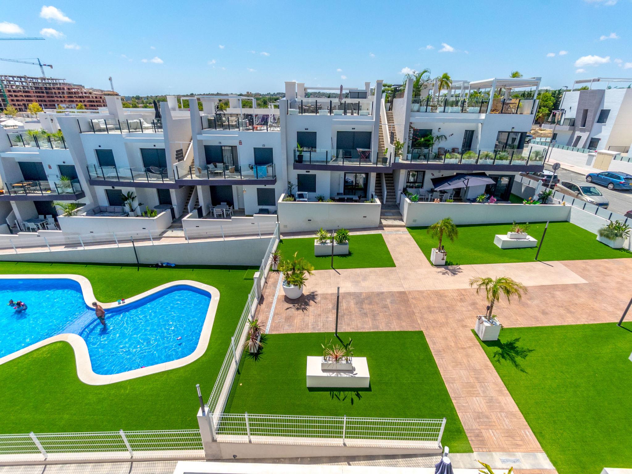 Modern, beautiful apartment block "Residencial Saoco", 2 storeys. 1.5 km from the centre of San Miguel de Salinas, 11 km from the centre of La Zenia, in a quiet, sunny position, traffic calmed area, 11 km from the sea, 11 km from the beach. For shared use: property (fenced), swimming pool (seasonal availability: 01.Jan. - 31.Dec.). Children's pool, outdoor shower, children's playground (slide, swing). In the house: roof terrace. Grocery 1.7 km, supermarket 1.7 km, restaurant 2 km, bus stop 1.9 km, sandy beach "Playa de La Zenia" 11 km. Golf course (18 hole) 9 km.