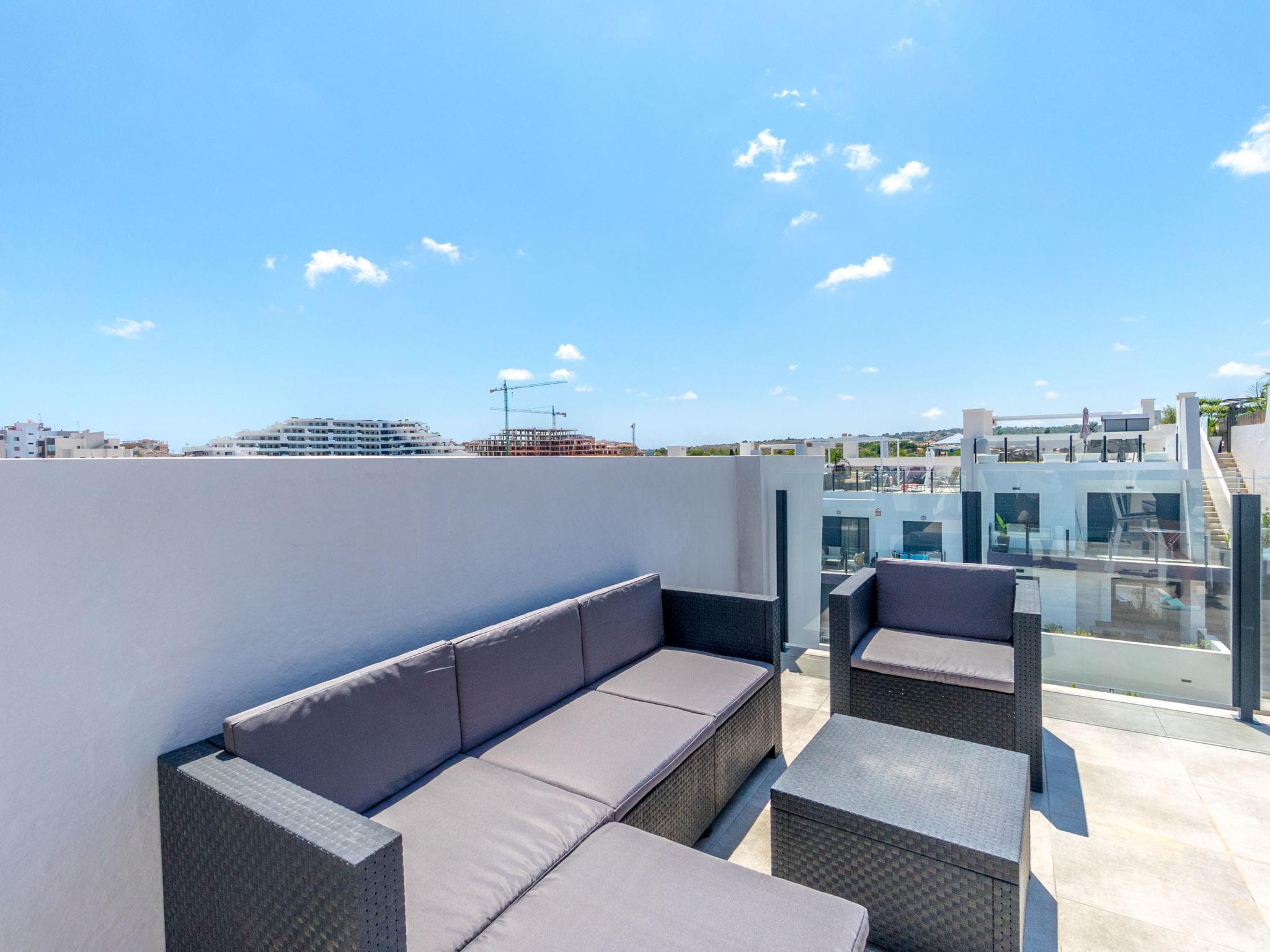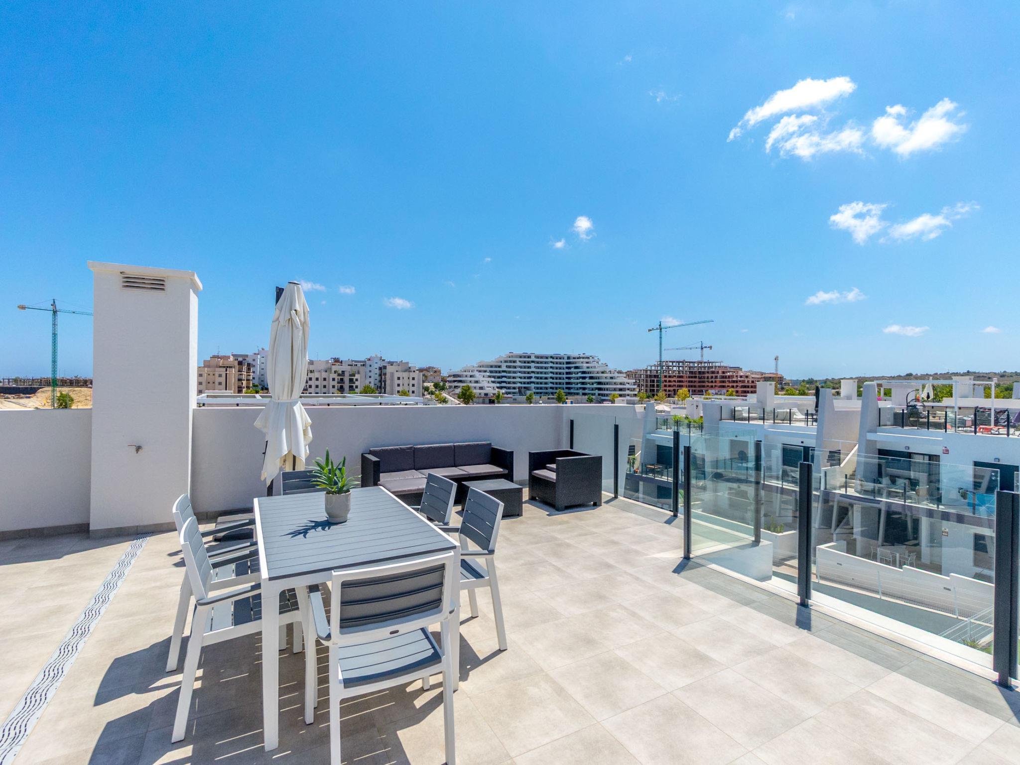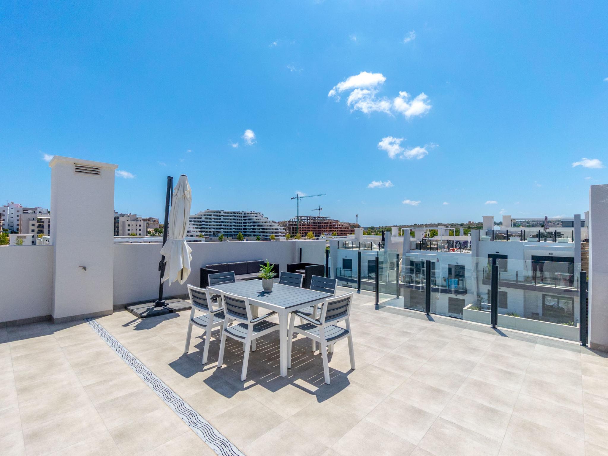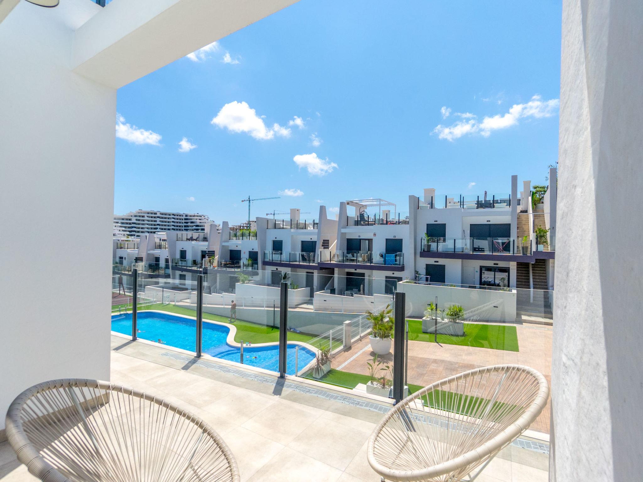 Modern, beautiful apartment block "Residencial Saoco", 2 storeys. 1.5 km from the centre of San Miguel de Salinas, 11 km from the centre of La Zenia, in a quiet, sunny position, traffic calmed area, 11 km from the sea, 11 km from the beach. For shared use: property (fenced), swimming pool (seasonal availability: 01.Jan. - 31.Dec.). Children's pool, outdoor shower, children's playground (slide, swing). In the house: roof terrace. Grocery 1.7 km, supermarket 1.7 km, restaurant 2 km, bus stop 1.9 km, sandy beach "Playa de La Zenia" 11 km. Golf course (18 hole) 9 km.