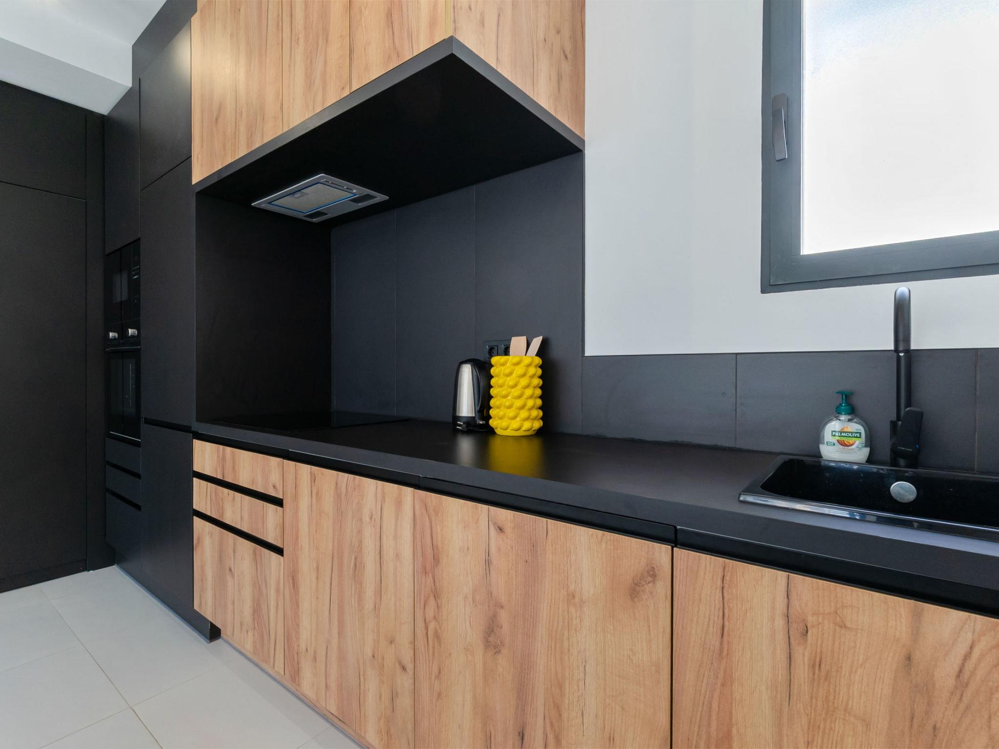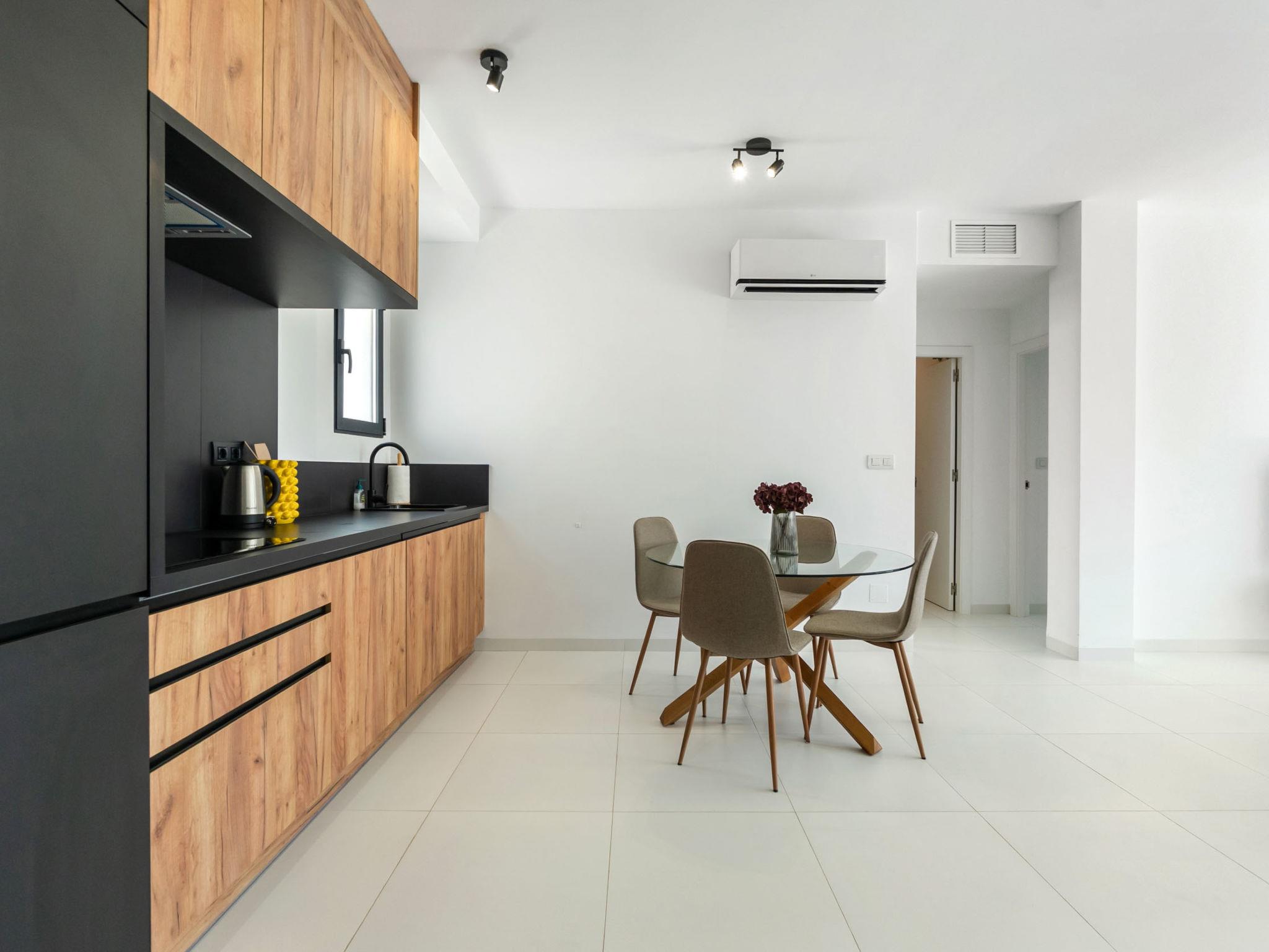 "Saoco", 3-room apartment 69 m2 on 2 levels on 1st floor. Spacious and bright, beautiful and modern furnishings: living/dining room with digital TV, air conditioning, forced-air heating and electric shutters. Exit to the terrace. 1 room with 1 french bed (1 x 180 cm, length 200 cm), shower/WC, air conditioning and forced-air heating. 1 room with 2 beds, air conditioning and forced-air heating. Open kitchen (oven, dishwasher, 3 induction hot plates, toaster, kettle, microwave, electric coffee machine). Shower/WC. Large terrace. Balcony furniture, barbecue, deck chairs, sitting area. Beautiful view of the swimming pool, the resort and the town. Facilities: washing machine, iron, children's high chair, baby cot for up to 2 year olds, hair dryer. Please note: non-smoking house. No lift. R00000001 // Reg. Nr.: ESFCNT00000305100058070900000000000000000000000000007