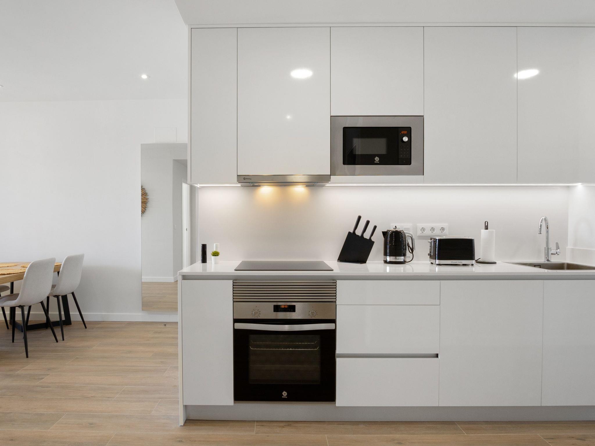 "Ema Residencial 63", 3-room apartment 84 m2 on 1st floor. Spacious and bright, beautiful and modern furnishings: open living/dining room with satellite TV, digital TV, air conditioning and forced-air heating. Exit to the terrace. 1 room with 1 french bed (1 x 180 cm, length 200 cm), shower/WC, air conditioning and forced-air heating. Exit to the terrace. 1 room with 2 beds (90 cm, length 200 cm), air conditioning and forced-air heating. Open kitchen (oven, dishwasher, 3 induction hot plates, toaster, kettle, microwave, electric coffee machine). Shower/WC. Floor heating, forced-air heating. Large terrace. Terrace furniture, balcony furniture, sitting area. Beautiful view of the swimming pool and the resort. Facilities: washing machine, iron, hair dryer. Internet (WiFi, free). Please note: non-smoking house. CV-VUT0516879-A