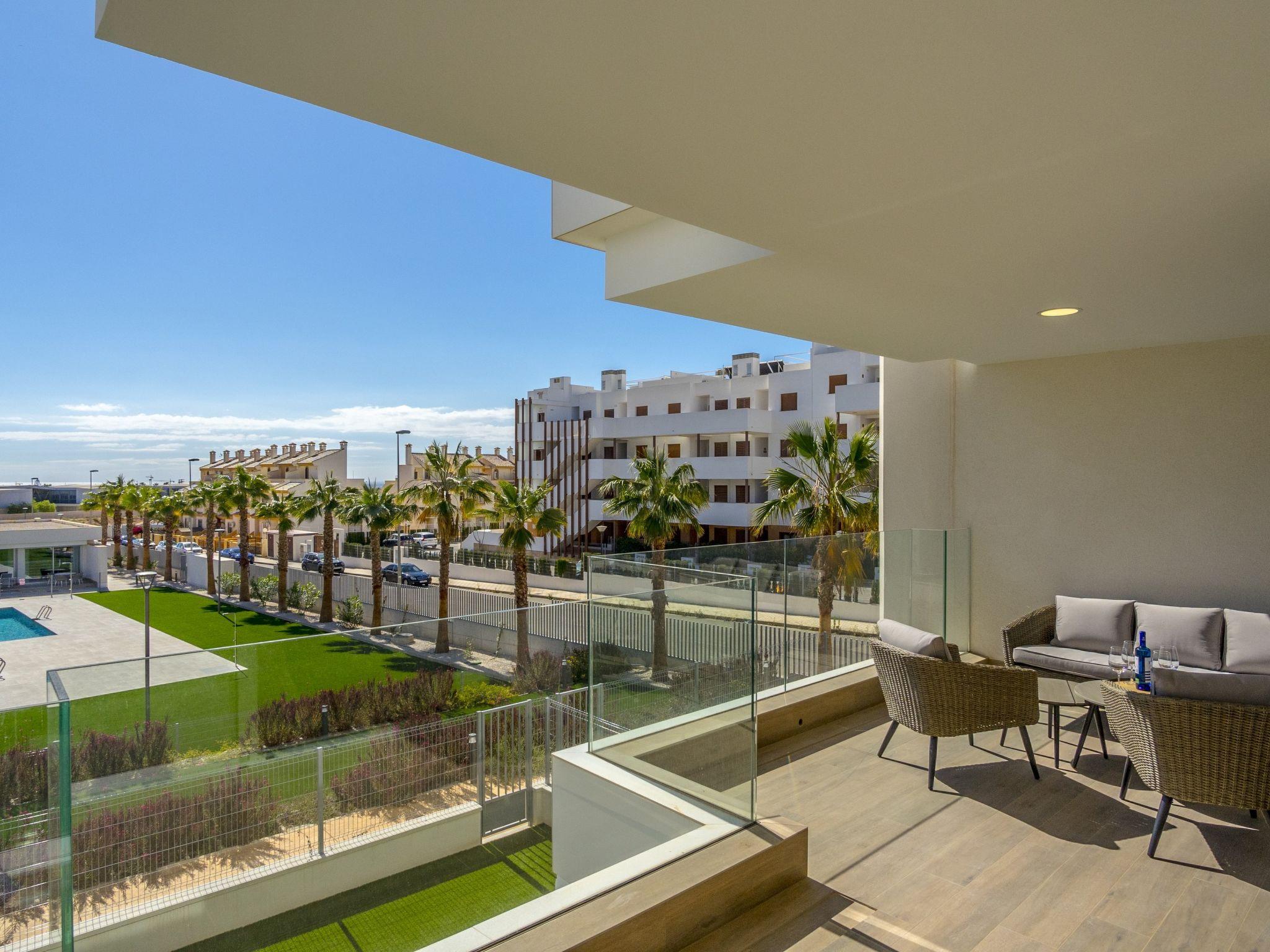 Modern, beautiful apartment block "Ema Residencial", 4 storeys, built in 2023. 3 km from the centre of La Zenia, 4 km from the centre of Punta Prima, 7 km from the centre of Dehesa de Campoamor, traffic calmed area, 2.8 km from the sea, 2.8 km from the beach. For shared use: property (fenced), swimming pool (seasonal availability: 01.Jan. - 31.Dec.). Children's pool, outdoor shower, children's playground. In the house: lift. Grocery, supermarket 950 m, restaurant 100 m, bus stop "Platja Flamenca – Mercadillo" 350 m, railway station "Orihuela" 27 km, sandy beach "Playa la Zenia" 3 km. Golf course (18 hole) 1.9 km. The owner does not accept any groups.