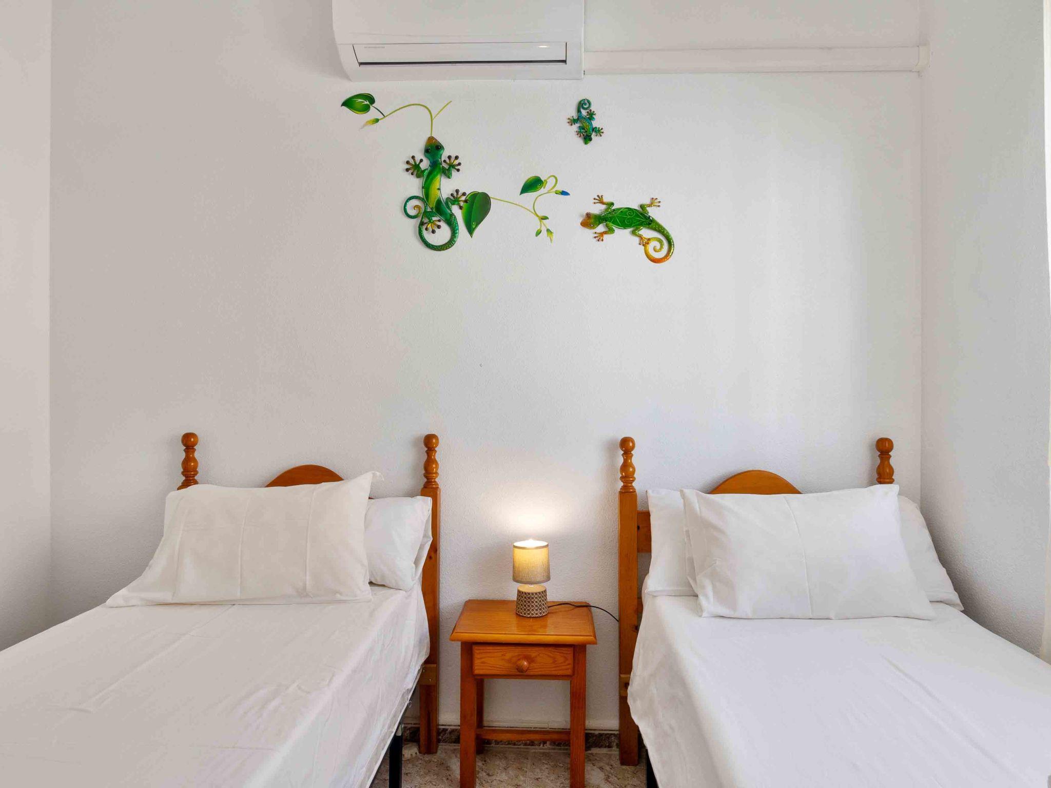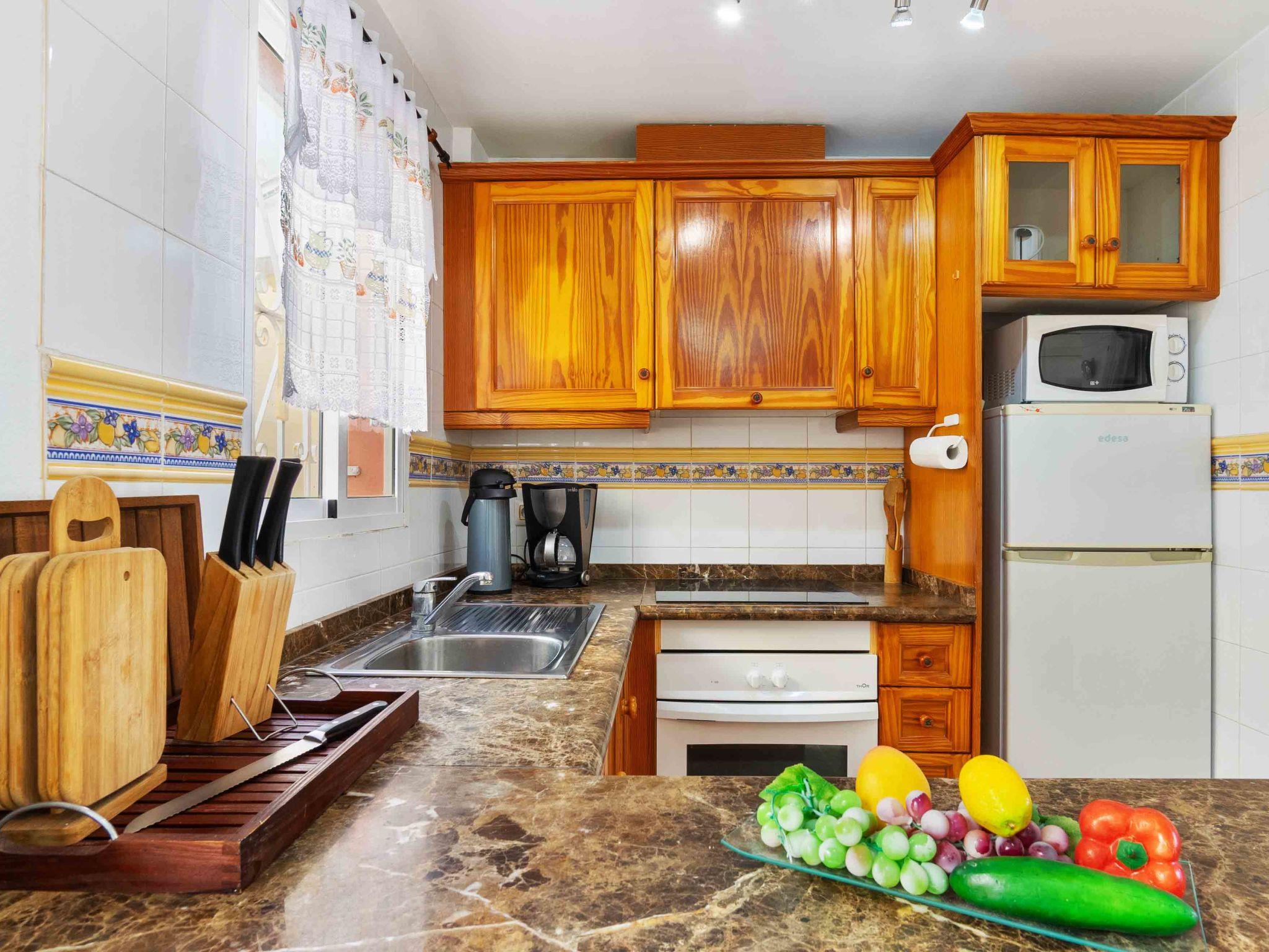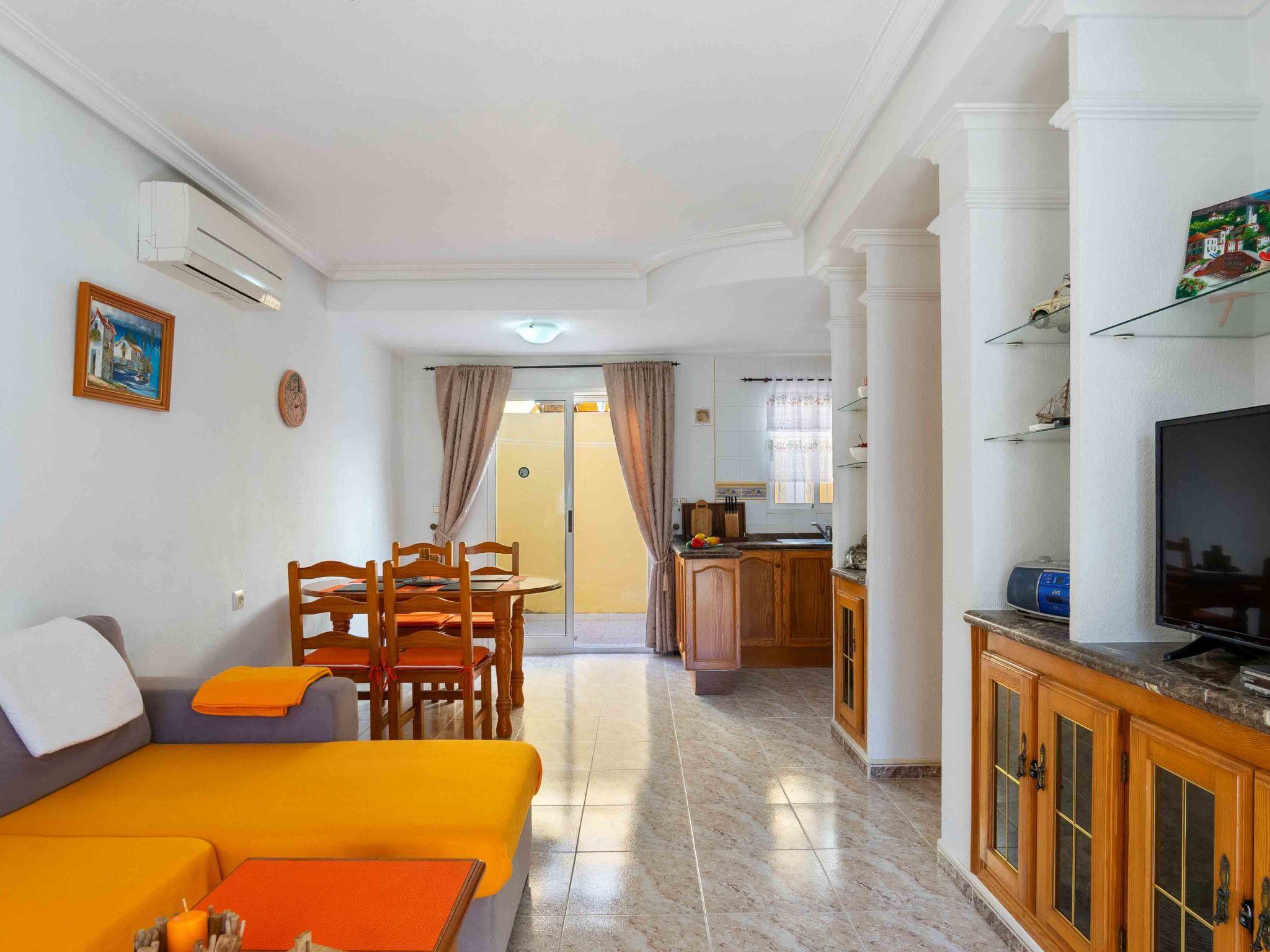 Beautiful, cosy terraced house "Lomas de Cabo Roig", 2 storeys. 4 km from the centre of Dehesa de Campoamor, 2 km from the centre of La Zenia, in a quiet, sunny position, traffic calmed area, 1 km from the sea, 1 km from the beach. For shared use: property (fenced), garden with lawn, natural garden, swimming pool (14 x 5 m, seasonal availability: 01.Jan. - 31.Dec.). Children's pool, outdoor shower. Private: property (fenced). In the complex: internet access. Grocery, supermarket 900 m, restaurant 800 m, bus stop "C/ Isla Tabarca, front 6" 800 m, railway station "Orihuela" 29 km, sandy beach "Playa de la Caleta" 1 km. The owner does not accept any youth groups.