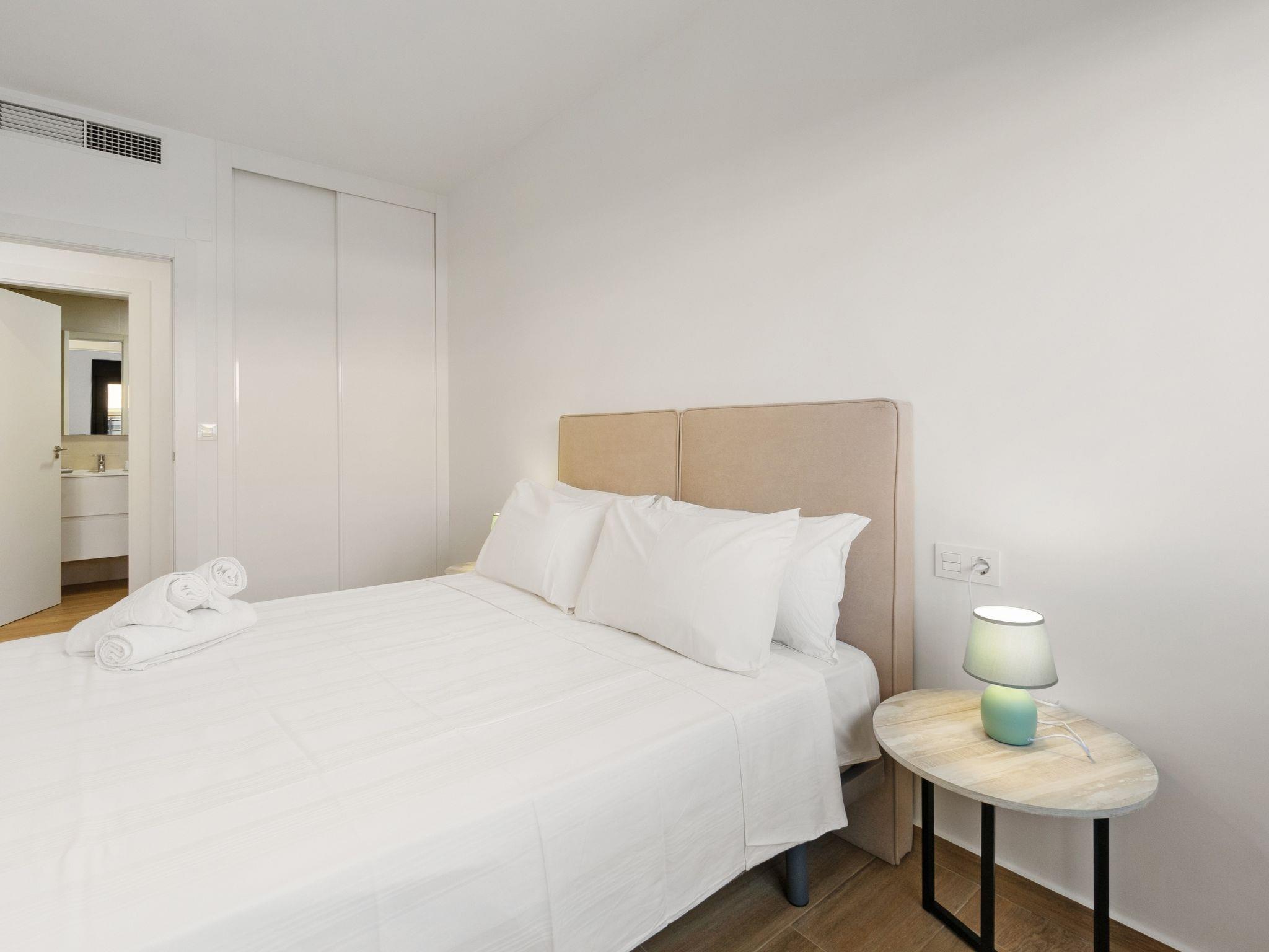 "Green Garden II", 4-room terraced house 122 m2 on 2 levels. Spacious and bright, comfortable and beautiful furnishings: open living/dining room with digital TV, air conditioning and forced-air heating. Exit to the terrace, to the swimming pool. 1 room with 1 french bed (1 x 160 cm, length 200 cm), air conditioning and forced-air heating. Open kitchen (oven, dishwasher, 3 ceramic glass hob hotplates, toaster, kettle, microwave, electric coffee machine). Shower/WC. Upper floor: 1 room with 1 french bed (1 x 160 cm, length 200 cm), shower/WC, air conditioning and forced-air heating. 1 room with 2 beds (90 cm, length 200 cm), shower/WC and TV. Large terrace. Terrace furniture, barbecue. View of the resort and the town. Facilities: washing machine, iron, hair dryer. Internet (WiFi, free). Parking. Please note: non-smoking house. R00000001 // Reg. Nr.: ESFCNT00000305000040892100000000000000000000000000001