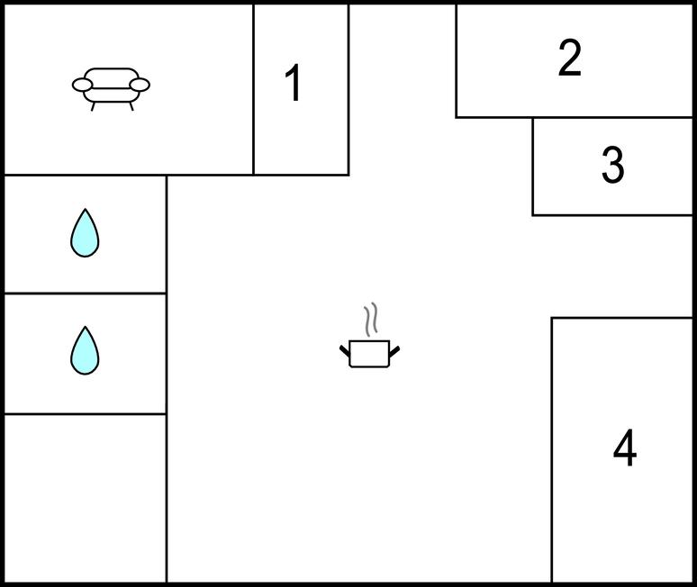 Soveværelse (nr. 2) - 1 Soveplads. (Enkeltseng(e)). 2 Sovepladser. (Dobbeltseng(e)).