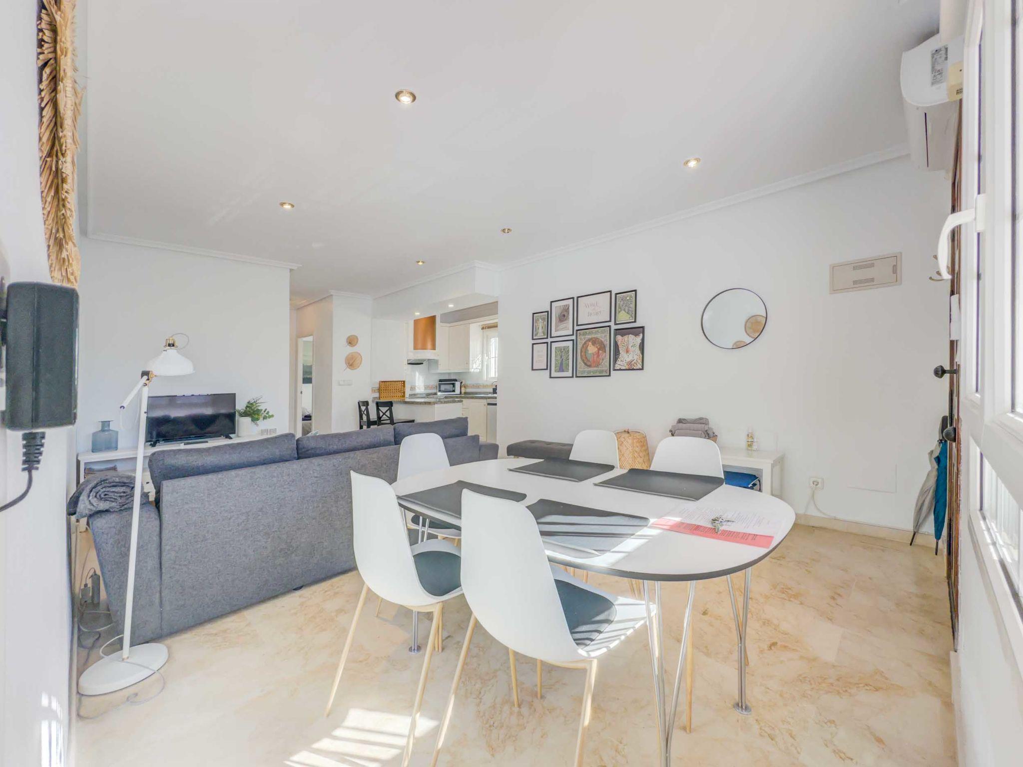 "Los Dolses 628", 3-room apartment 58 m2, on the ground floor. Practical and comfortable furnishings: living/dining room with 1 double sofabed (140 cm, length 200 cm), dining table, digital TV, flat screen, air conditioning and forced-air heating. Exit to the terrace. 1 room with 1 french bed (160 cm, length 200 cm), air conditioning and forced-air heating with 2 beds (80 cm, length 200 cm), air conditioning and forced-air heating. Open kitchen (oven, 4 ceramic glass hob hotplates, toaster, kettle, microwave, freezer, electric coffee machine) with bar. Shower/bidet/WC. Large terrace. Terrace furniture. Facilities: washing machine, iron, children's high chair, baby cot for up to 2 year olds, hair dryer. Internet (WiFi, free). Please note: suitable for families. Non-smokers only. VT-509991-A // Reg. Nr.: ESFCTU00000304800077028500000000000000000VT-509991-A4