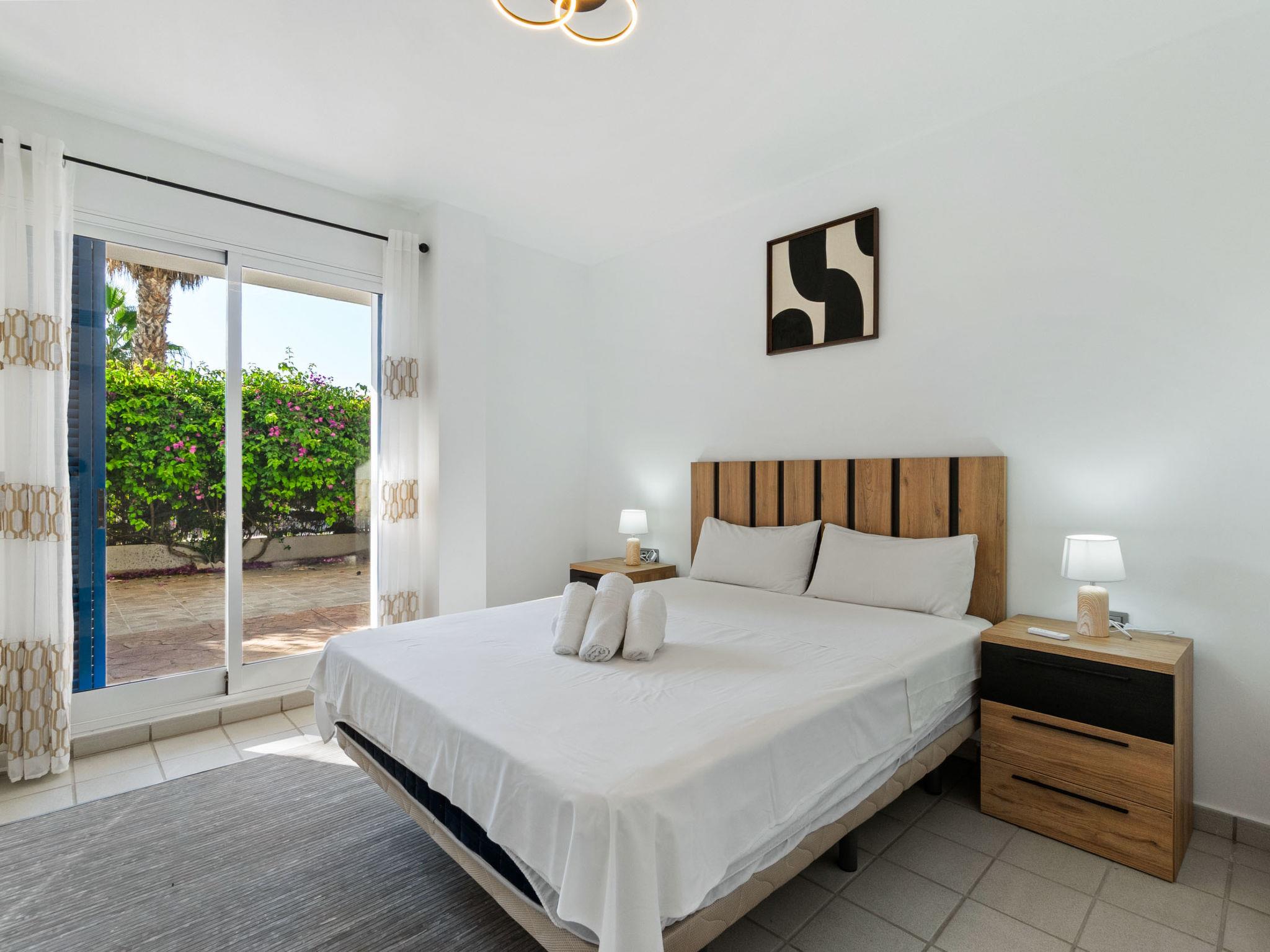 "Las Terrazas", 3-room apartment 82 m2, on the ground floor. Spacious and bright, comfortable and beautiful furnishings: living/dining room with digital TV, air conditioning, fan and forced-air heating. Exit to the terrace. 1 room with 1 french bed (1 x 180 cm, length 200 cm), shower/WC, air conditioning, fan and forced-air heating. Exit to the terrace. 1 room with 1 french bed (1 x 150 cm, length 190 cm), air conditioning and forced-air heating. Exit to the terrace. Open kitchen (oven, dishwasher, 4 ceramic glass hob hotplates, toaster, kettle, microwave, electric coffee machine). Shower/WC. Large terrace. Facilities: washing machine, iron, hair dryer. Internet (WiFi, free). Parking space n 10b (roofed). Please note: non-smoking house. VT-507598-A // Reg. Nr.: ESFCTU00000305800053498500000000000000000VT-507598-A3