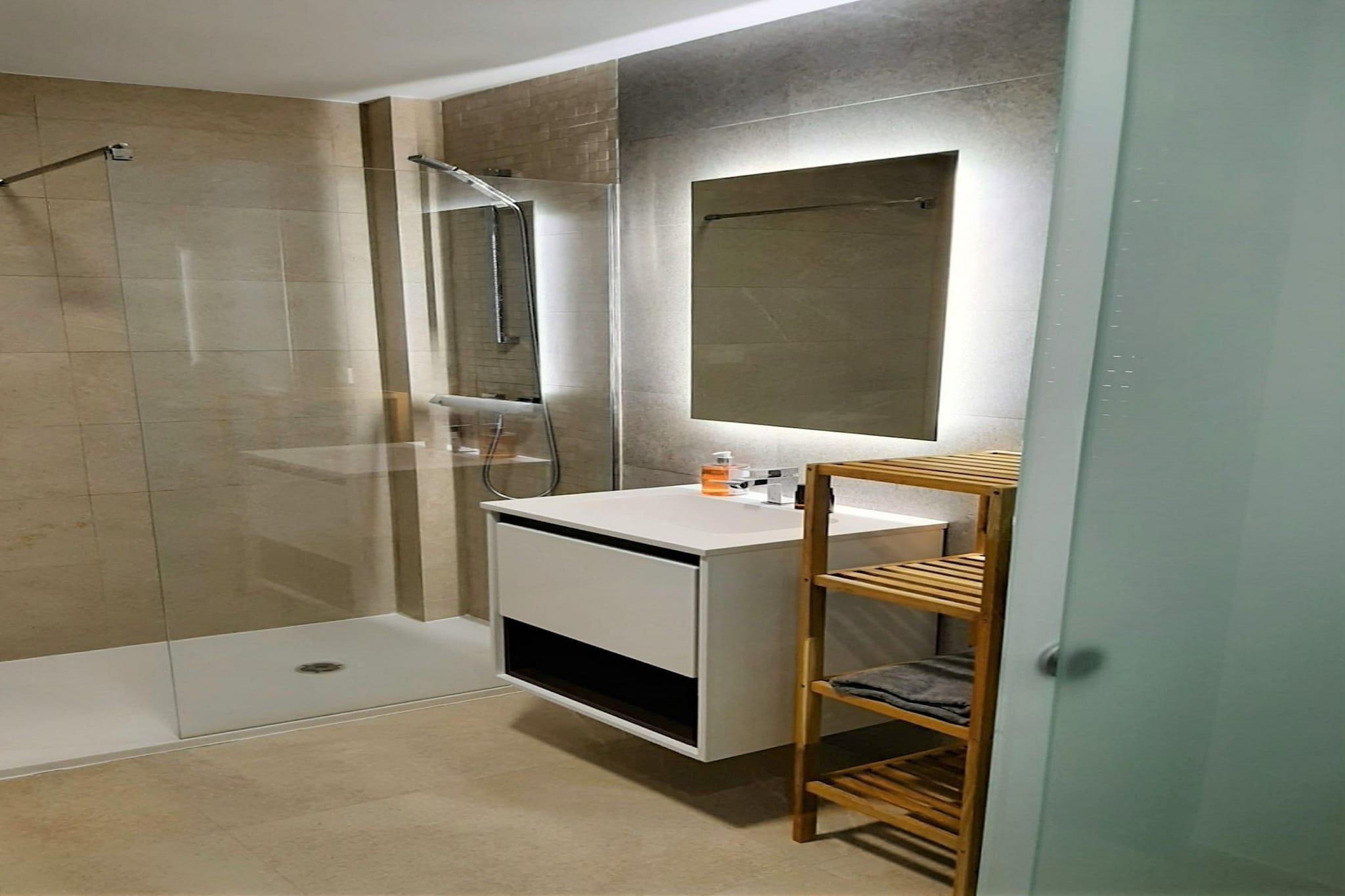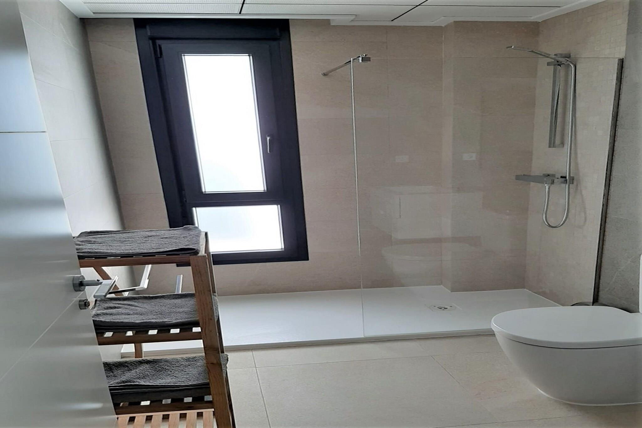 Stueetage: (Indgang , åbent køkken(kogeplade(Komfur med fire kogeplader, elektrisk), kaffemaskine, ovn, mikrobølgeovn, opvaskemaskine ), stue / spisestue(45 m2)(Fjernsyn(fladskærm), sofahjørne), soveværelse(9 m2)(enkeltseng(90 x 200 cm), enkeltseng(90 x 200 cm)), soveværelse(9 m2)(dobbeltseng), Soveværelse med badeværelse(16 m2)(dobbeltseng(135 x 200 cm), bruser, håndvask, toilet), badeværelse(bruser, håndvask, toilet)) spisebord, solarium, vaskemaskine, havedøre, varme, klimaanlæg, terrasse(privat, 90 m2), terrasse(privat, 65 m2), have(privat, 30 m2), havemøbler, grill, parkering, swimmingpool(privat, udendørs, 8 x 4 m., opened from Jun upto and including Sep), hængekøje, strygebræt, strygejern
