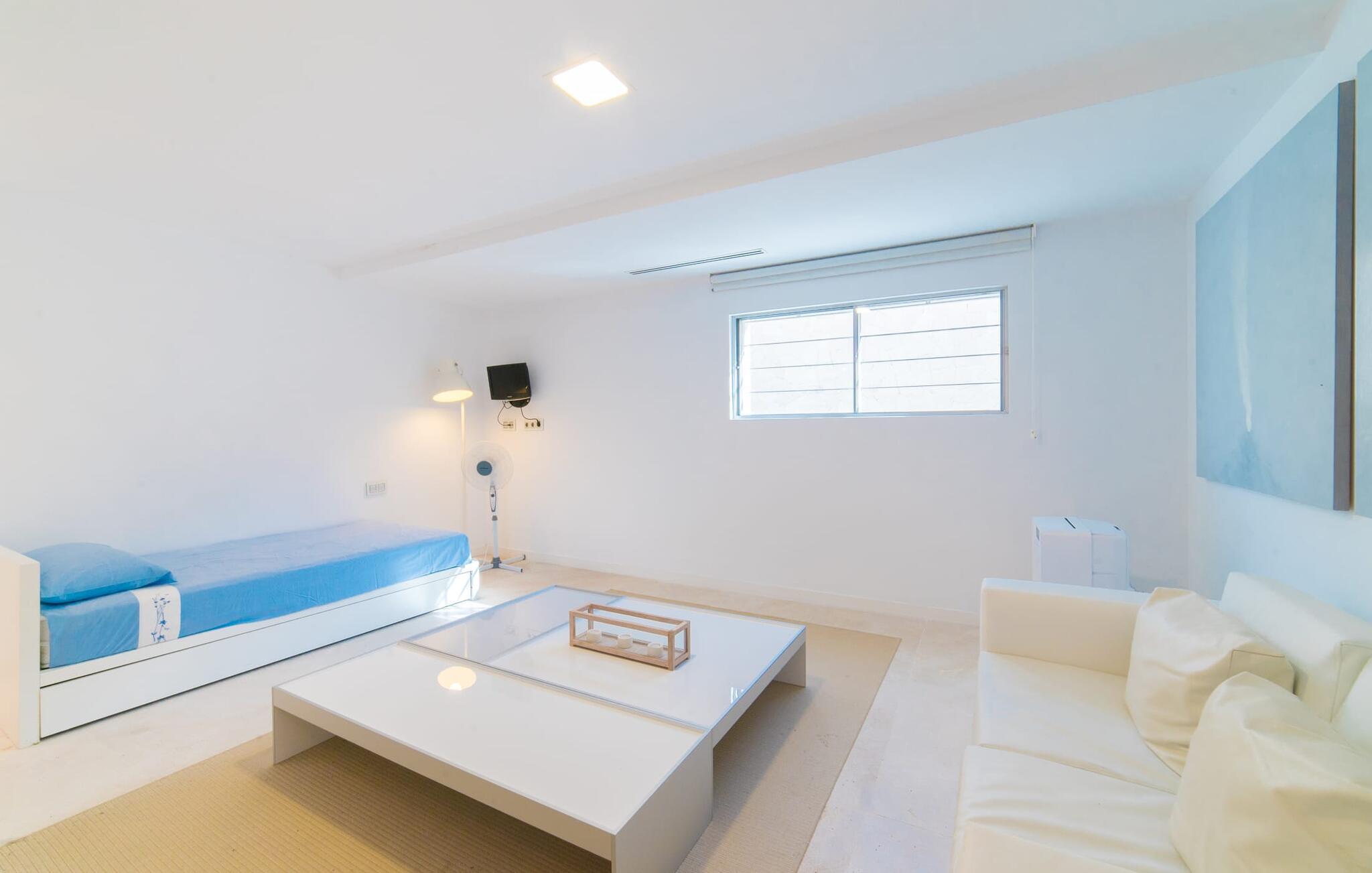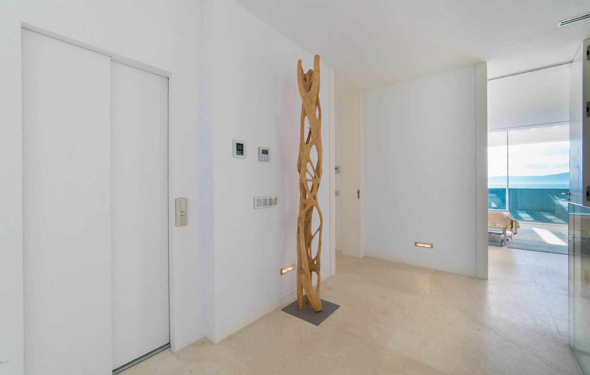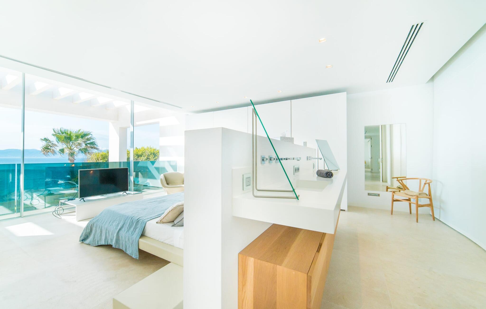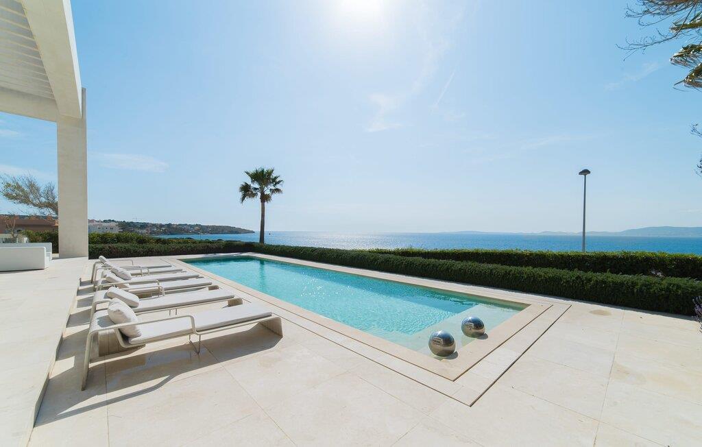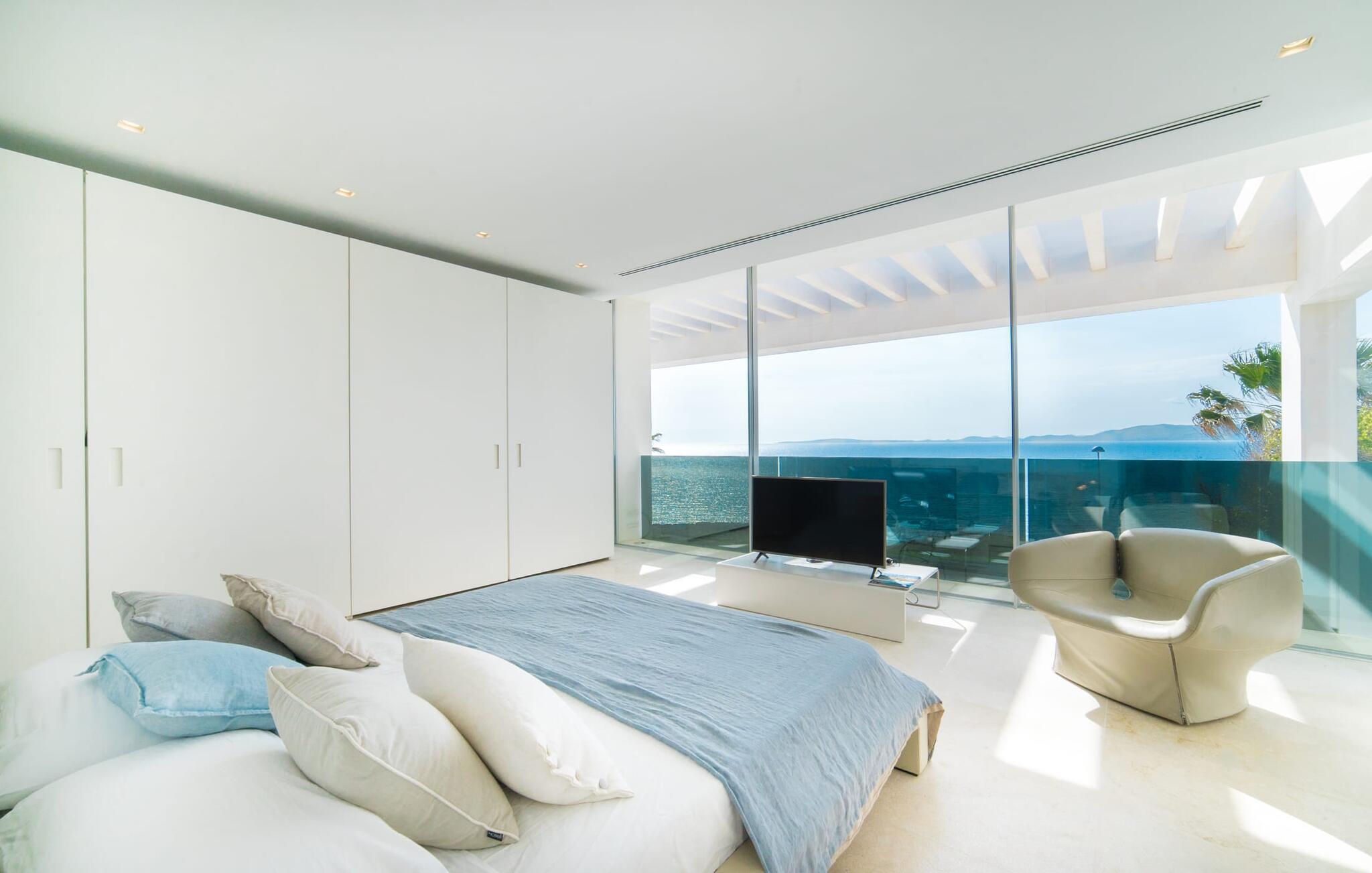 Leder I efter en ekstraordinær drømmevilla, der opfylder de højeste krav? Så bør I læse videre, for dette luksuriøse feriehus har alt, hvad I behøver: Et ultramoderne, åbent boligkoncept, der er uden sidestykke, er blevet til på den 900 m² store grund. Den store terrasse med komfortable liggestole tilbyder uforstyrret panoramaudsigt over det åbne hav. Det store, skrånende bassin er velegnet til daglig træning samt en forfriskende svømmetur ind imellem. Poolen kan selvfølgelig oplyses om aftenen, hvilket skaber en særlig stilfuld atmosfære til jeres private middagsselskab. I det overdækkede terrasseområde kan I slappe af under de hvide markiser på hyggelige udendørs lounger. 100% privatliv er givet her: ejendommen til villaen "Palma Bay Frontline" er beskyttet mod udsigt udefra. Et lyst, åbent boligkoncept venter jer i den lyse boligareal i den 500 m² store villa: den store panoramaglasfront skaber en næsten sømløs overgang til terrassen. Slap af på komfortable loungesofaer og oplev de spektakulære solnedgange over det vestlige Middelhav. Hele huset er naturligvis fuldt klimatiseret, så I vil ikke svede selv i varme temperaturer. Et stort spisebord i træ danner overgangen til det ultramoderne, fuldt udstyrede køkken med en praktisk kogeø. Der er også et gæstetoilet i stueetagen af jeres sommerhus. På øverste etage er der tre indbydende soveværelser med luksuriøst udstyrede en-suite badeværelser. Et af værelserne har walk-in-closet. Fra værelserne på denne etage kan I nyde en fantastisk udsigt over det åbne hav og den brede horisont. Et andet opholds- og soveområde med eget badeværelse samt legerum til de små gæster er placeret i husets kælder. I kan parkere jeres biler sikkert og ude af solen i den private underjordiske parkeringsplads. En ejendom af denne kaliber har naturligvis også brug for en eksklusiv beliggenhed: Den lille, ædle villabebyggelse Son Veri Nou ligger på Mallorcas populære sydvestkyst, men næppe nogen pakkerejser finder vej hertil: de vil sætte pris på det privatliv, som dette retræte tilbyder . Ikke desto mindre kan I takket være de gode transportforbindelser hurtigt nå den livlige hovedstad Palma, festbyen S'Arenal eller det landlige Llucmajor med dens rustikke charme. Den spektakulære udsigt over Palma-bugten og det glitrende hav er en sand fornøjelse: Takket være nærheden til den lokale lystbådehavn kan I spotte en eller to utrolige yachter hist og her. I Son Veri Nou finder I en lille, men hyggelig tennis- og squashklub; De smukke golfbaner Son Antem og Maioris er også kun et stenkast væk. Vi anbefaler også stærkt en vandretur til det imponerende Fort del Cap Enderrocat, som blev bygget i 1898 for at overvåge kysten i 1800-tallet og nu er et populært udflugtsmål. Denne eksklusive luksusejendom er beliggende i det lille, eksklusive boligkompleks Son Veri Nou ved den fine sandbugt i Palma. Nyd en unik, uforstyrret udsigt over havet og tilbring jeres drømmeferie i en ekstraordinær villa, der kombinerer avantgarde design med det højeste niveau af komfort. Der er en fantastisk tennis- og squashklub i byen, mens I kan opleve maritim flair i den nærliggende marina. To golfbaner er kun få minutter væk i bil.