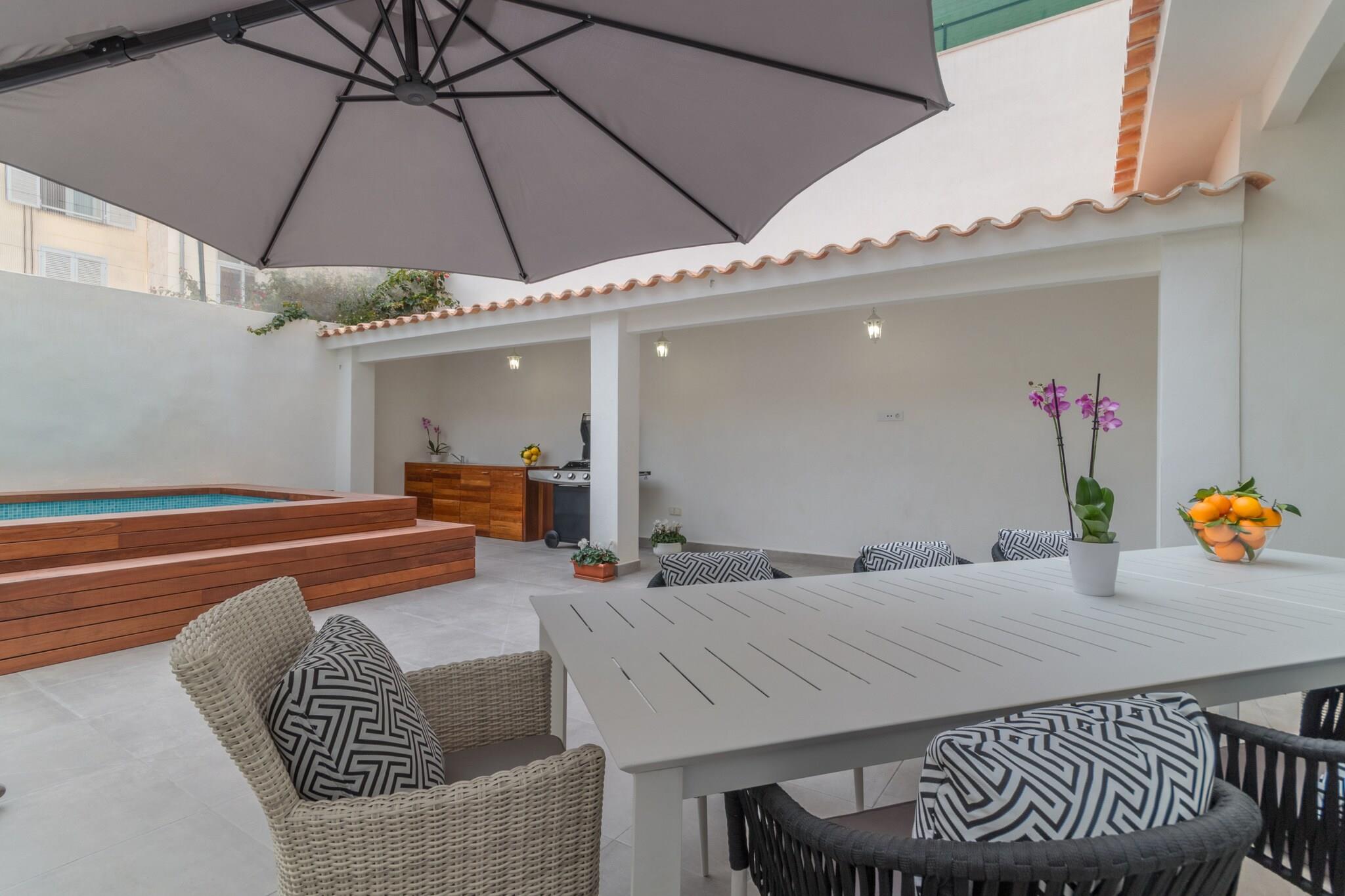 Denne moderne og smagfuldt indrettede Miquel Santandreu 40 villa på Mallorca tilbyder en rummelig bolig på 190 m² og kan komfortabelt huse op til 10 gæster med sine 5 stilfulde soveværelser. Ejendommen har en indbydende privat swimmingpool, perfekt til at køle af og nyde middelhavsklimaet. Aircondition og en varmepumpe sikrer komfort året rundt, mens villaen også tilbyder Wi-Fi, seks tv med satellitkanaler på flere sprog og andre faciliteter til at forbedre dit ophold. Placeringen er central og godt forbundet med offentlige transportmuligheder som bus- og metrostationer inden for gåafstand, hvilket gør den ideel til at udforske det omkringliggende område. Beliggende i hjertet af Palma, er denne villa kun 800 meter fra sandstranden Platja de Can Pere Antoni, og i nærheden finder du en række restauranter, caféer og supermarkeder, herunder Mercadona, Lidl og Eroski. Udforsk det pulserende bycentrum med Palmas historiske steder, shoppingdistrikter og kulturelle attraktioner kun 1 km væk. Ejendommen er også bekvemt tæt på Palmas tog- og metrostationer, så du nemt kan vove dig til nærliggende strande såsom Cala Major og Platja de Palma. Inde i villaen finder du et fuldt udstyret, uafhængigt køkken med en blanding af gas- og elektriske kogeapparater, herunder køleskab, mikroovn, ovn og opvaskemaskine. En rummelig terrasse på 130 m² byder på rigelig plads til udendørs spisning og afslapning, suppleret med en grill til al fresco-måltider. Lejelicensnummeret er ETV/11832