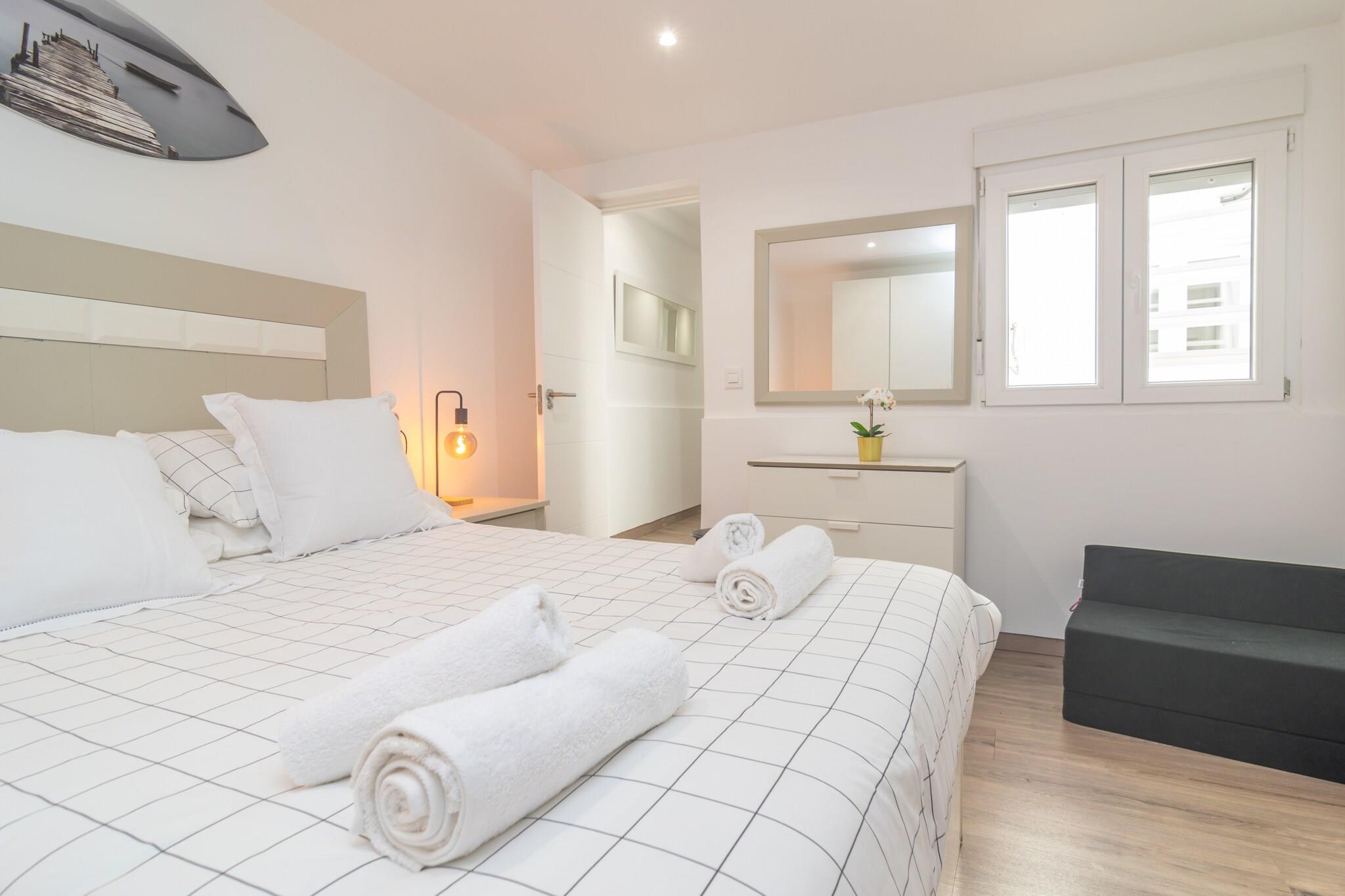 Beliggende i det pulserende hjerte af Palma tilbyder denne rolige lejlighed den perfekte flugt efter en dag med udforskning. Slap af på den hyggelige terrasse på toppen, ideel til at slappe af med en bog eller nyde drinks med familie og venner. Den moderne bolig strækker sig over to etager og har en rummelig stue/spisestue med AC og et Smart TV, der problemfrit forbinder til et åbent køkken udstyret med en keramisk kogeplade og alt det nødvendige til at lave dejlige måltider. Første sal indeholder to velindrettede soveværelser: et med dobbeltseng, TV, AC og garderobe, og et andet med en trilleseng, TV, AC og garderobe. Et badeværelse med bruser fuldender dette niveau. Anden sal huser det sidste soveværelse, som også byder på en trilleseng, tv, AC og kommode. Yderligere faciliteter omfatter en vaskemaskine, strygebræt og strygejern. Hvis du rejser med små, kan en barneseng og høj stol stilles til rådighed efter anmodning. Valgfri parkering er tilgængelig, og gæsterne kan nyde den afslappende jacuzzi. Palma blander historisk charme med en pulserende moderne scene, der viser den fantastiske katedral Santa Maria de Palma (La Seu) og et rigt udvalg af middelalderarkitektur. Forkæl dig selv med traditionelle mallorcanske retter, såsom Frit og l"Arrós Brut, og nyd solen på nærliggende strande som Can Pere Antoni og Cala Mayor. Bemærk venligst: Gæster under 25 år accepteres ikke, medmindre de er en del af en familiegruppe. Kopi af pas er påkrævet for booking. Kæledyr og arrangementer er ikke tilladt. Turistlicens: ETV/8955. Der gælder en obligatorisk turistskat (Ecotasa), der varierer efter sæson. Som reaktion på Coronavirus (COVID-19) er yderligere sikkerheds- og sanitære foranstaltninger i kraft på denne ejendom.