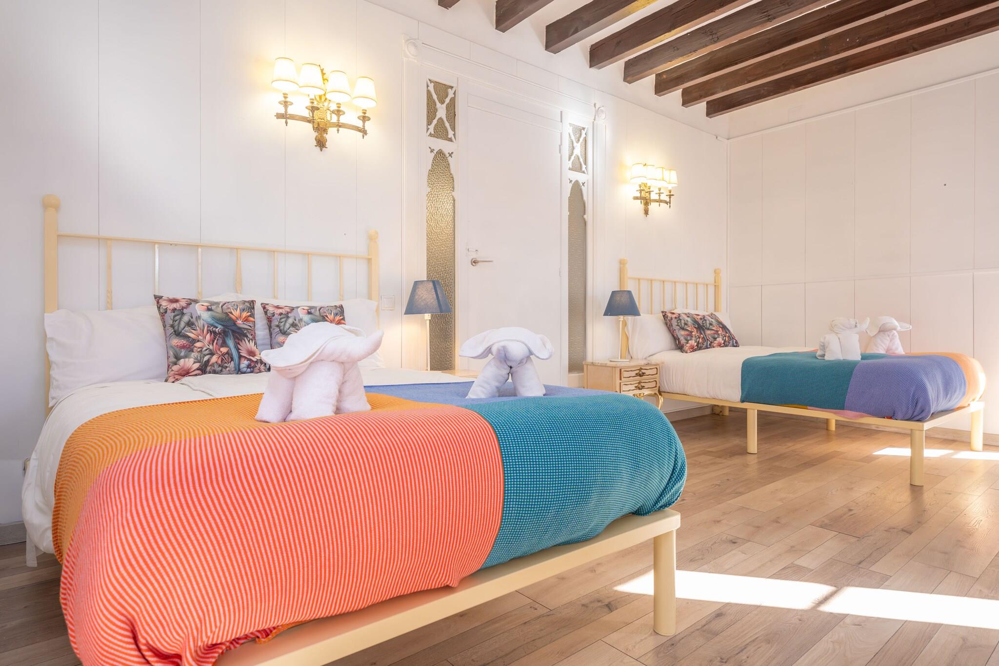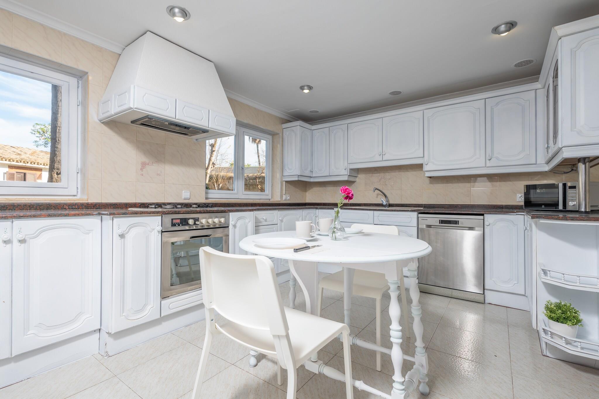 Efter en dag med udforskning eller shopping kan du slappe af i de fredelige udendørsområder i dette charmerende landsted. Den private klorpool (6,7x6,2m, dybde 1,6-1,8m) er perfekt til at køle af, mens liggestole og en havepergola sætter scenen for afslappende eftermiddage og aftengrill. Et udendørs badeværelse med bruser tilføjer bekvemmelighed, og den indhegnede ejendom sikrer privatlivets fred. Indenfor har to-etagers bolig et klassisk design med moderne bekvemmeligheder. Stueetagen indeholder en spisestue med tv, et rummeligt gasudstyret køkken og to soveværelser - det ene med to enkeltsenge, det andet med en dobbeltseng. To badeværelser med bruser (et en-suite) tjener dette niveau. Ovenpå er der en anden stue og yderligere fire soveværelser (tre dobbelte, et med en rulleseng), plus to ekstra badeværelser, et en-suite. Alle værelser har AC, og faciliteter inkluderer en vaskemaskine, strygejern, strygebræt og babyudstyr (2 barnesenge, 2 høje stole). Beliggende i Son Sardina, lige uden for Palma, tilbyder huset nem adgang til supermarkeder, restauranter og offentlig transport. Besøg byens kulturelle steder, nyd en runde på Son Vida Golf Club, eller slap af ved stranden Can Pere Antoni. Kæledyr og arrangementer er ikke tilladt. Vedligeholdelsespersonale bor ved siden af. Turistskat og eventuelle gebyrer kan være gældende. Udvendig parkering til fem biler er tilgængelig.