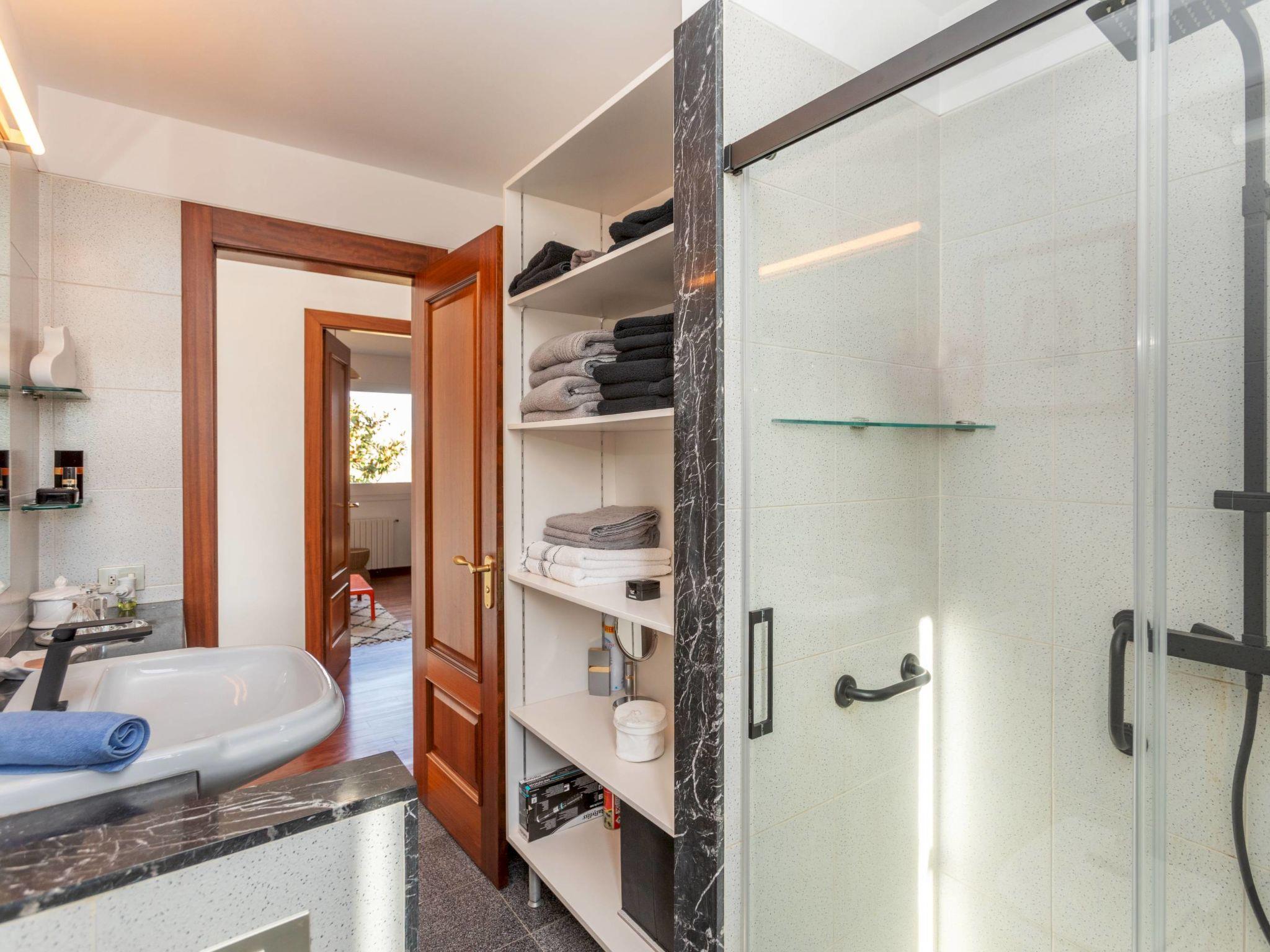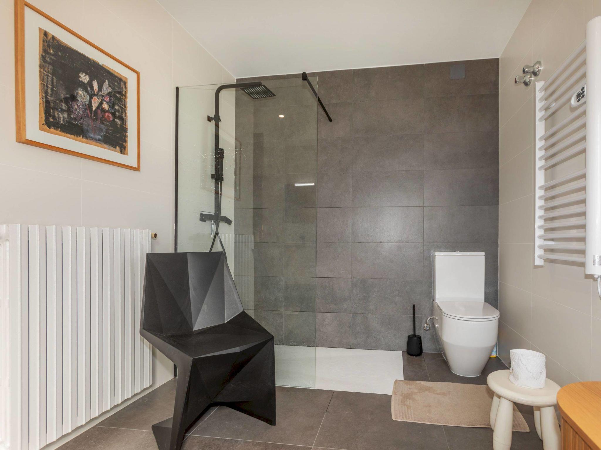"Villa Chantal", 7-room house 576 m2. Spacious and bright, comfortable and stylish furnishings: living/dining room with digital TV and air conditioning. Exit to the garden, to the swimming pool. 1 room with 1 french bed (140 cm, length 190 cm), shower/WC. Exit to the garden. Large, open kitchen (5 hot plates, oven, dishwasher, toaster, kettle, microwave, electric coffee machine). Upper floor: 1 room with 2 beds (90 cm, length 190 cm), shower/WC and air conditioning. 1 room with 1 french bed (160 cm, length 190 cm), shower/WC and air conditioning. Exit to the terrace. 1 room with 1 french bed (160 cm, length 190 cm), bath/WC and air conditioning. 1 room with 1 double bed (2 x 90 cm, length 190 cm), shower/WC and air conditioning. 1 room with 1 double bed (2 x 90 cm, length 190 cm), shower/WC and air conditioning. Large patio. Terrace furniture, barbecue, covered balcony. View of the town. Facilities: washing machine, iron, children's high chair, baby cot for up to 2 year olds, hair dryer. Internet (WiFi, free). Garage space n 1 coche. Please note: maximum 1 pet/ dog allowed. TV only ES. HUTG-049098 // Reg. Nr.: ESFCTU00001700700002972700000000000000000HUTG-0490985