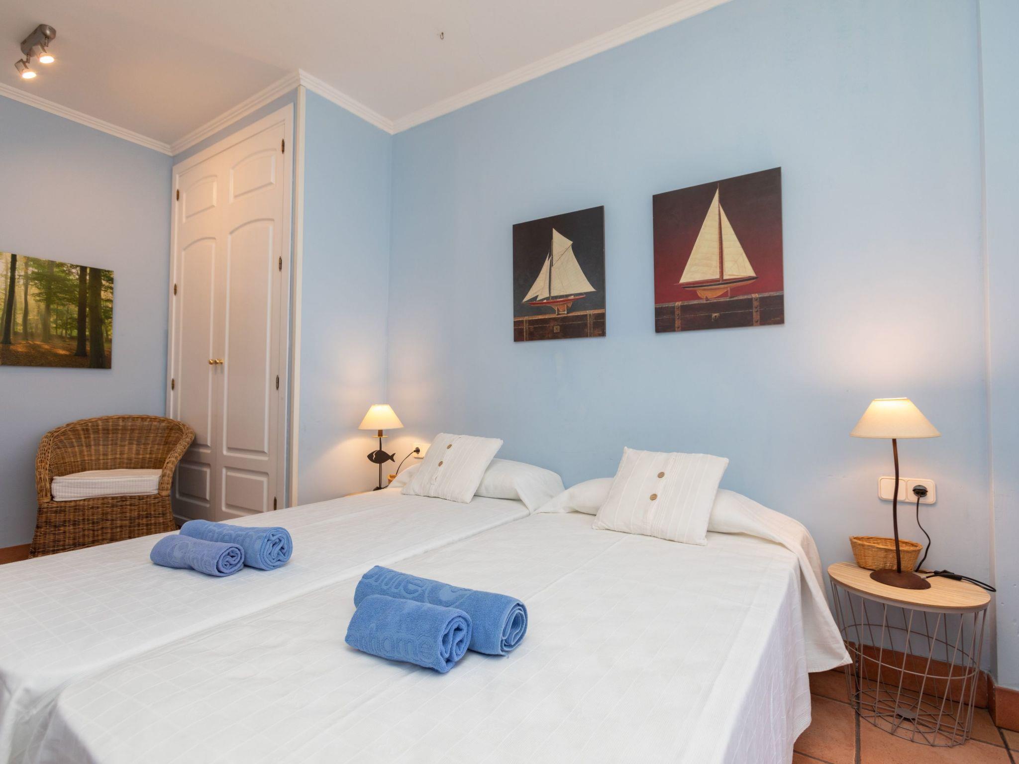 "Port Pals A I", 3-room apartment 70 m2 on 2nd floor. Living/dining room with dining table, digital TV, flat screen and electric heater. Exit to the terrace. 1 room with 1 french bed (150 cm, length 190 cm), bath/WC and electric heater. Exit to the balcony. 1 room with 2 beds (90 cm, length 190 cm), electric heater. Exit to the terrace. Open kitchen (oven, dishwasher, 4 ceramic glass hob hotplates, electric coffee machine). Bath/WC. Large balcony, small terrace. Terrace furniture, balcony furniture. Very beautiful view of the sea and the swimming pool. Facilities: washing machine, iron, children's high chair, baby cot, hair dryer. Internet (WiFi, free). Parking space n 19 exterior (1 car). Please note: TV only ES. TV inteligente. HUTG-036285 // Reg. Nr.: ESFCTU00001700700018970400000000000000000HUTG-0362857