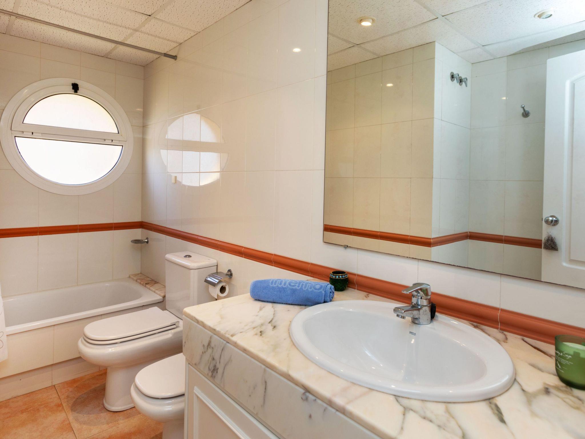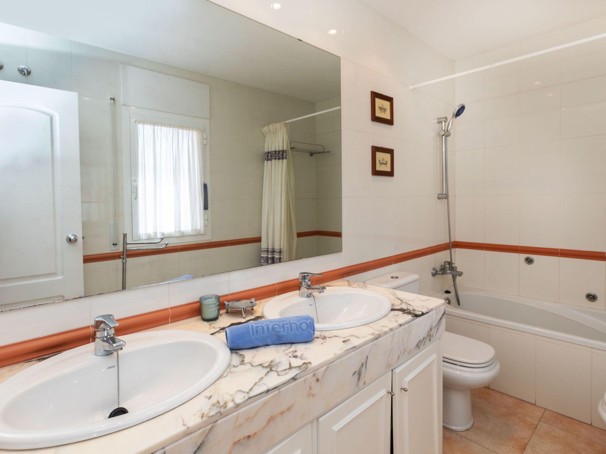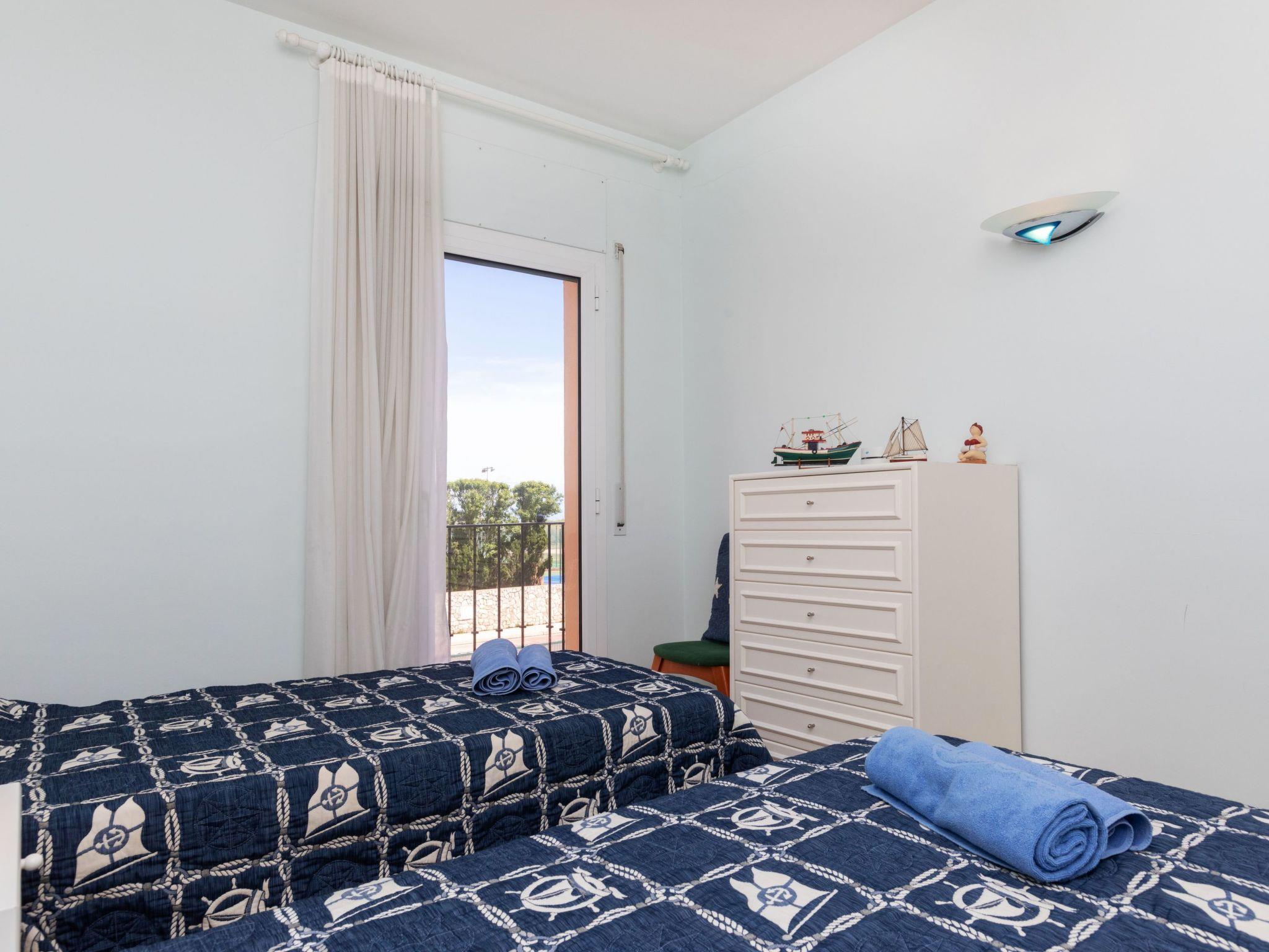 "Port Pals Beach", 4-room terraced house 150 m2 on 3 levels. Practical furnishings: living/dining room. Exit to the patio. Kitchen (oven, dishwasher, 4 induction hot plates, toaster, kettle, microwave) with digital TV. Shower/WC. Air-conditioning, forced-air heating. Upper floor: 1 room with 2 beds (90 cm, length 190 cm). 1 room with 2 beds (90 cm, length 190 cm). 1 room with 1 french bed (150 cm, length 200 cm), bath/WC. Bath/WC. 2nd upper floor: 4 m2, with sloping ceilings. Exit to the terrace. Facilities: washing machine, iron, children's high chair, baby cot, hair dryer. Internet (WiFi, free). Parking space n 16. Please note: suitable for families. TV only ES. HUTG-074334 // Reg. Nr.: ESFCTU00001700700018569000000000000000000HUTG-0743342