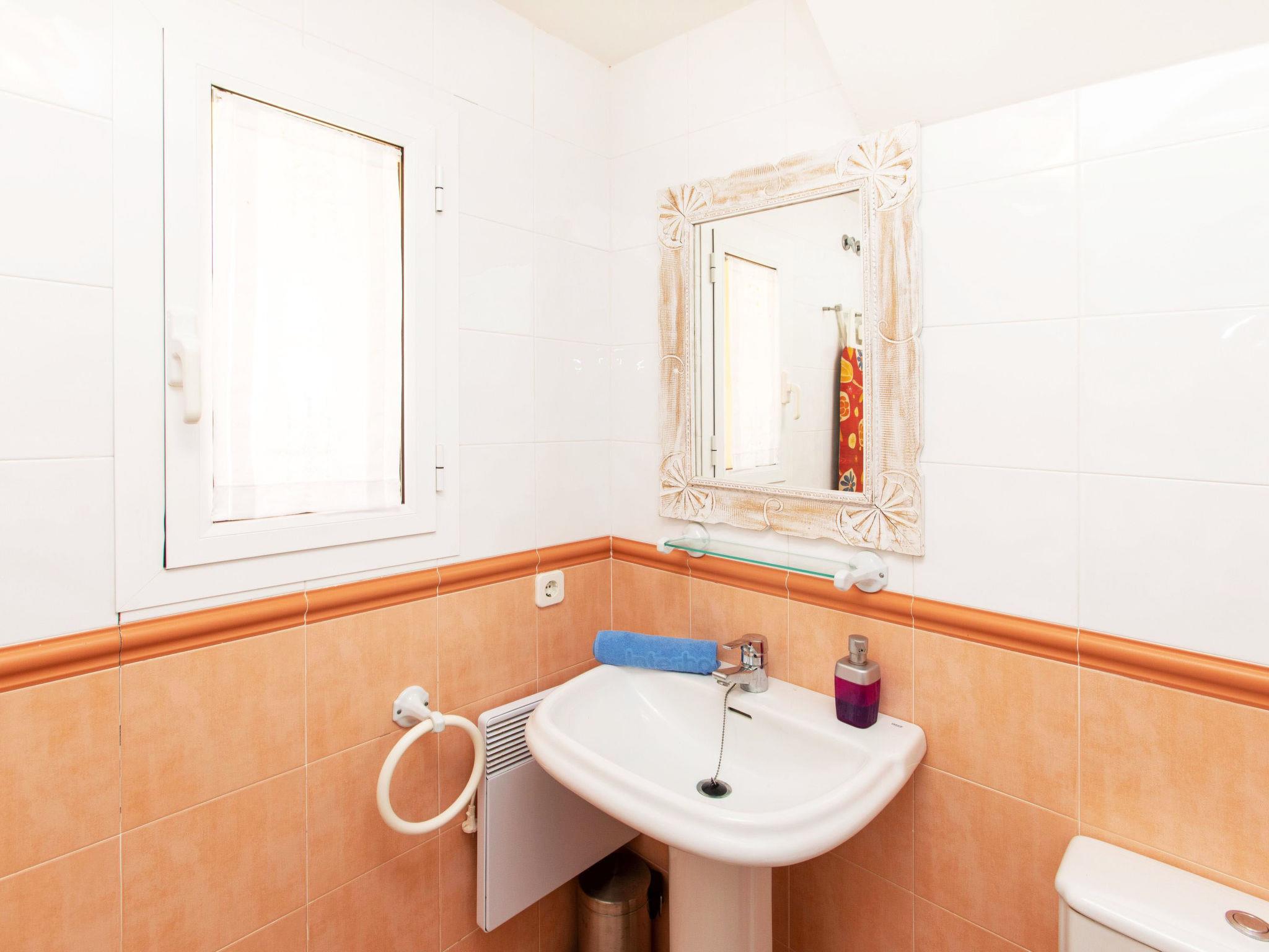 "Port Pals Village", 4-room terraced house 150 m2 on 3 levels. Practical furnishings: living/dining room with digital TV. Exit to the terrace. Kitchen (4 ceramic glass hob hotplates, toaster, kettle, microwave, freezer, electric coffee machine). Sep. WC. No heating option. Upper floor: 1 room with 1 french bed (135 cm, length 190 cm), bath/WC. 1 room with 1 french bed (135 cm, length 190 cm). 1 room with 2 beds (90 cm, length 190 cm). Bath/WC. Patio. Terrace furniture. View of the swimming pool. Facilities: washing machine, iron, children's high chair, baby cot, hair dryer. Internet (WiFi, free). Parking space n Num 20 exterior (1 car). Please note: TV only ES. HUTG-058499 // Reg. Nr.: ESFCTU00001700700022603400000000000000000HUTG-0584998