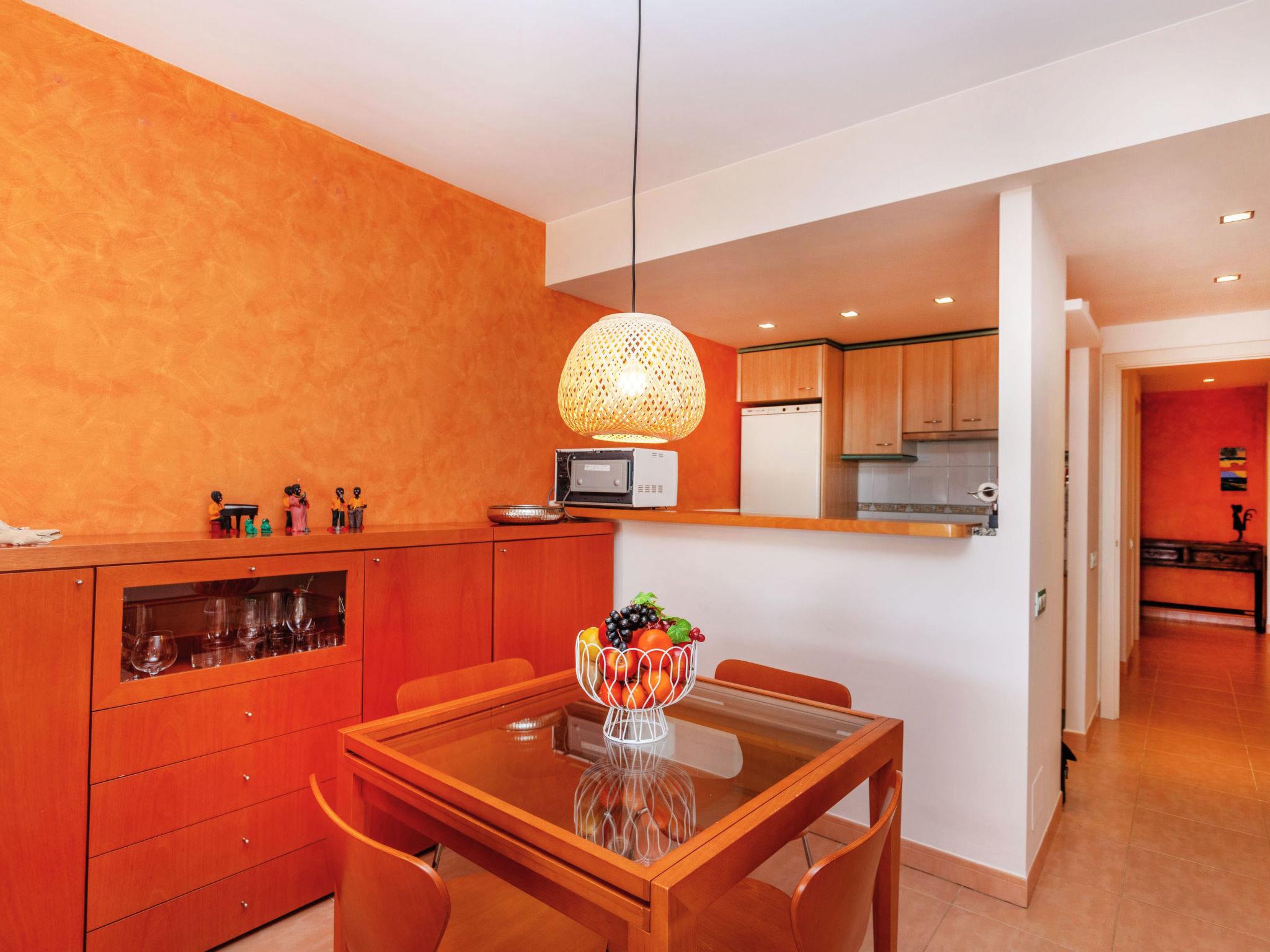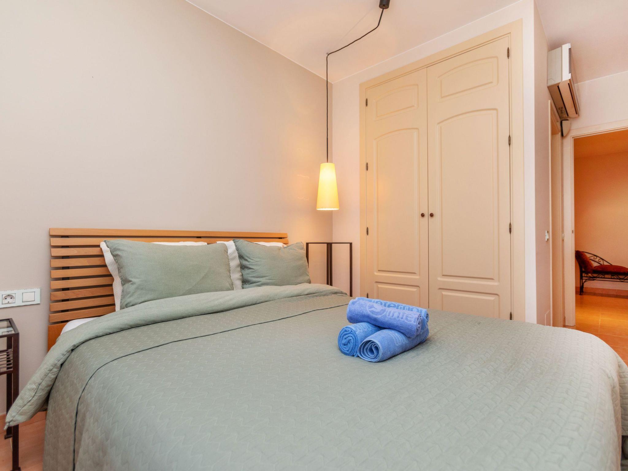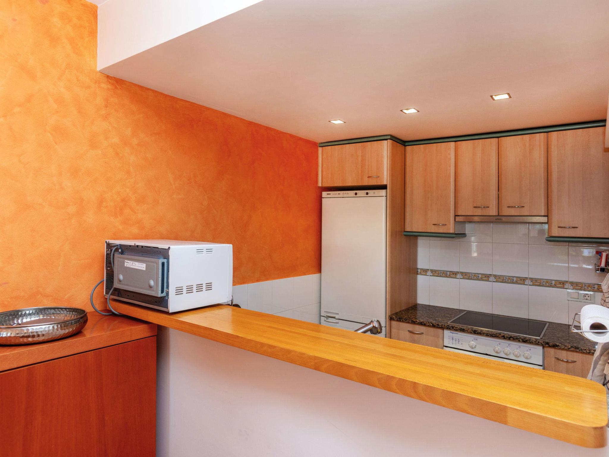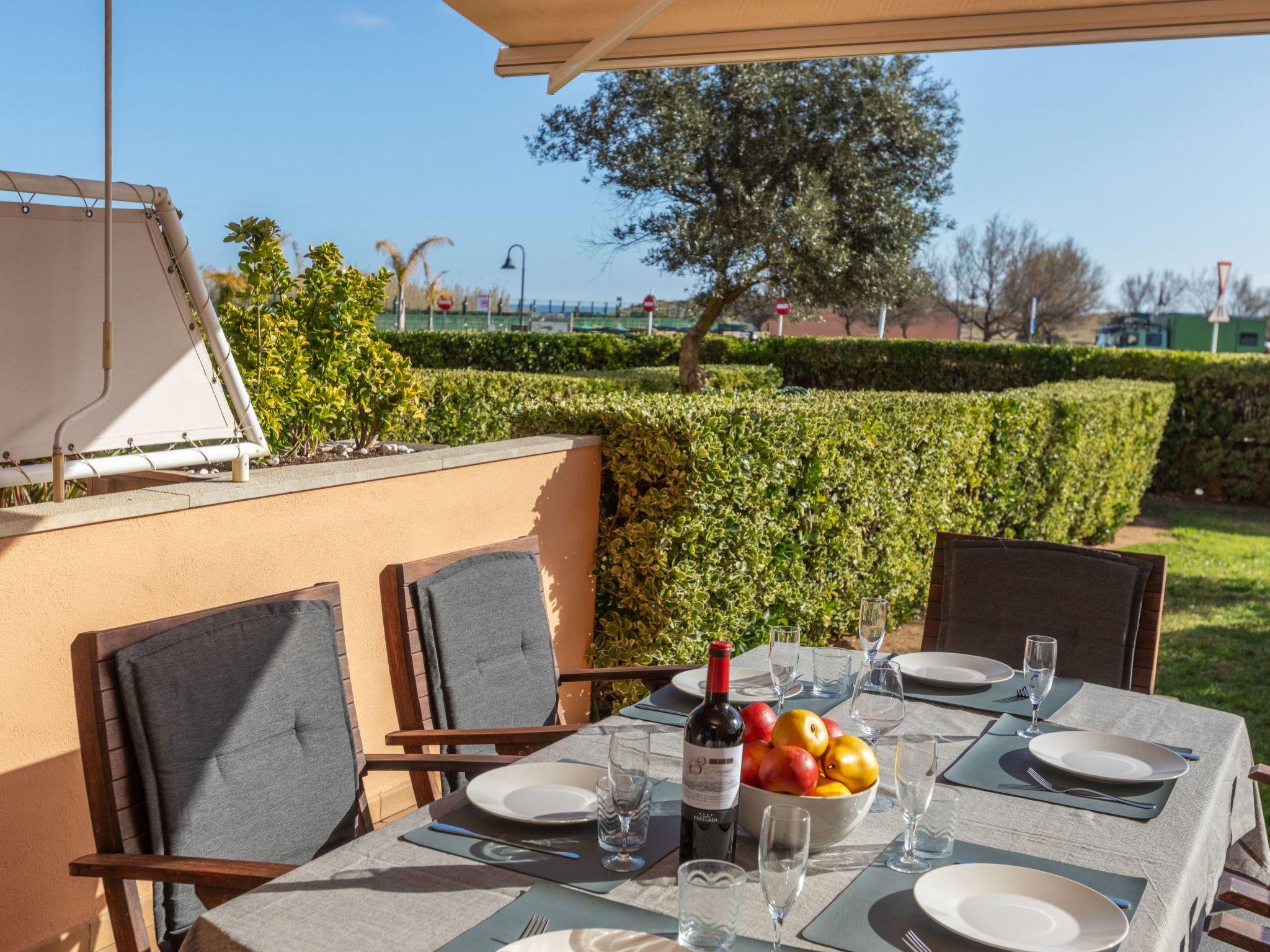 "Port Pals Garden & terrace", 3-room apartment 90 m2, on the ground floor. Practical furnishings: living/dining room with digital TV, air conditioning and forced-air heating. Exit to the patio. 1 room with 1 french bed (180 cm, length 200 cm), bath/WC, air conditioning and forced-air heating. 1 room with 1 x 2 bunk beds (90 cm, length 190 cm), air conditioning and forced-air heating. Exit to the patio. Open kitchen (oven, dishwasher, 4 ceramic glass hob hotplates, toaster, kettle, microwave, freezer, grill, electric coffee machine). Bath/WC. No heating option. Patio. Terrace furniture, deck chairs (2), covered balcony. Partial distant view of the sea and the countryside. Facilities: washing machine, iron, children's high chair, baby cot, hair dryer. Internet (WiFi, free). Garage. Please note: suitable for families. TV only ES. HUTG-075105 // Reg. Nr.: ESFCTU00001700700018979700000000000000000HUTG-0751059