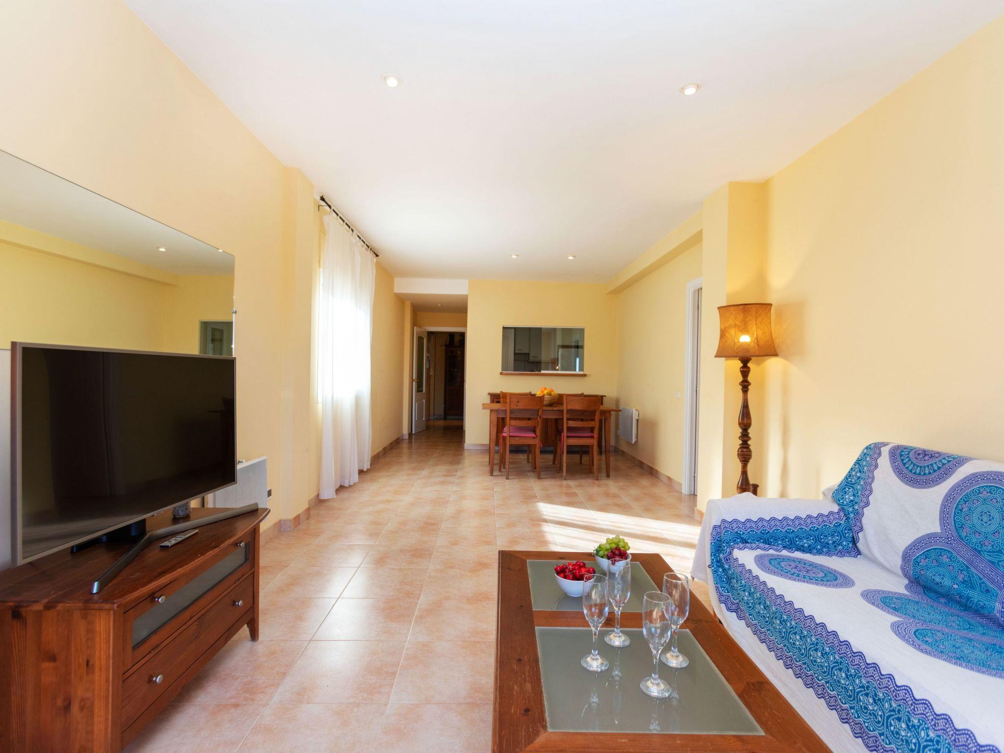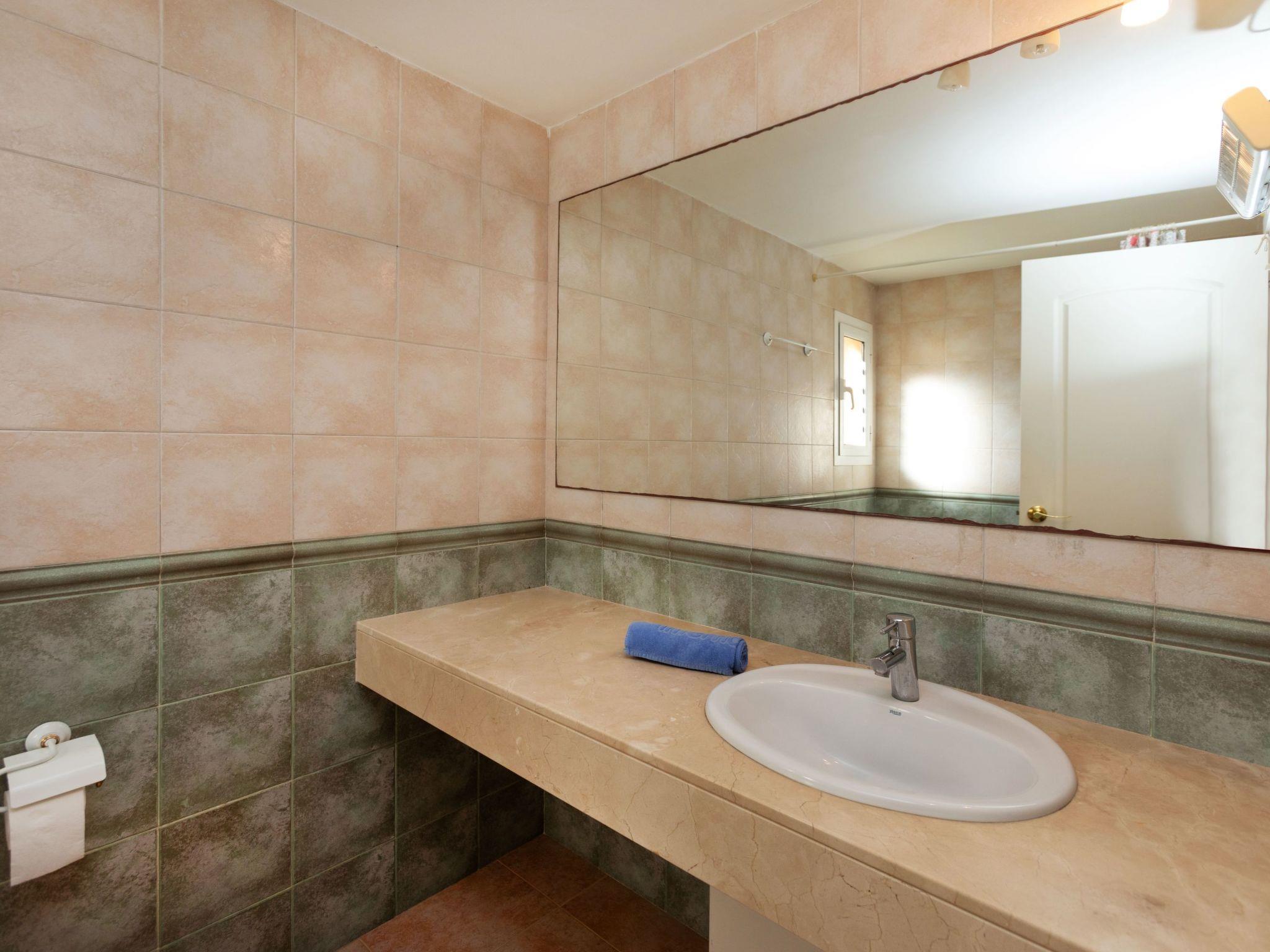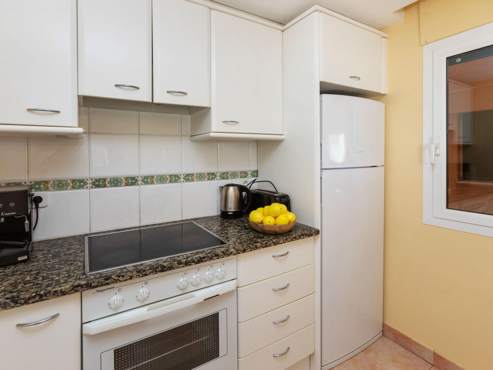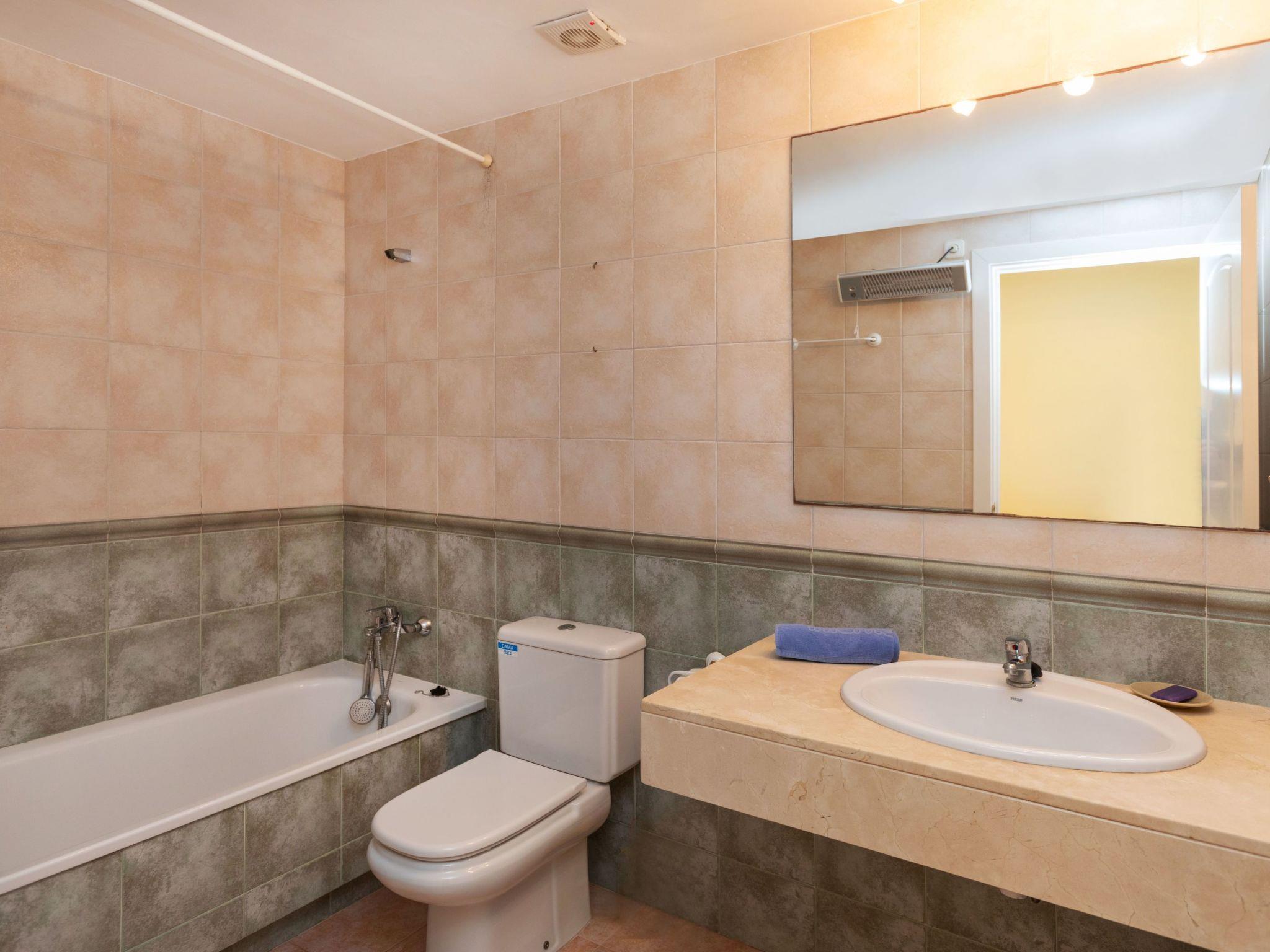 "Port Pals family terrace & garden", 4-room apartment 95 m2, on the ground floor. Practical furnishings: living/dining room with digital TV and electric heating. Exit to the patio. 1 room with 1 french bed (135 cm, length 190 cm). 1 room with 1 french bed (140 cm, length 200 cm), bath/WC. 1 room with 1 x 2 bunk beds (90 cm, length 190 cm). Open kitchen (oven, dishwasher, 4 ceramic glass hob hotplates, toaster, kettle, microwave, freezer, grill, electric coffee machine). Bath/WC. Electric heating. Patio. Terrace furniture, deck chairs, covered balcony. Distant view of the sea and the countryside. Facilities: washing machine, iron, children's high chair, baby cot, hair dryer. Internet (WiFi, free). Please note: suitable for families. TV only ES. HUTG-016573 // Reg. Nr.: ESFCTU00001700700024735000000000000000000HUTG-0165733