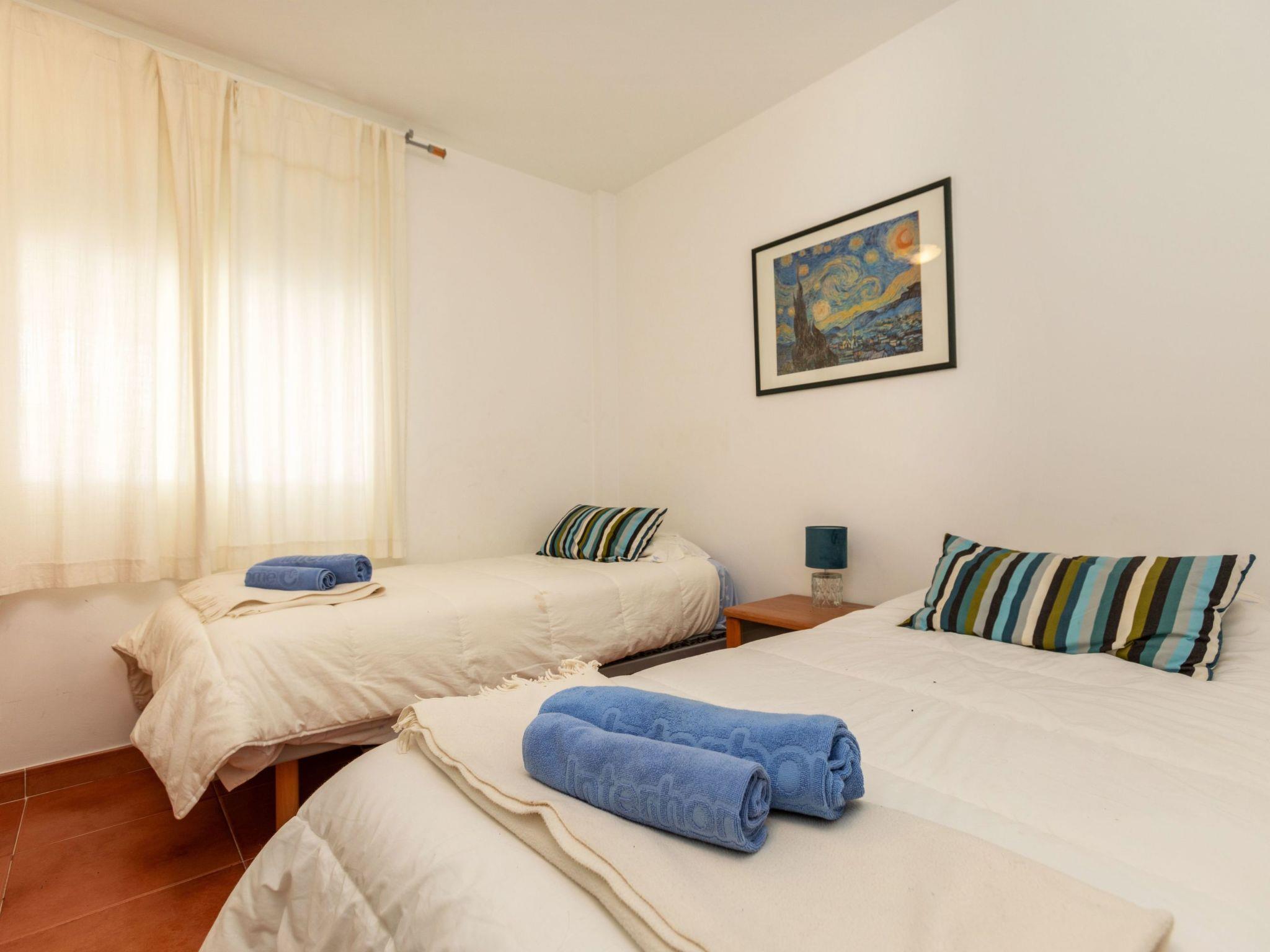 "Green Beach Gold", 3-room apartment 70 m2 on 2nd floor. Bright, practical and comfortable furnishings: living/dining room with digital TV and air conditioning. Exit to the terrace. 1 room with 2 beds (90 cm, length 190 cm). 1 room with 1 french bed (150 cm, length 190 cm). Open kitchen (oven, 4 ceramic glass hob hotplates, toaster, kettle, microwave, electric coffee machine). Bath/bidet/WC. No heating option. Large terrace. Terrace furniture. View of the swimming pool. Facilities: washing machine, iron, children's high chair, baby cot for up to 2 year olds, hair dryer. Internet (WiFi, free). Parking space n 74. Please note: TV only ES. HUTG-029561 // Reg. Nr.: ESFCTU00001700700052488800000000000000000HUTG-0295618