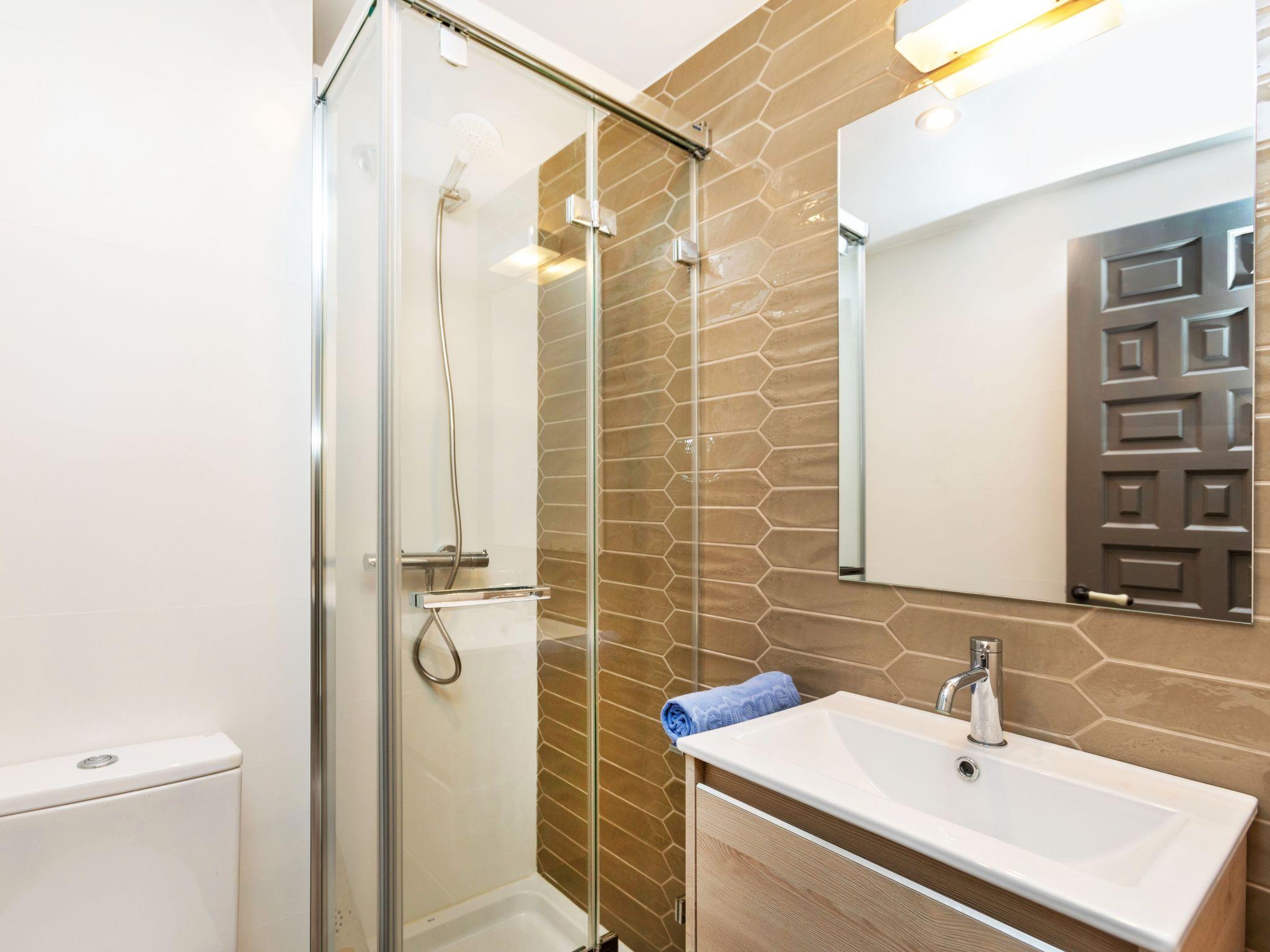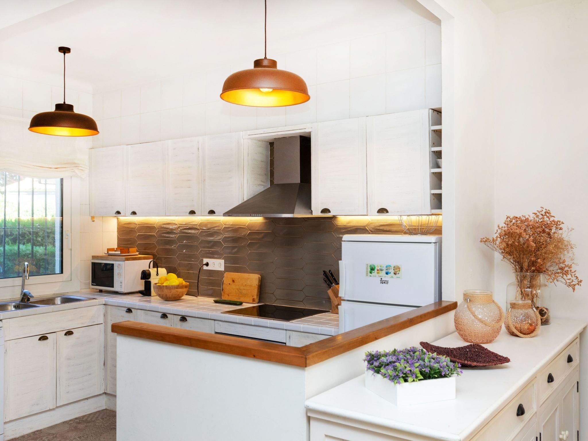 "Pals Haus Venice", 4-room terraced house 85 m2. Practical furnishings: living/dining room with digital TV. Exit to the patio. Kitchen (oven, dishwasher, 4 ceramic glass hob hotplates, toaster, microwave, freezer, electric coffee machine) with hatch. No heating option. Upper floor: 1 room with 1 pull-out bed (2 pers. 2 x 90 cm, length 190 cm). 1 room with 2 beds (90 cm, length 190 cm). Exit to the balcony. 1 room with 1 french bed (180 cm, length 190 cm). Bath/WC, shower/WC. Boiler (100 litres). Patio. Terrace furniture. Facilities: washing machine, iron, children's high chair, baby cot, hair dryer. Internet (WiFi, free). Parking space n A 40. Please note: TV only ES. HUTG-074333 // Reg. Nr.: ESFCTU00001700700023088800000000000000000HUTG-0743335