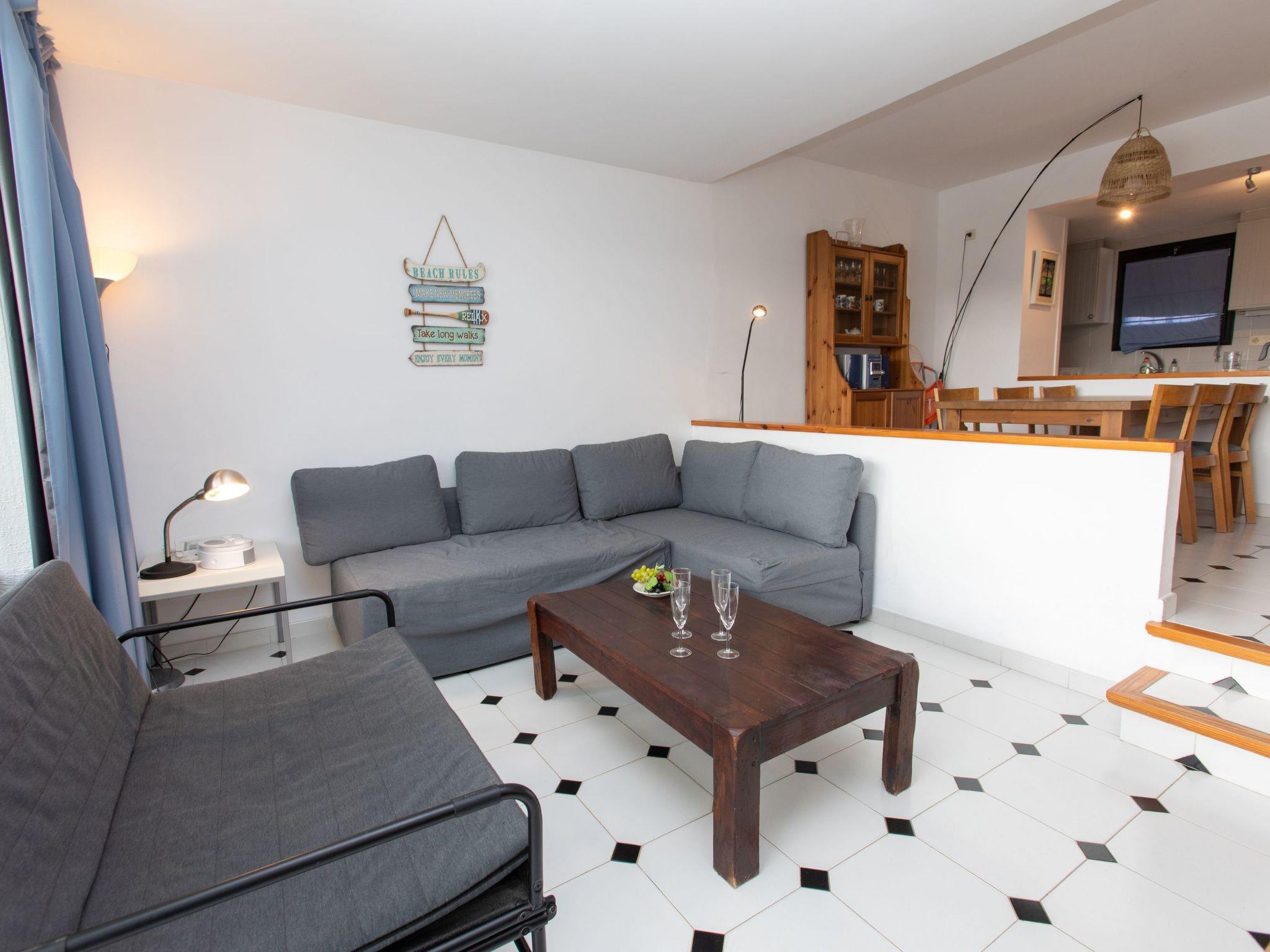"Ducado Golf B II", 2-room apartment 50 m2 on 2nd floor. Practical furnishings: living/dining room with 1 double sofabed (1 x 140 cm, length 200 cm), dining table and digital TV. Exit to the terrace. 1 room with 1 french bed (135 cm, length 190 cm). Open kitchen (oven, dishwasher, 3 ceramic glass hob hotplates, microwave). Bath/WC. Boiler (75 litres). No heating option. Terrace. Terrace furniture. View of the swimming pool. Facilities: washing machine, iron, children's high chair, baby cot for up to 2 year olds, hair dryer. Internet (WiFi, free). Parking space n exterior. Please note: non-smokers only. TV only ES. HUTG-002899 // Reg. Nr.: ESFCTU00001700700023375900000000000000000HUTG-0028999
