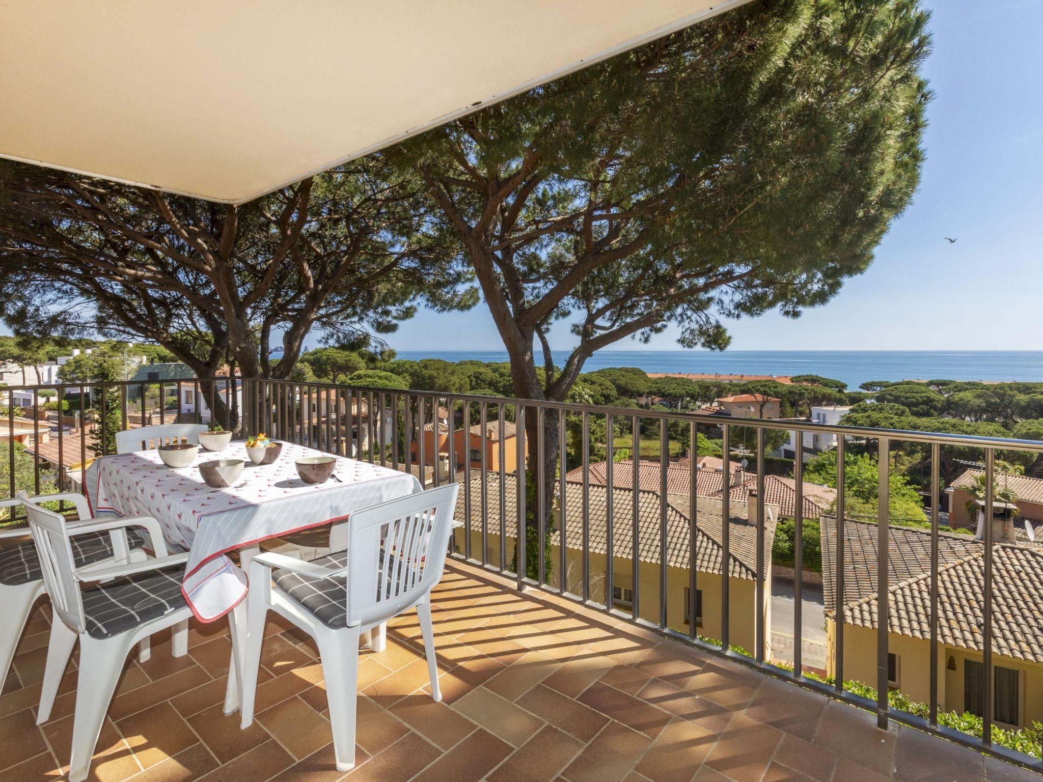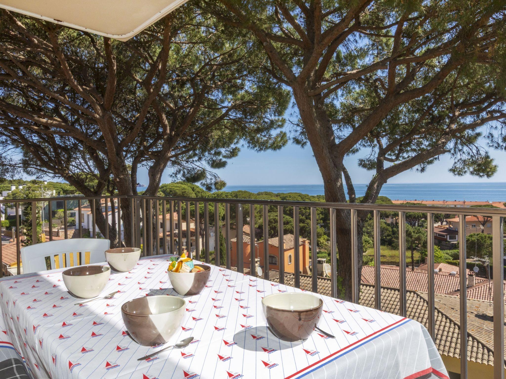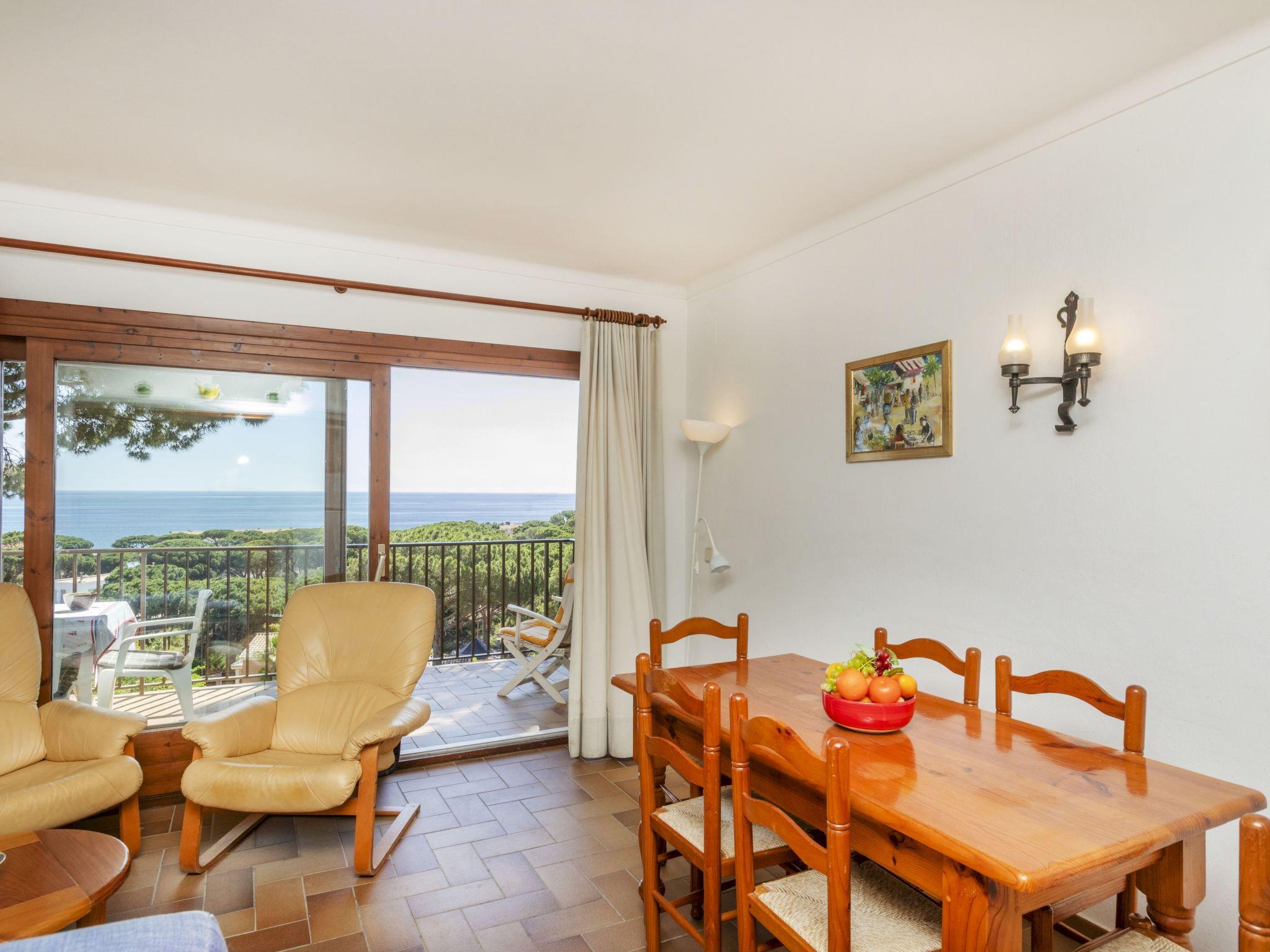 "Melis II M5 Playa de Pals", 3-room apartment 60 m2 on 1st floor. Practical and cosy furnishings: living/dining room with 1 sofabed (135 cm, length 190 cm), open-hearth fireplace (only for decoration), satellite TV, flat screen and fan. Exit to the terrace. 1 room with 2 beds (90 cm, length 190 cm), electric heater. Exit to the terrace. 1 room with 1 x 2 bunk beds (90 cm, length 180 cm), electric heater. Open kitchen (3 ceramic glass hob hotplates, kettle, electric coffee machine, combination microwave) with bar. Shower/WC. Terrace 12 m2. Terrace furniture. Panoramic view of the sea. Facilities: safe, iron, children's high chair, baby cot for up to 2 year olds. Internet (WiFi, free). Parking. Please note: non-smokers only. TV only ES, DE, FR. HUTG-001769 // Reg. Nr.: ESFCTU000017007000021844000000000000000HUTG001769-288