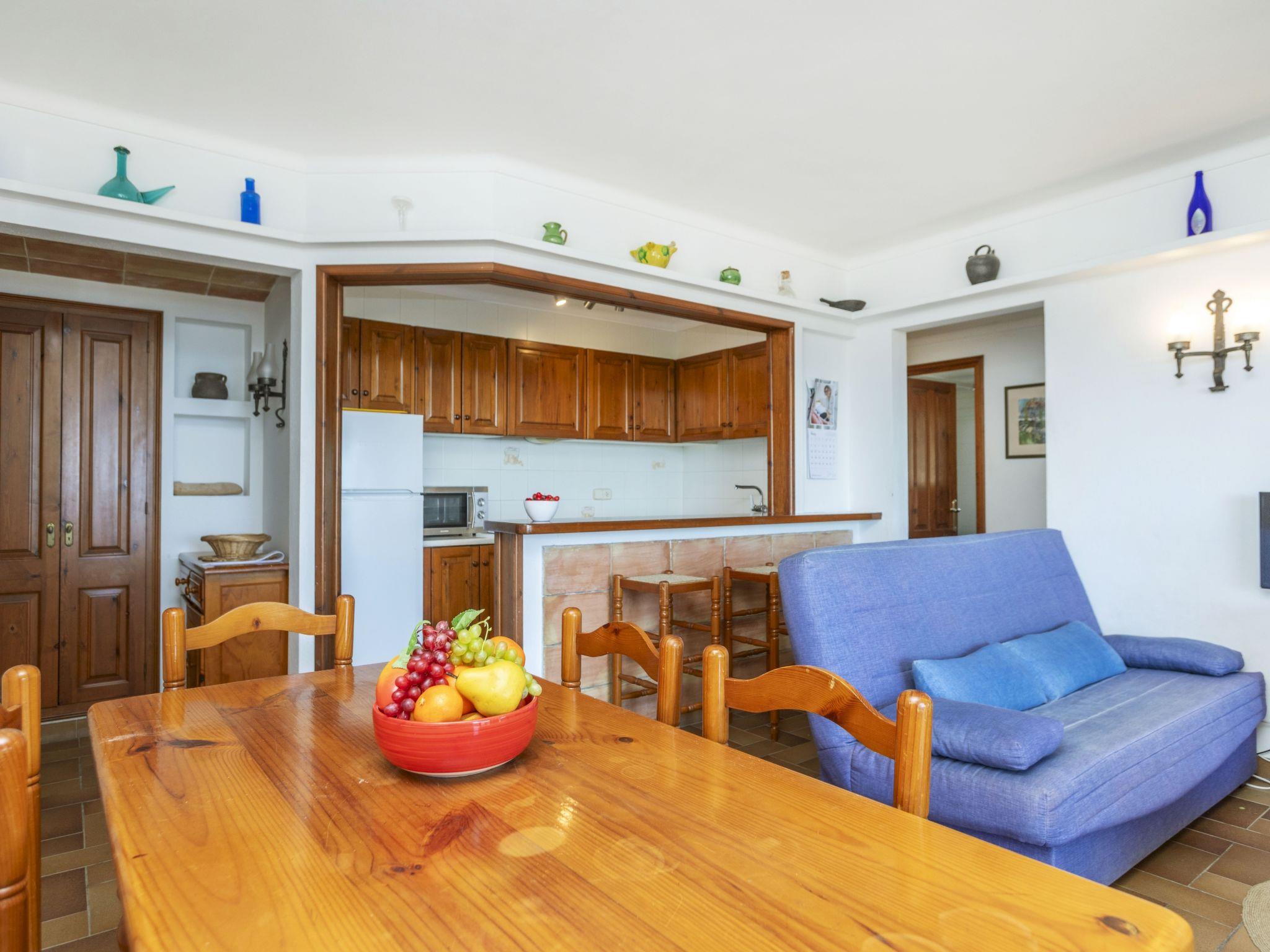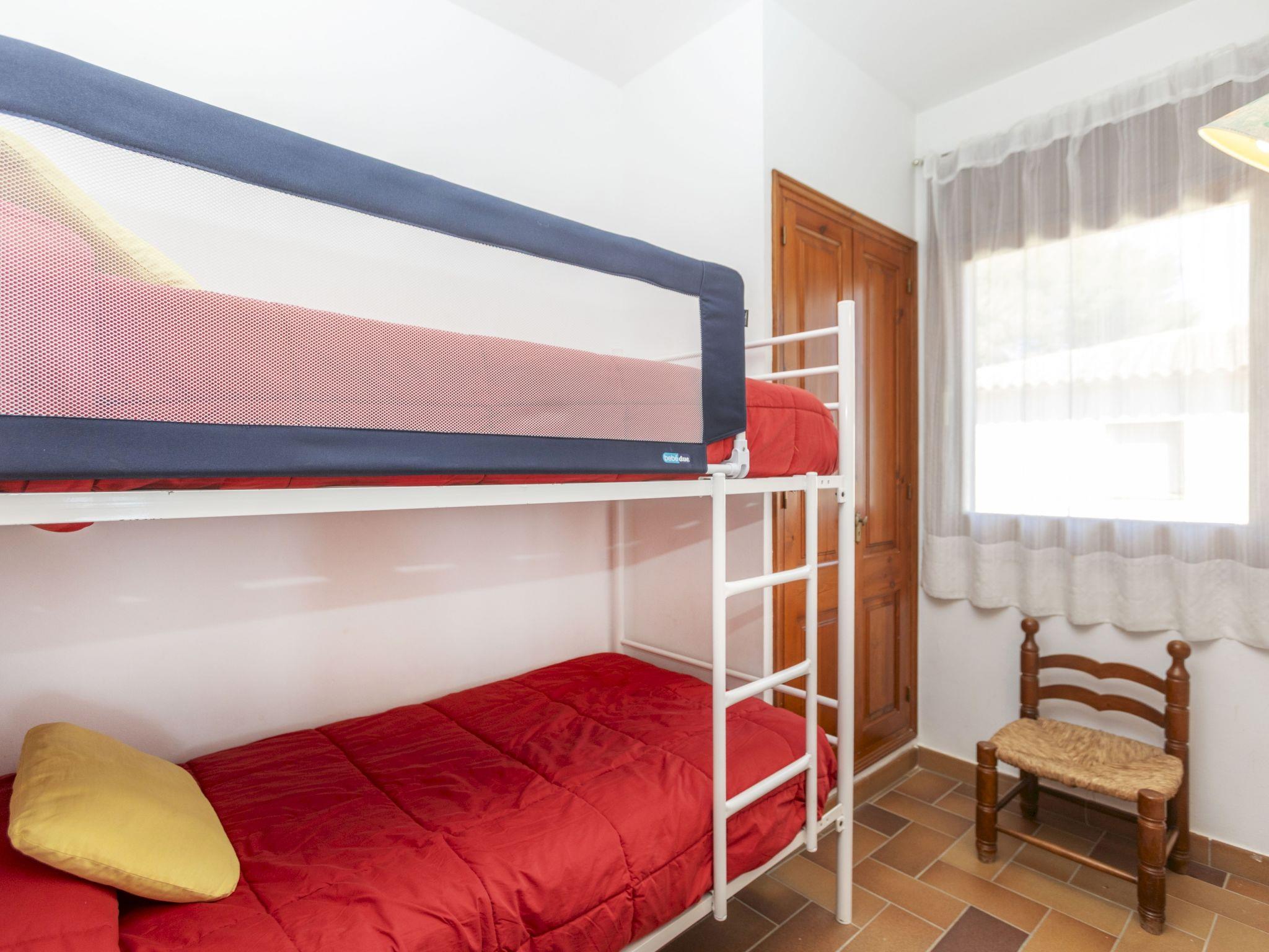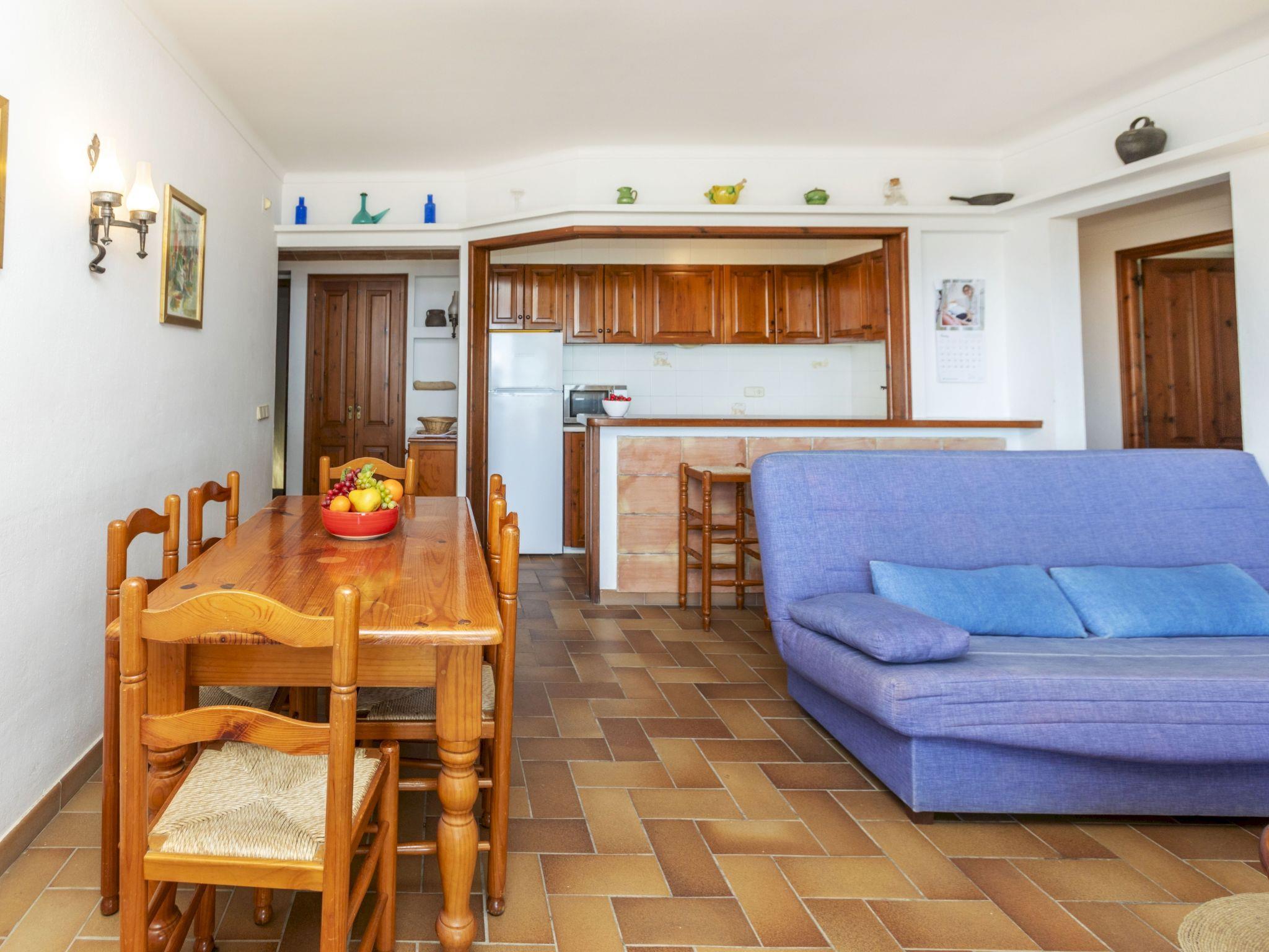 "Melis II M5 Playa de Pals", 3-room apartment 60 m2 on 1st floor. Practical and cosy furnishings: living/dining room with 1 sofabed (135 cm, length 190 cm), open-hearth fireplace (only for decoration), satellite TV, flat screen and fan. Exit to the terrace. 1 room with 2 beds (90 cm, length 190 cm), electric heater. Exit to the terrace. 1 room with 1 x 2 bunk beds (90 cm, length 180 cm), electric heater. Open kitchen (3 ceramic glass hob hotplates, kettle, electric coffee machine, combination microwave) with bar. Shower/WC. Terrace 12 m2. Terrace furniture. Panoramic view of the sea. Facilities: safe, iron, children's high chair, baby cot for up to 2 year olds. Internet (WiFi, free). Parking. Please note: non-smokers only. TV only ES, DE, FR. HUTG-001769 // Reg. Nr.: ESFCTU000017007000021844000000000000000HUTG001769-288