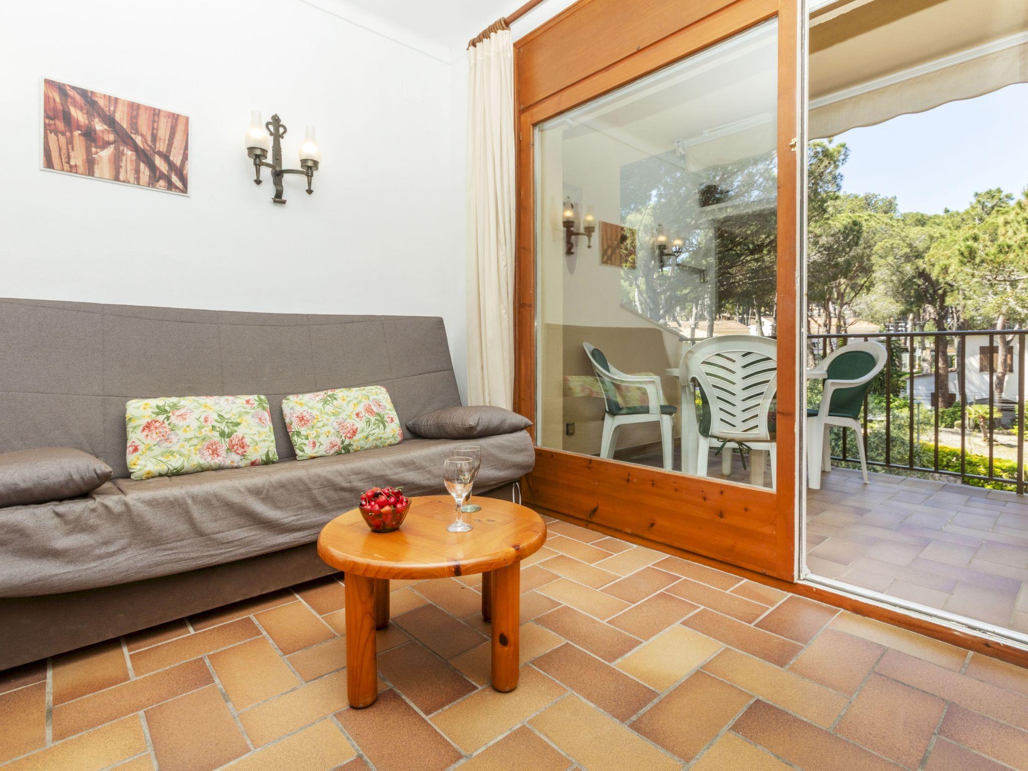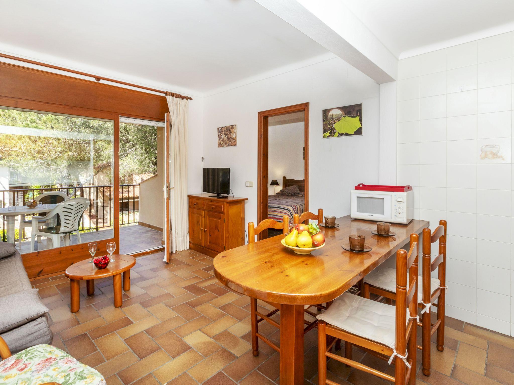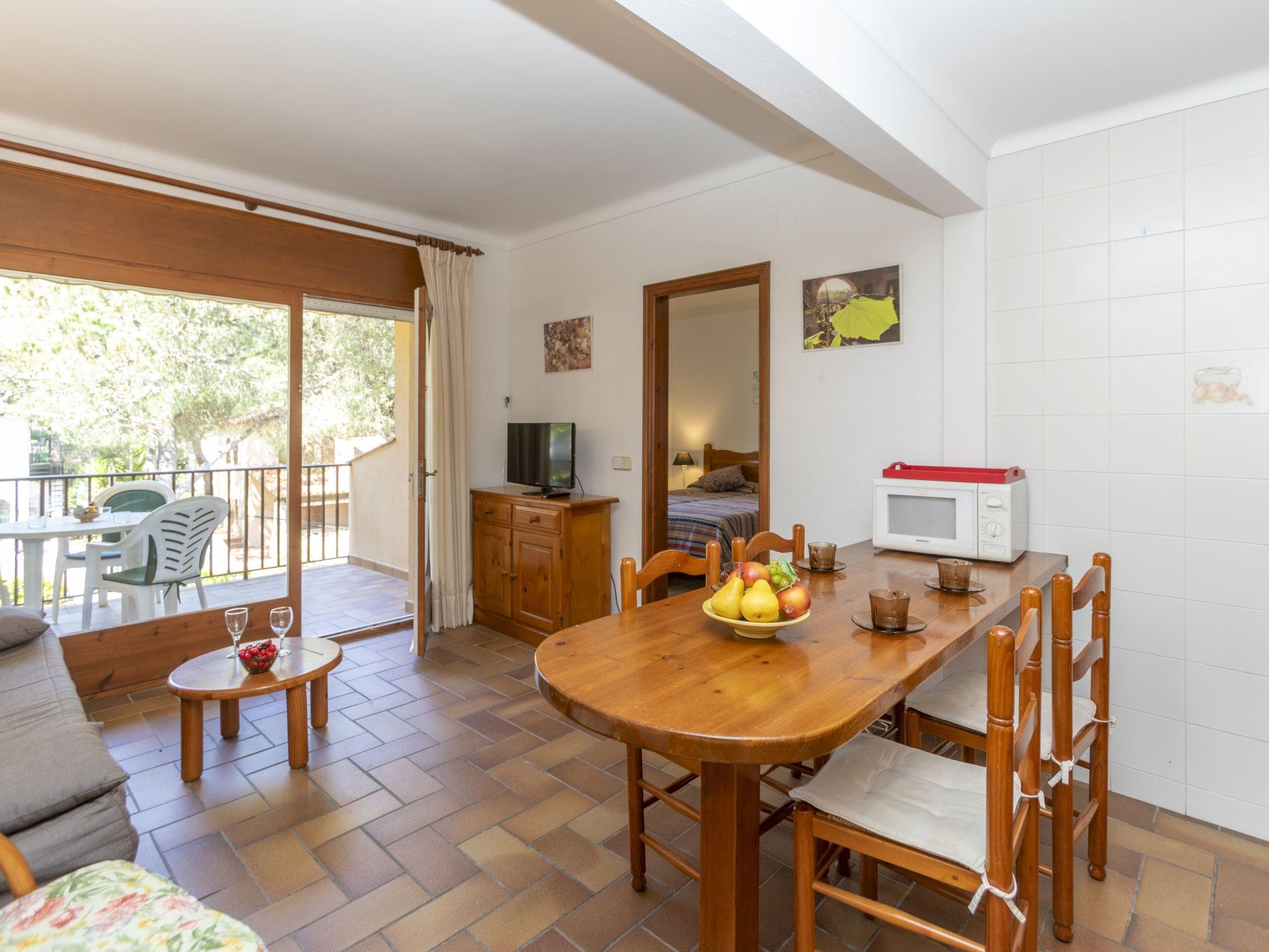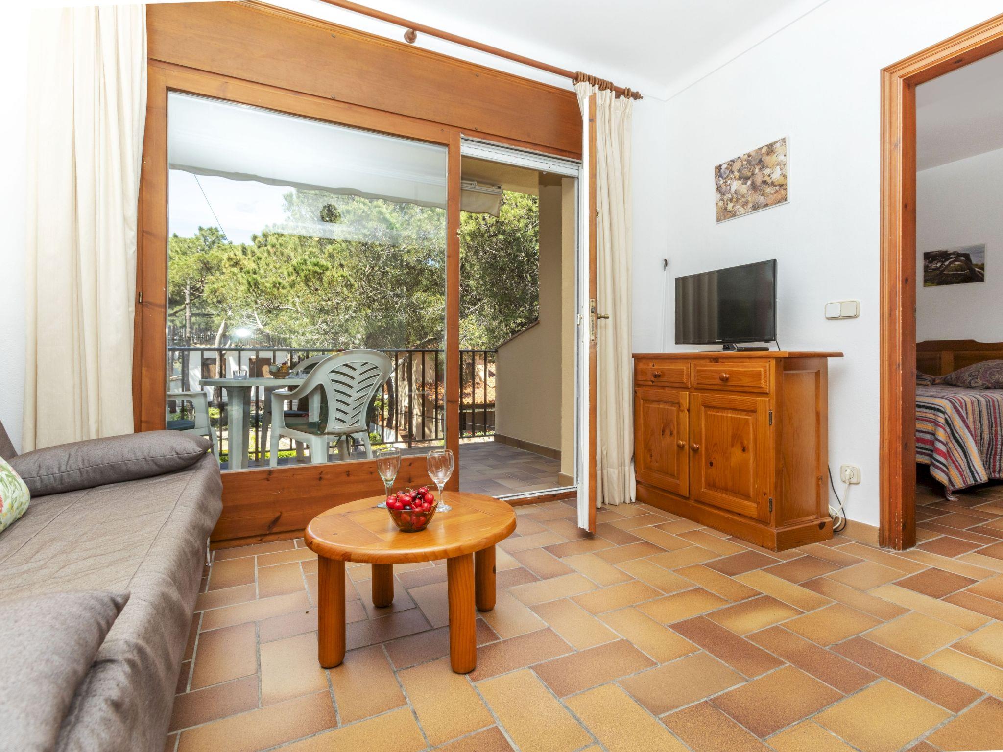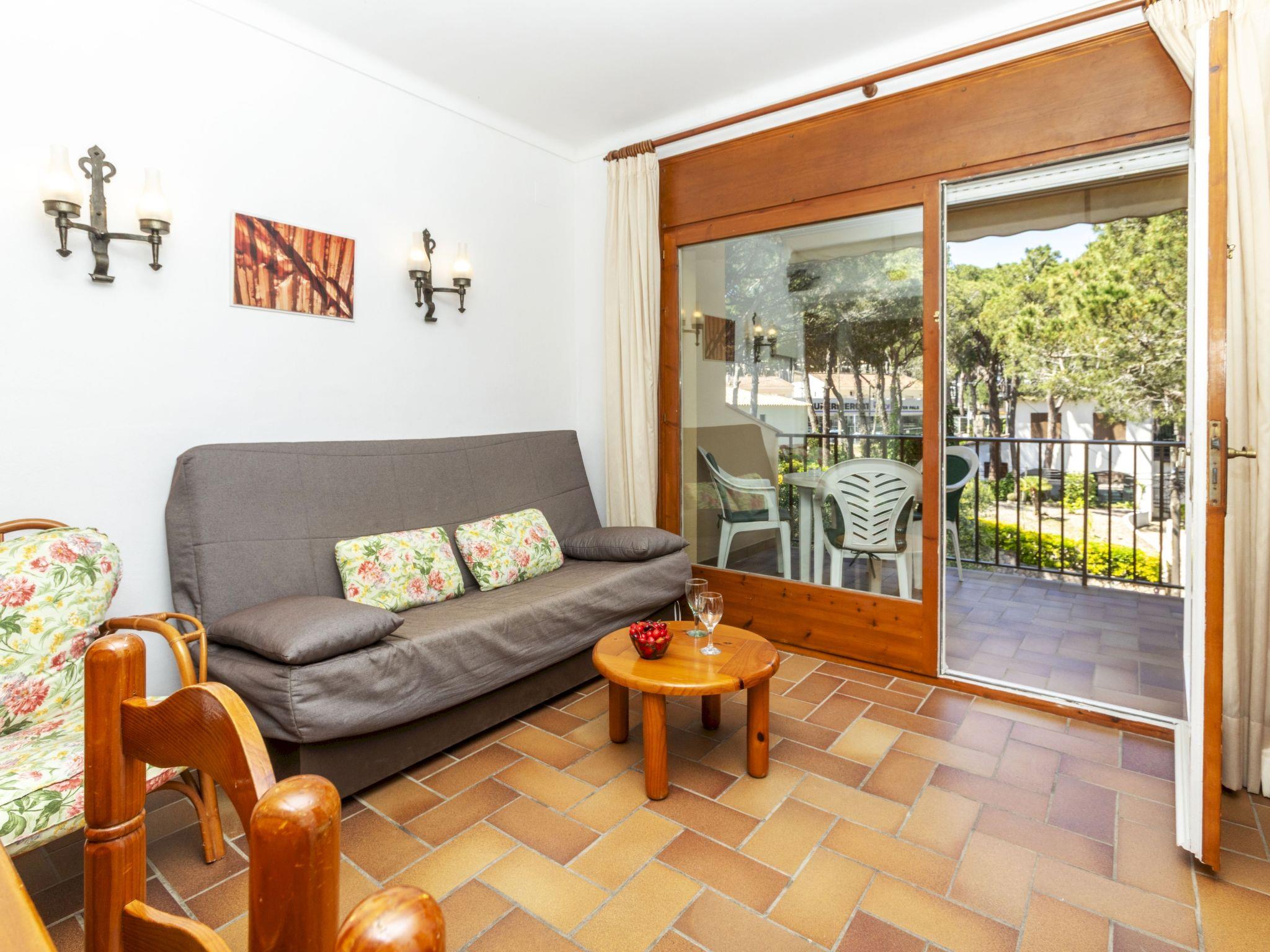 "Melis II M7 Playa de Pals", 2-room apartment 40 m2 on 2nd floor. Practical and cosy furnishings: living/dining room with 1 sofabed (135 cm, length 190 cm), satellite TV, flat screen, electric heater and fan. Exit to the terrace. 1 room with 2 beds (80 cm, length 190 cm), shower/WC and electric heater. Kitchenette (4 hot plates, kettle, electric coffee machine, combination microwave). Terrace 6 m2. Terrace furniture. View of the garden. Facilities: safe, iron, children's high chair, baby cot for up to 2 year olds, hair dryer. Internet (WiFi, free). Parking. Please note: non-smokers only. TV only ES, DE, FR. Fire extinguisher, no lift. HUTG-001763 // Reg. Nr.: ESFCTU00001700700034982500000000000000000HUTG-0017636