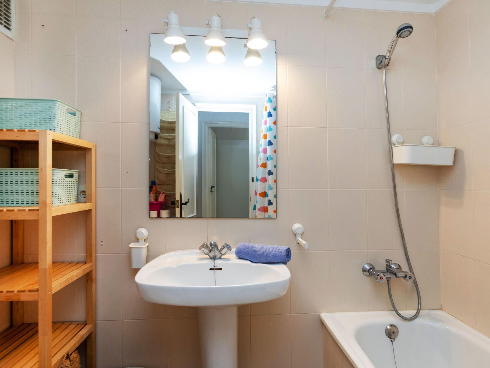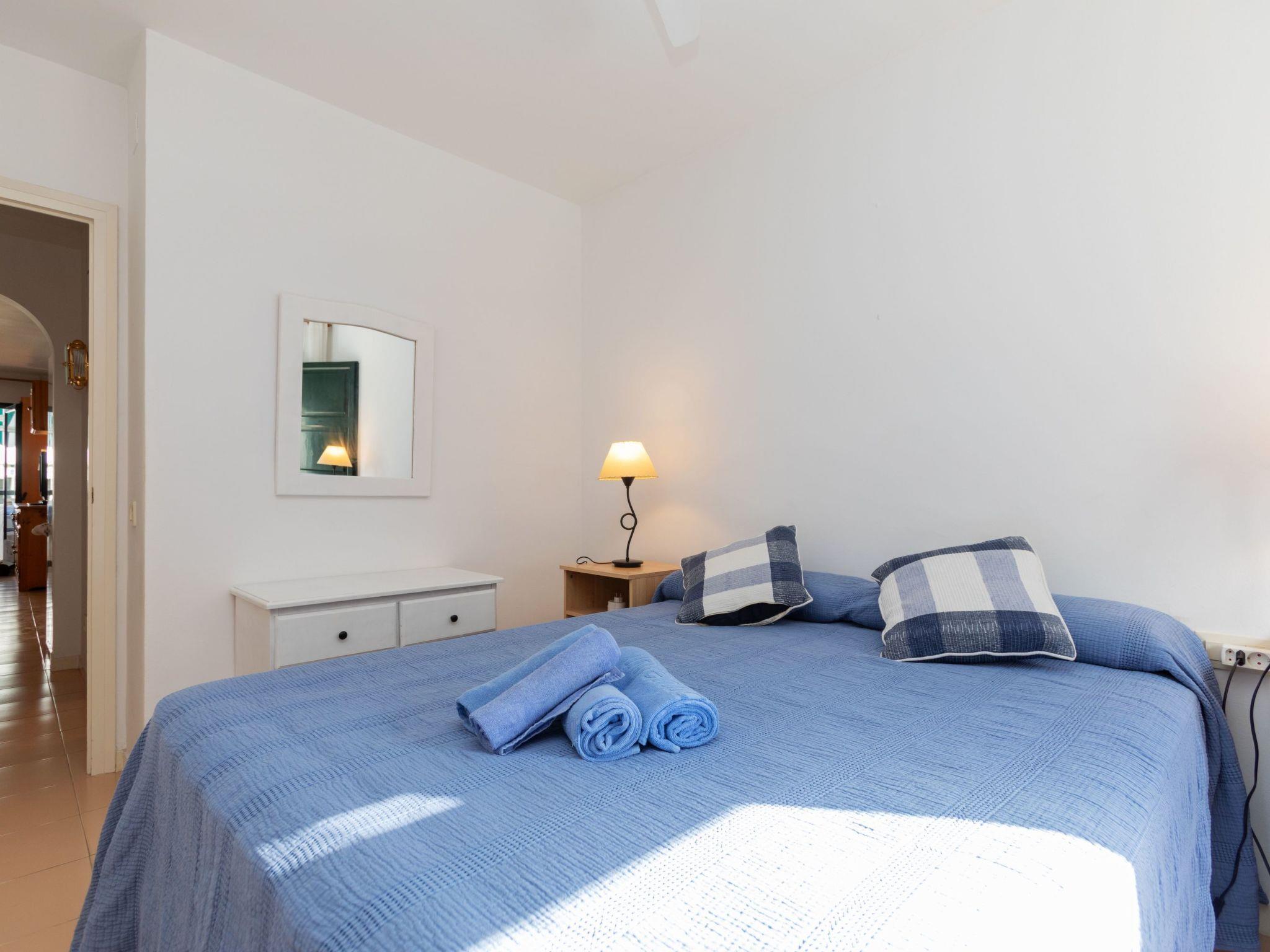 "El Coto G", 3-room apartment 65 m2 on 2nd floor. Bright, practical and comfortable furnishings: living/dining room with dining table. 1 room with 1 french bed (160 cm, length 190 cm). 1 room with 1 x 2 bunk beds (90 cm, length 190 cm). Open kitchen (dishwasher, 3 induction hot plates, toaster, kettle, microwave). Bath/WC. No heating option. Small terrace. View of the swimming pool and the garden. Facilities: washing machine, iron, children's high chair, baby cot for up to 2 year olds, hair dryer. Internet (WiFi). Parking space n Exterior G202 at 100 m. Please note: TV only ES. HUTG-076834 // Reg. Nr.: ESFCTU00001700700034165200000000000000000HUTG-0768347