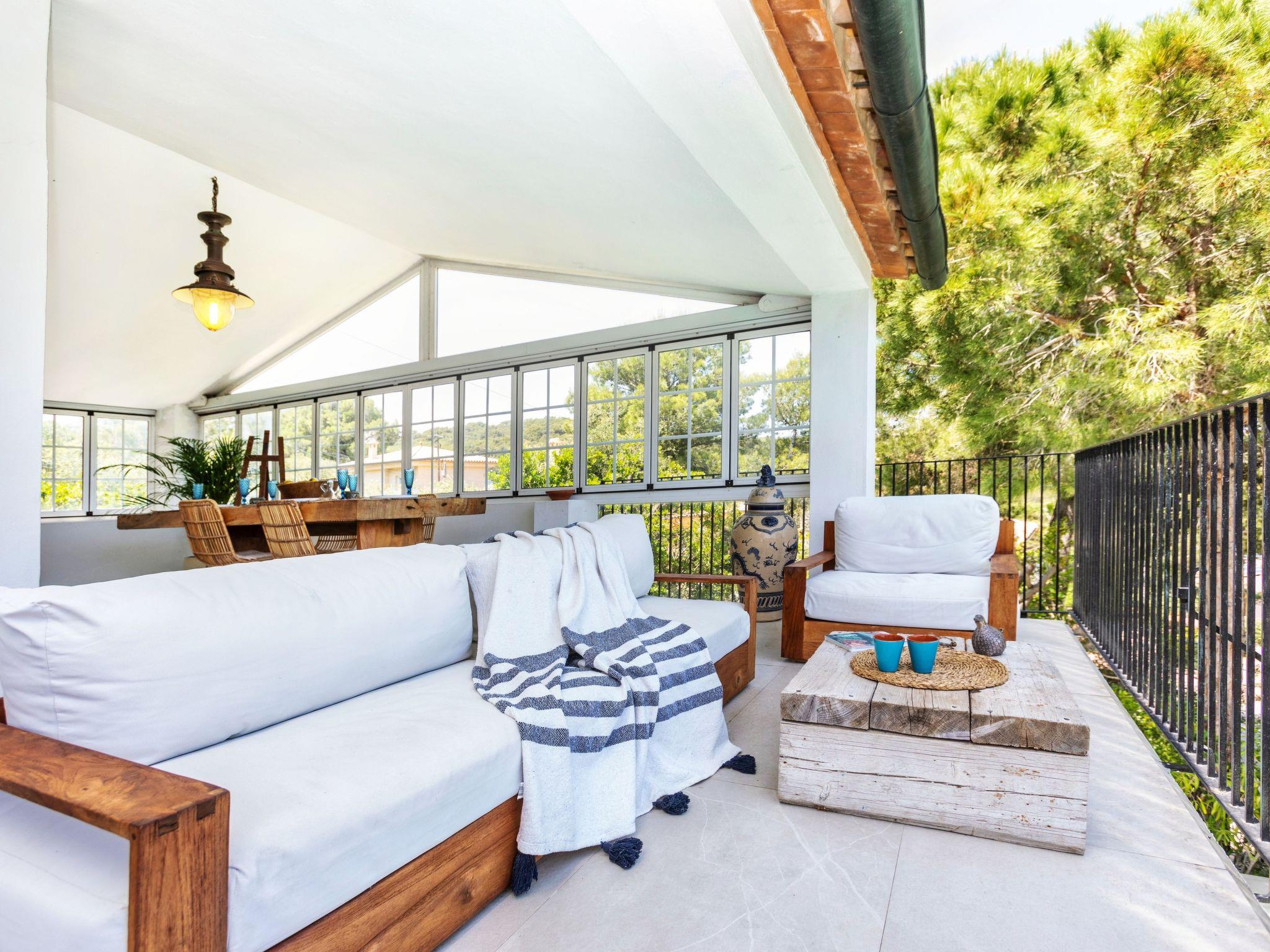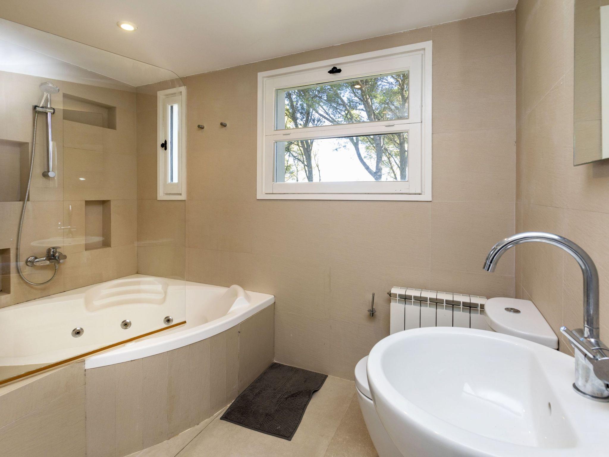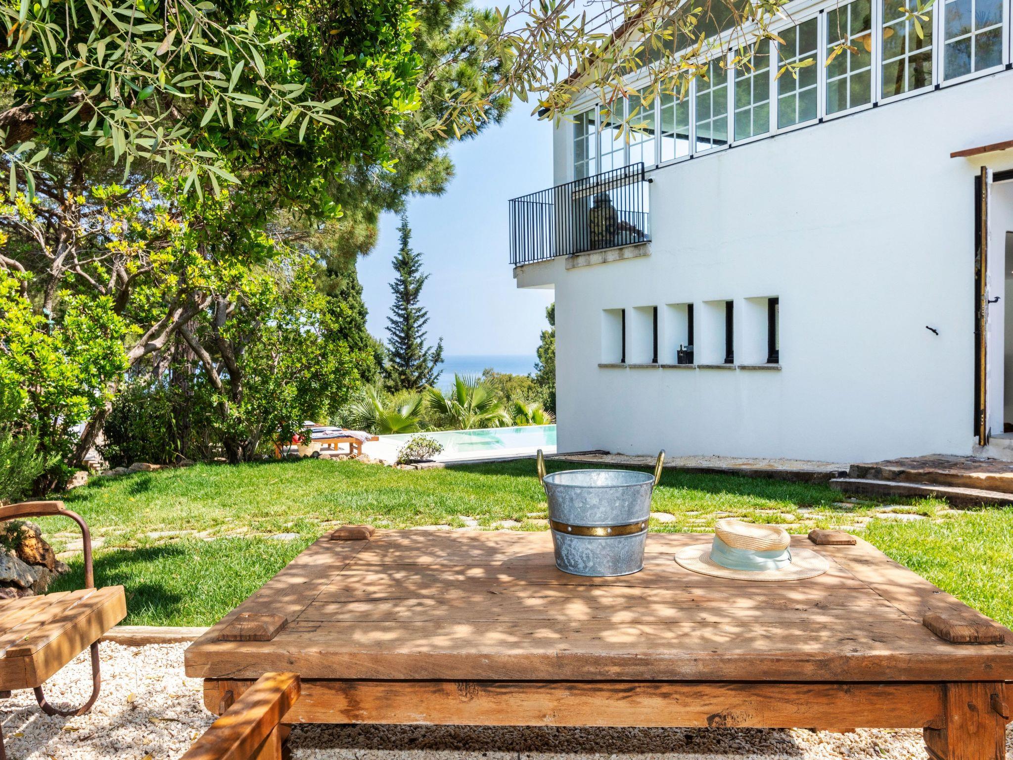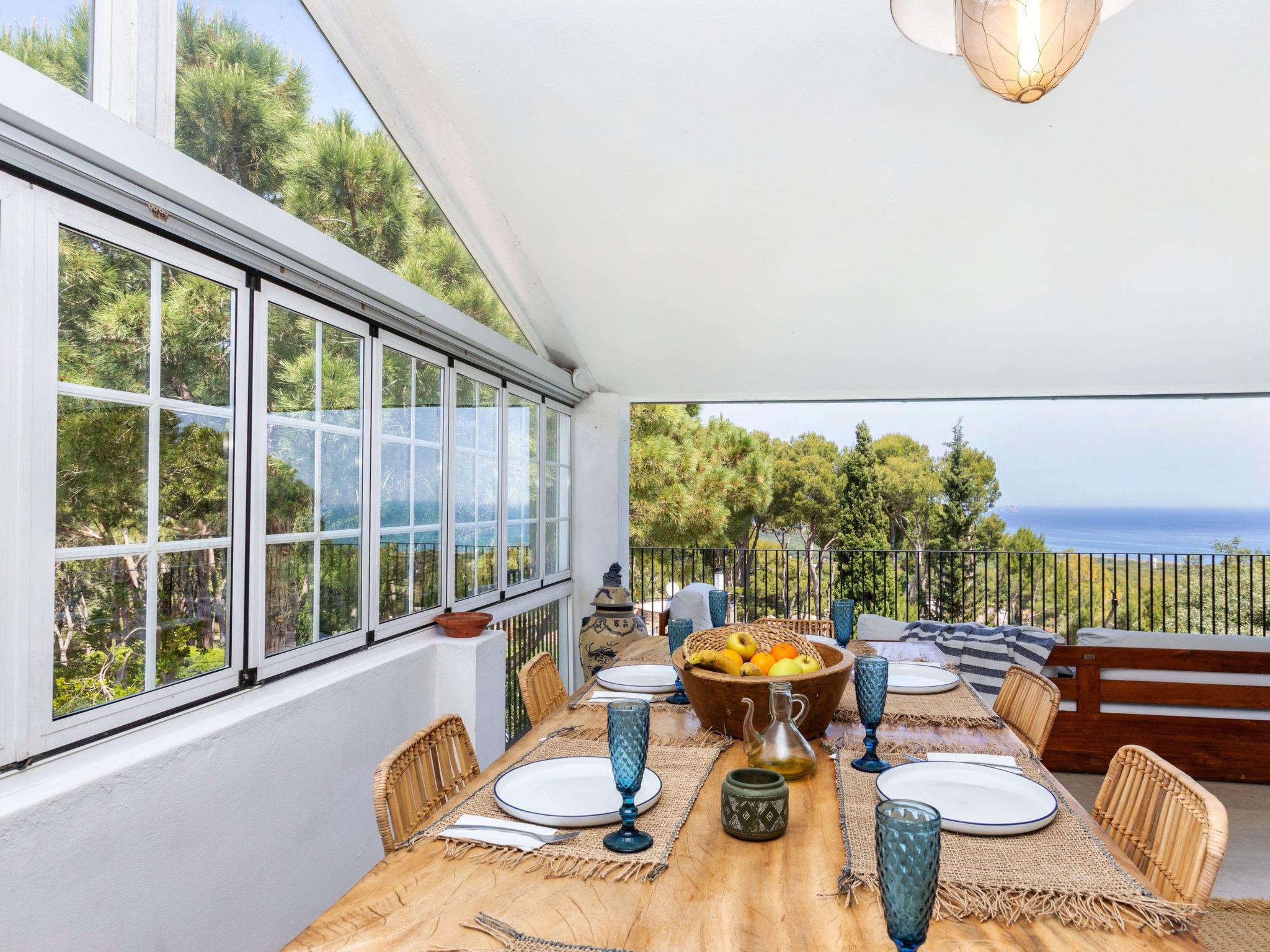 "Casa Blue Art", 6-room house 200 m2 on 2 levels. Comfortable furnishings: living/dining room with TV. Exit to the terrace. 1 room with 1 french bed (150 cm, length 190 cm), bath/WC and air conditioning. Kitchen (4 hot plates, oven, dishwasher, toaster, kettle, microwave, freezer, electric coffee machine). Shower/WC, bath/WC or shower/WC. No heating option. On the lower ground floor: living/dining room. Exit to the garden, to the swimming pool. 2 rooms, each room with 1 french bed (150 cm, length 190 cm). 2 rooms, each room with 2 beds (90 cm, length 190 cm). 1 room with 1 french bed (135 cm, length 190 cm). Kitchenette). Patio. Terrace furniture, deck chairs (3). Panoramic view of the sea, the countryside and the resort. Facilities: washing machine, iron, children's high chair, baby cot, hair dryer. Internet (WiFi, free). Parking at the house. Suitable for families. HUTG-029559 // Reg. Nr.: ESFCTU00001700700016321600000000000000000HUTG-0295599