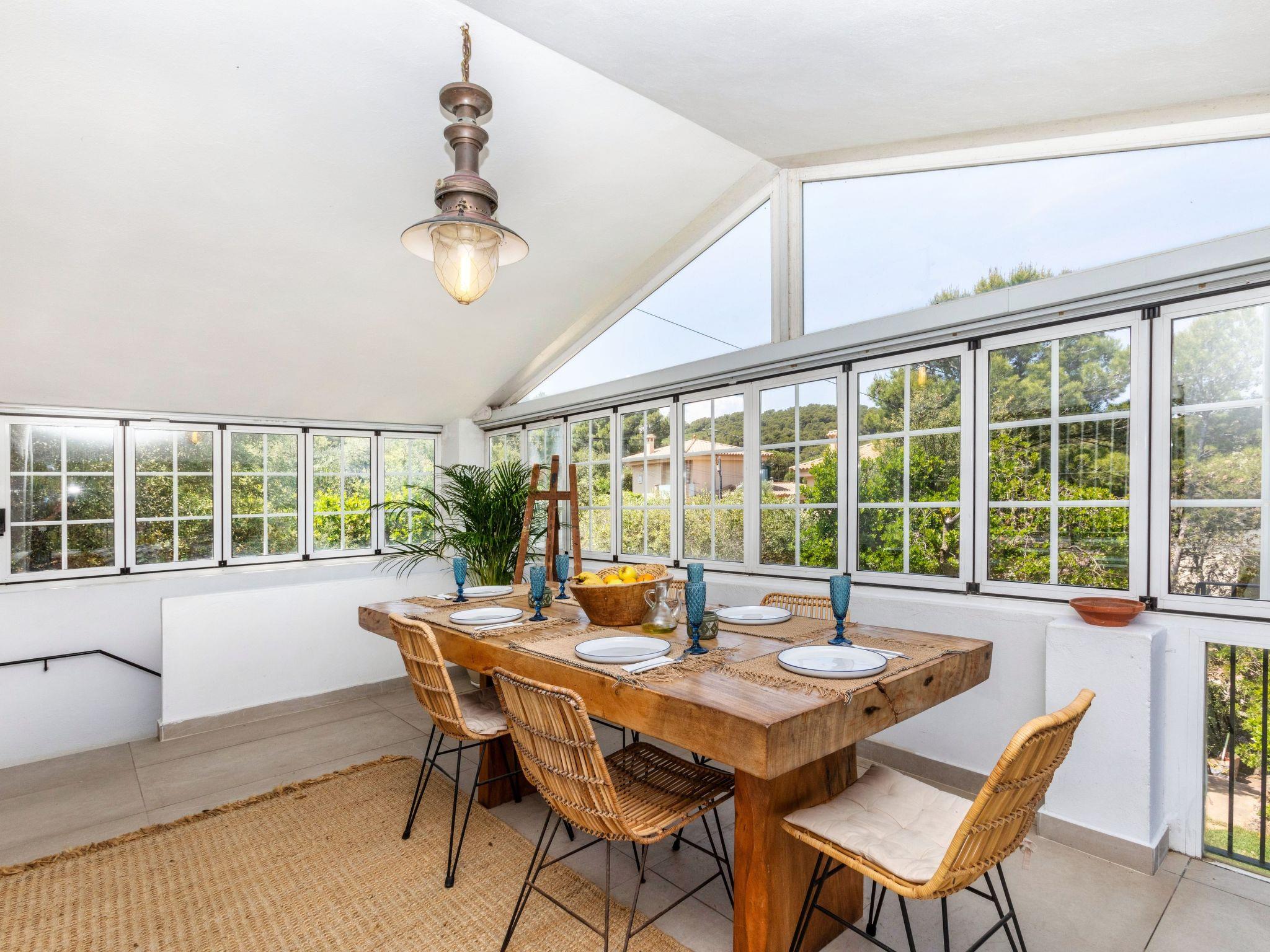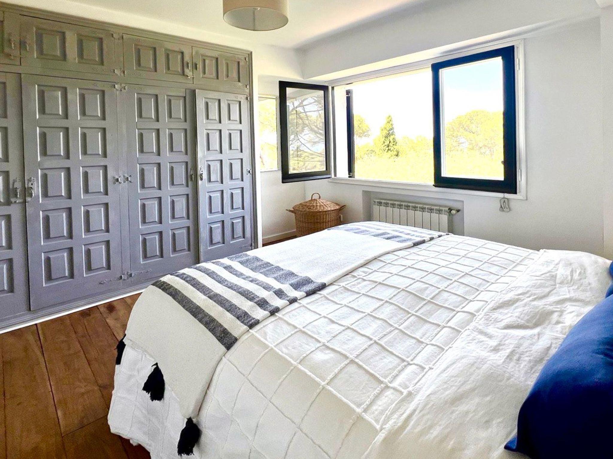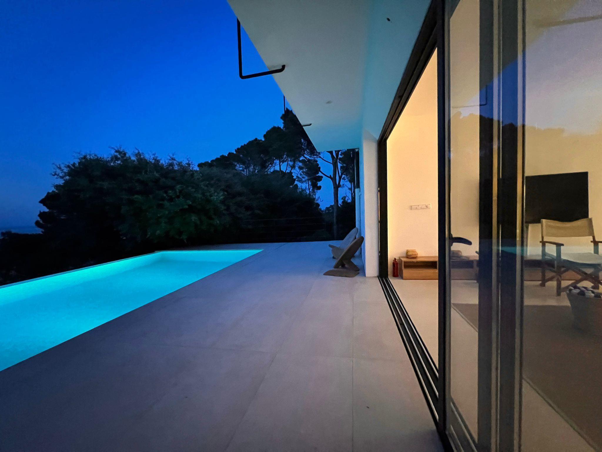 "Casa Blue Art", 6-room house 200 m2 on 2 levels. Comfortable furnishings: living/dining room with TV. Exit to the terrace. 1 room with 1 french bed (150 cm, length 190 cm), bath/WC and air conditioning. Kitchen (4 hot plates, oven, dishwasher, toaster, kettle, microwave, freezer, electric coffee machine). Shower/WC, bath/WC or shower/WC. No heating option. On the lower ground floor: living/dining room. Exit to the garden, to the swimming pool. 2 rooms, each room with 1 french bed (150 cm, length 190 cm). 2 rooms, each room with 2 beds (90 cm, length 190 cm). 1 room with 1 french bed (135 cm, length 190 cm). Kitchenette). Patio. Terrace furniture, deck chairs (3). Panoramic view of the sea, the countryside and the resort. Facilities: washing machine, iron, children's high chair, baby cot, hair dryer. Internet (WiFi, free). Parking at the house. Suitable for families. HUTG-029559 // Reg. Nr.: ESFCTU00001700700016321600000000000000000HUTG-0295599