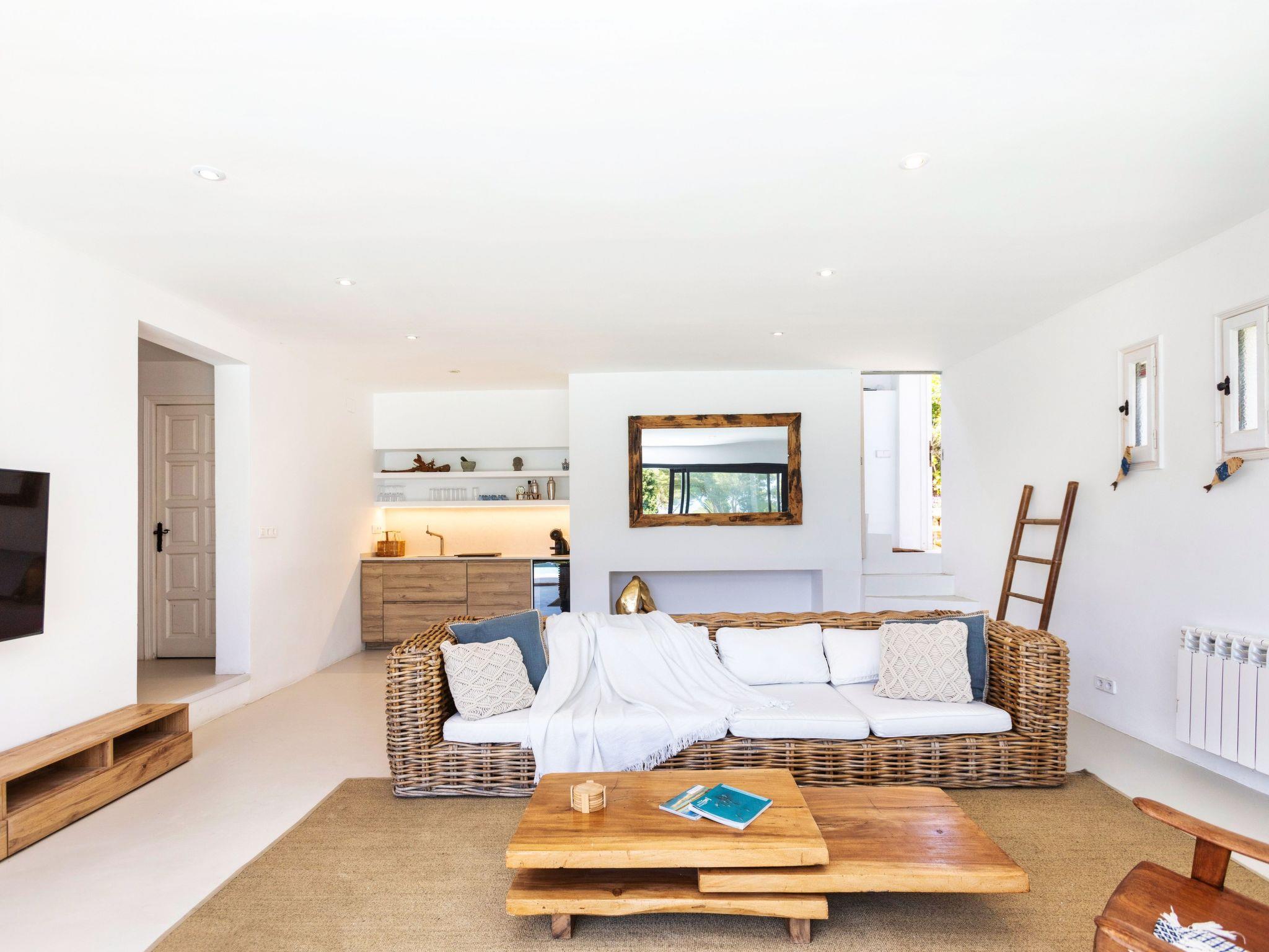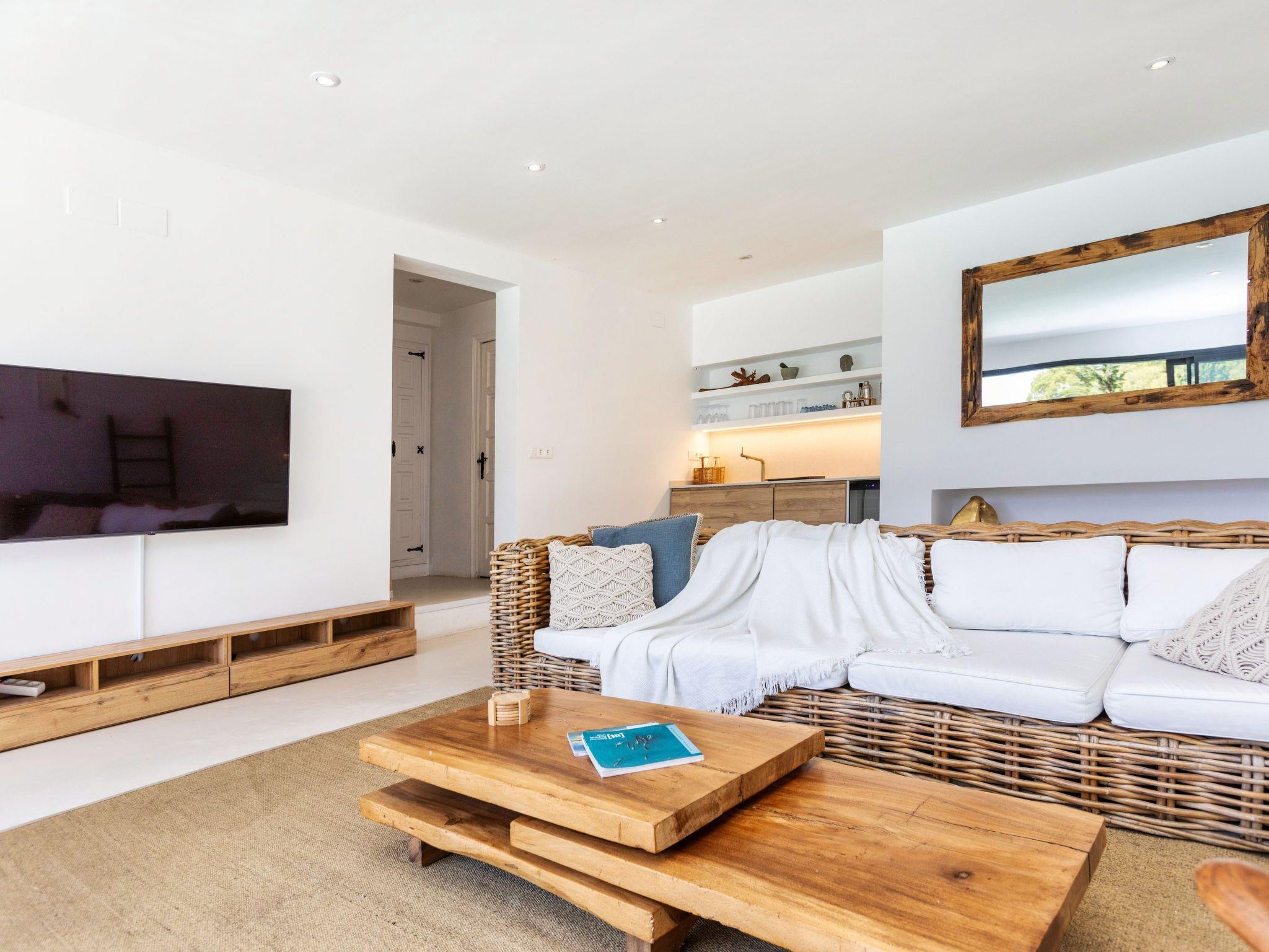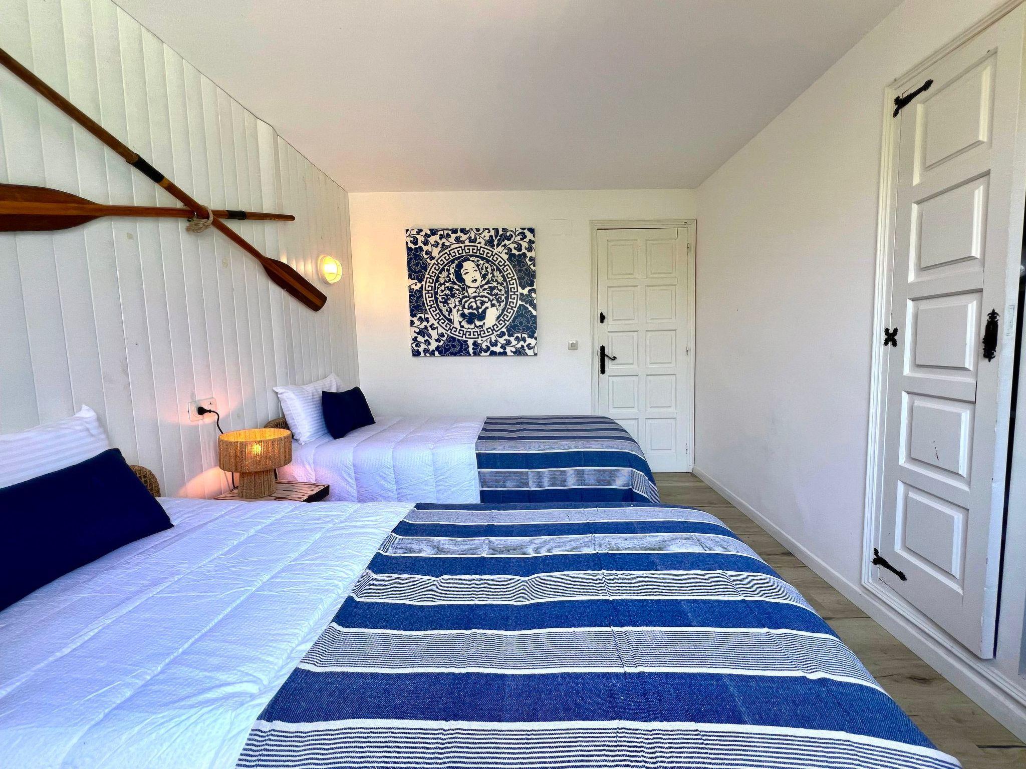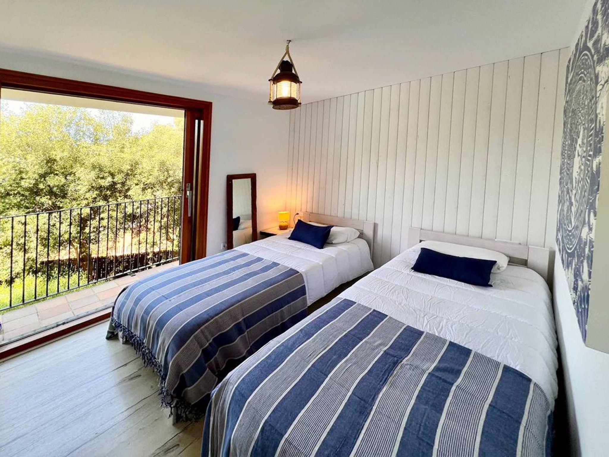 "Casa Blue Art", 6-room house 200 m2 on 2 levels. Comfortable furnishings: living/dining room with TV. Exit to the terrace. 1 room with 1 french bed (150 cm, length 190 cm), bath/WC and air conditioning. Kitchen (4 hot plates, oven, dishwasher, toaster, kettle, microwave, freezer, electric coffee machine). Shower/WC, bath/WC or shower/WC. No heating option. On the lower ground floor: living/dining room. Exit to the garden, to the swimming pool. 2 rooms, each room with 1 french bed (150 cm, length 190 cm). 2 rooms, each room with 2 beds (90 cm, length 190 cm). 1 room with 1 french bed (135 cm, length 190 cm). Kitchenette). Patio. Terrace furniture, deck chairs (3). Panoramic view of the sea, the countryside and the resort. Facilities: washing machine, iron, children's high chair, baby cot, hair dryer. Internet (WiFi, free). Parking at the house. Suitable for families. HUTG-029559 // Reg. Nr.: ESFCTU00001700700016321600000000000000000HUTG-0295599