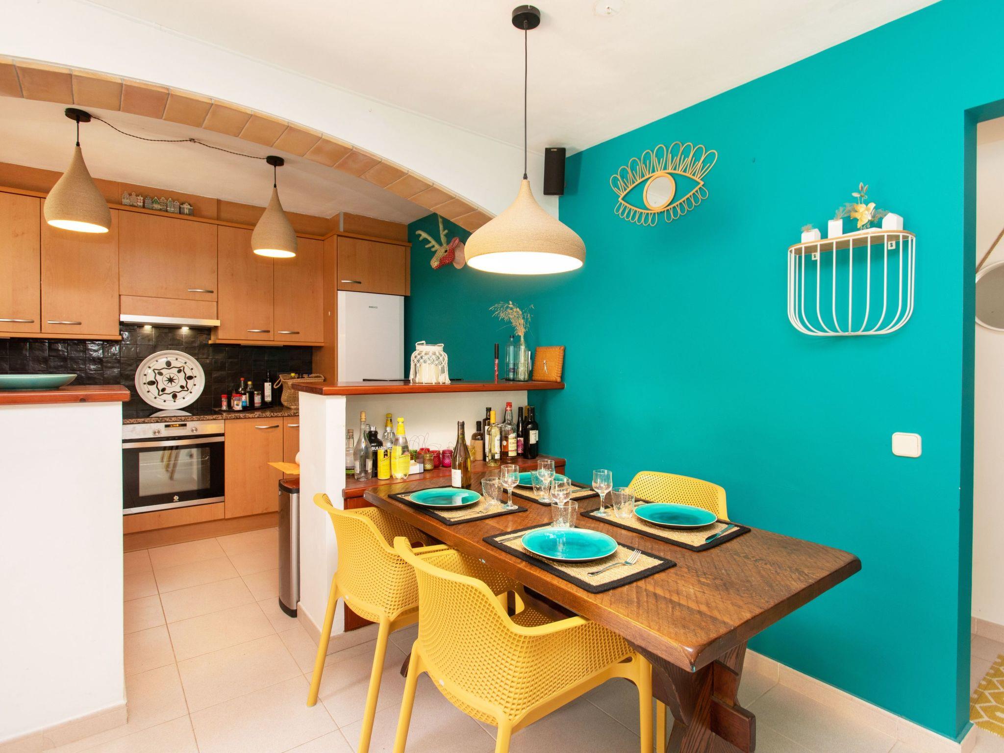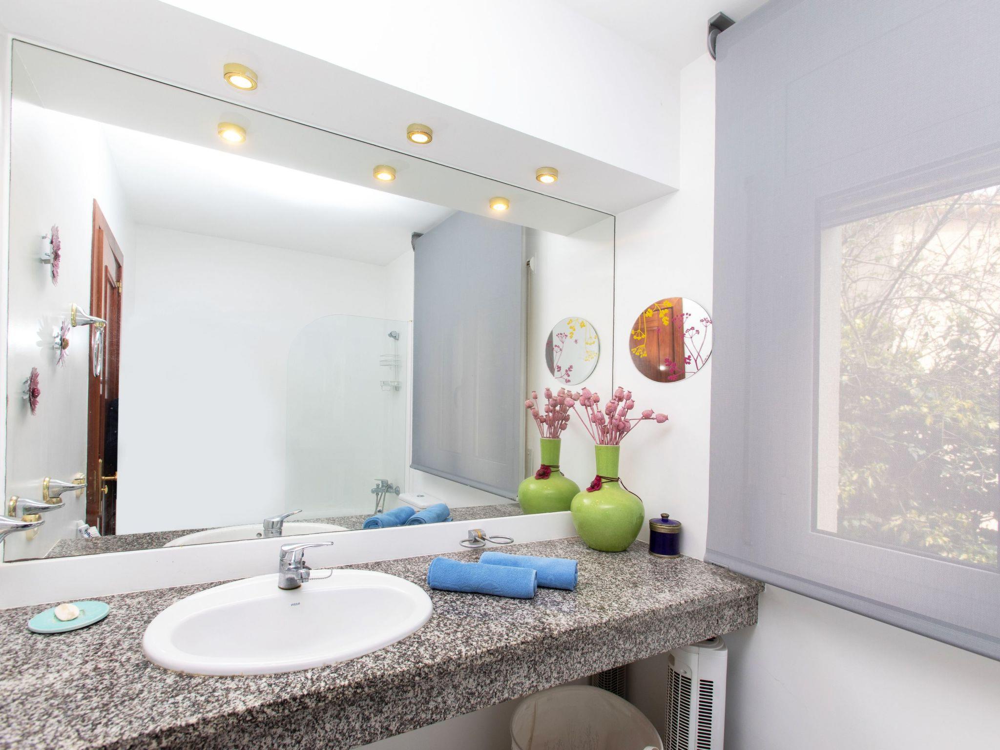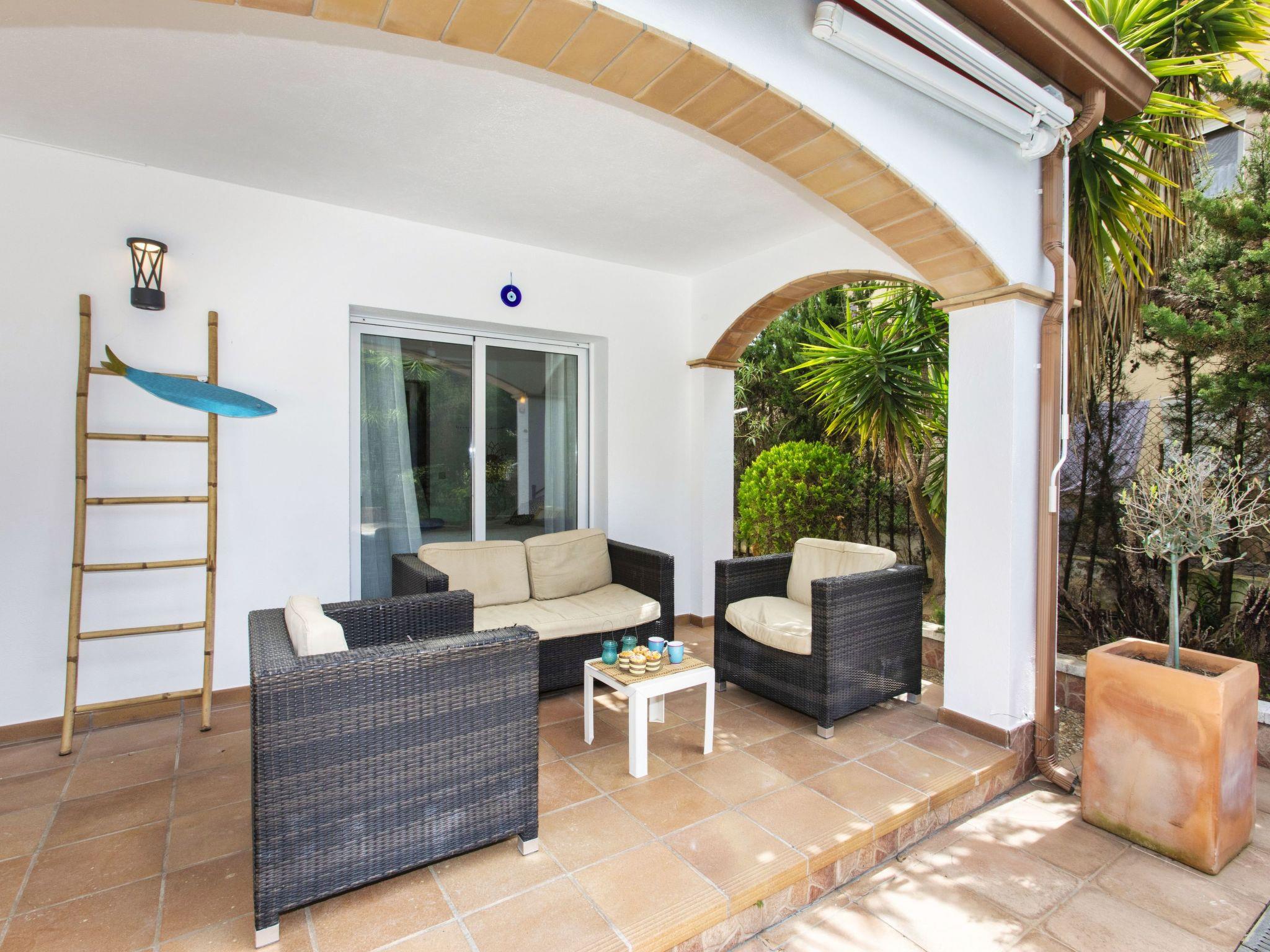 "Florencia", 5-room house 150 m2, lower ground floor. Practical furnishings: living/dining room with digital TV. Exit to the patio, to the swimming pool. 1 room with 1 french bed (135 cm, length 190 cm), bath/WC. 1 room with 1 french bed (135 cm, length 190 cm). 1 room with 2 beds (90 cm, length 190 cm). 1 room with 2 beds (90 cm, length 190 cm), shower/WC. Open kitchen (oven, dishwasher, 3 ceramic glass hob hotplates, toaster, kettle, microwave, freezer, electric coffee machine). Bath/WC. No heating option. Large patio. Terrace furniture, deck chairs, covered balcony. Facilities: washing machine, iron, children's high chair, baby cot, hair dryer. Internet (WiFi, free). Please note: suitable for families one double bedroom is outside the apartment. HUTG-026052 // Reg. Nr.: ESFCTU00001700700005158200000000000000000HUTG-0260520