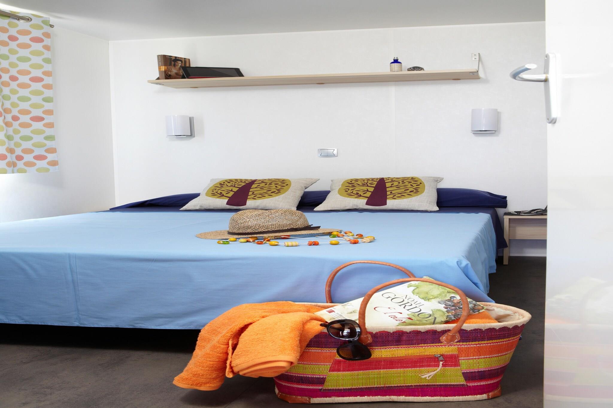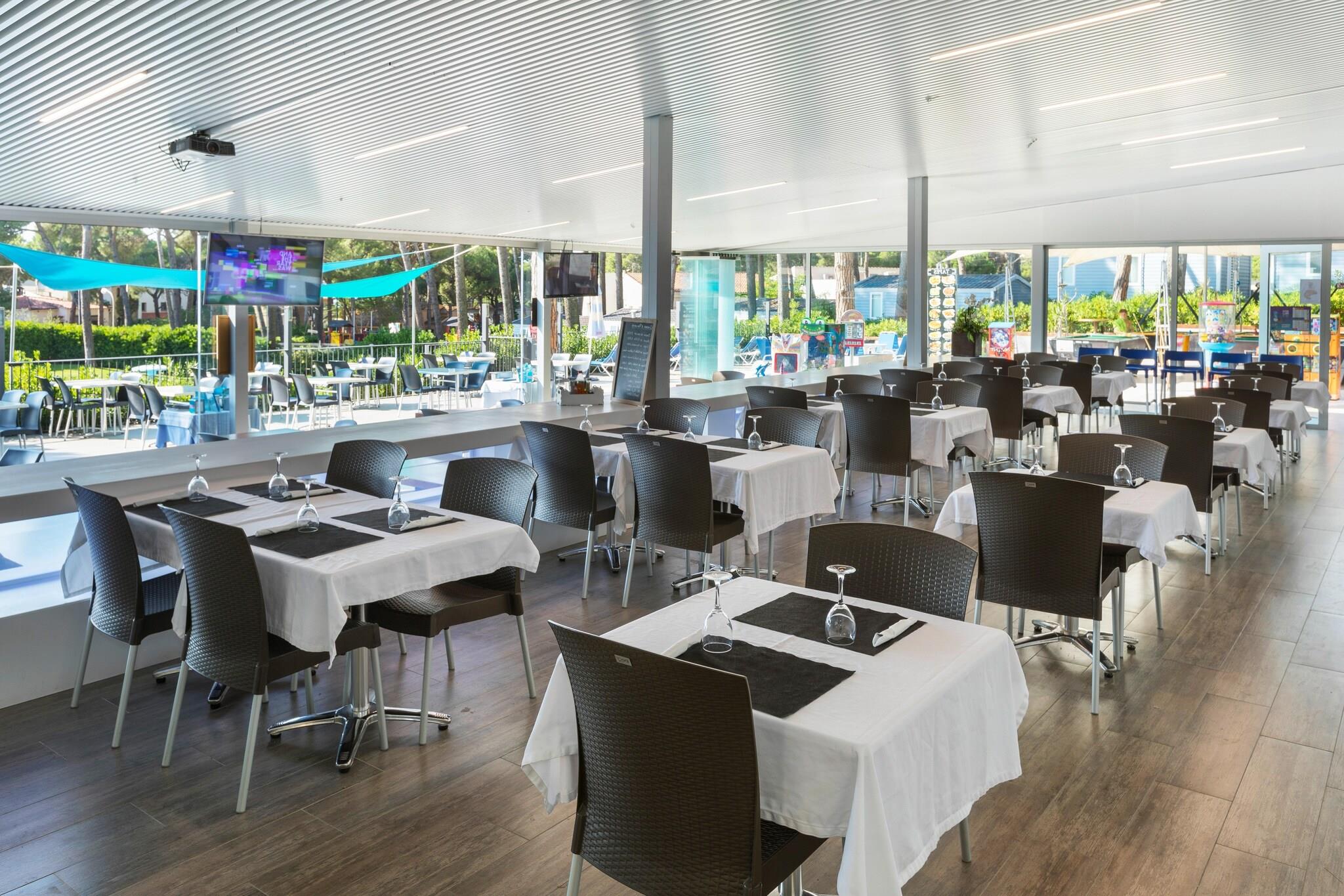 Bungalow på 30 m2 med terrasse og beliggende nær swimmingpoolen. Bungalow med 2 værelser og 1 toilet. Et værelse med dobbeltseng og et andet værelse med to enkeltsenge. Camping Interpals er omgivet af fyrretræer og ligger 450 m fra Pals Strand på Costa Brava. Dets moderne faciliteter omfatter en swimmingpool, jacuzzi og paddle-tennisbane. Bungalowerne på Interpals Camping har aircondition og alle en lille privat terrasse. De er udstyret med moderne møbler og har også varme. Køkkenerne har mikrobølgeovn, køleskab og kaffemaskine. Der er også en spiseplads. Et supermarked på selve ejendommen tilbyder en række køkkenudstyr. Camping Interpals tilbyder cykeludlejning, så gæsterne kan udforske området. Middelalderbyen Begur ligger kun 2 km derfra