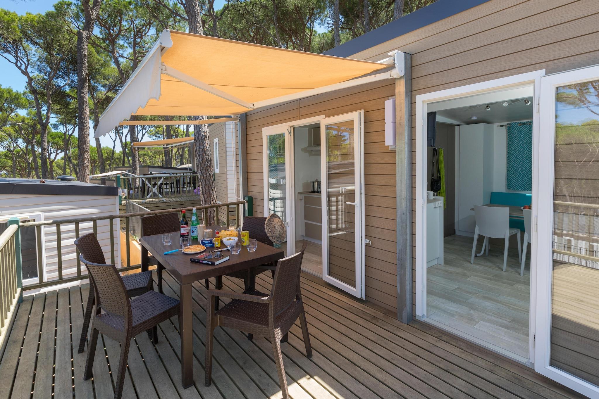 Bungalow på 26m2 til max. 5 voksne. Bungalow med 1 dobbeltseng, 1 værelse med 2 enkeltsenge og 1 sovesofa i stuen. Camping Interpals er omgivet af fyrretræer og ligger 450 m fra Pals Strand på Costa Brava. Dets moderne faciliteter omfatter en swimmingpool, jacuzzi og paddle-tennisbane. Bungalowerne på Interpals Camping har aircondition og alle en lille privat terrasse. De er udstyret med moderne møbler og har også varme. Køkkenerne har mikrobølgeovn, køleskab og kaffemaskine. Der er også en spiseplads. Et supermarked på selve ejendommen tilbyder en række køkkenudstyr. Camping Interpals tilbyder cykeludlejning, så gæsterne kan udforske området. Den middelalderlige by Begur ligger kun 2 km derfra .