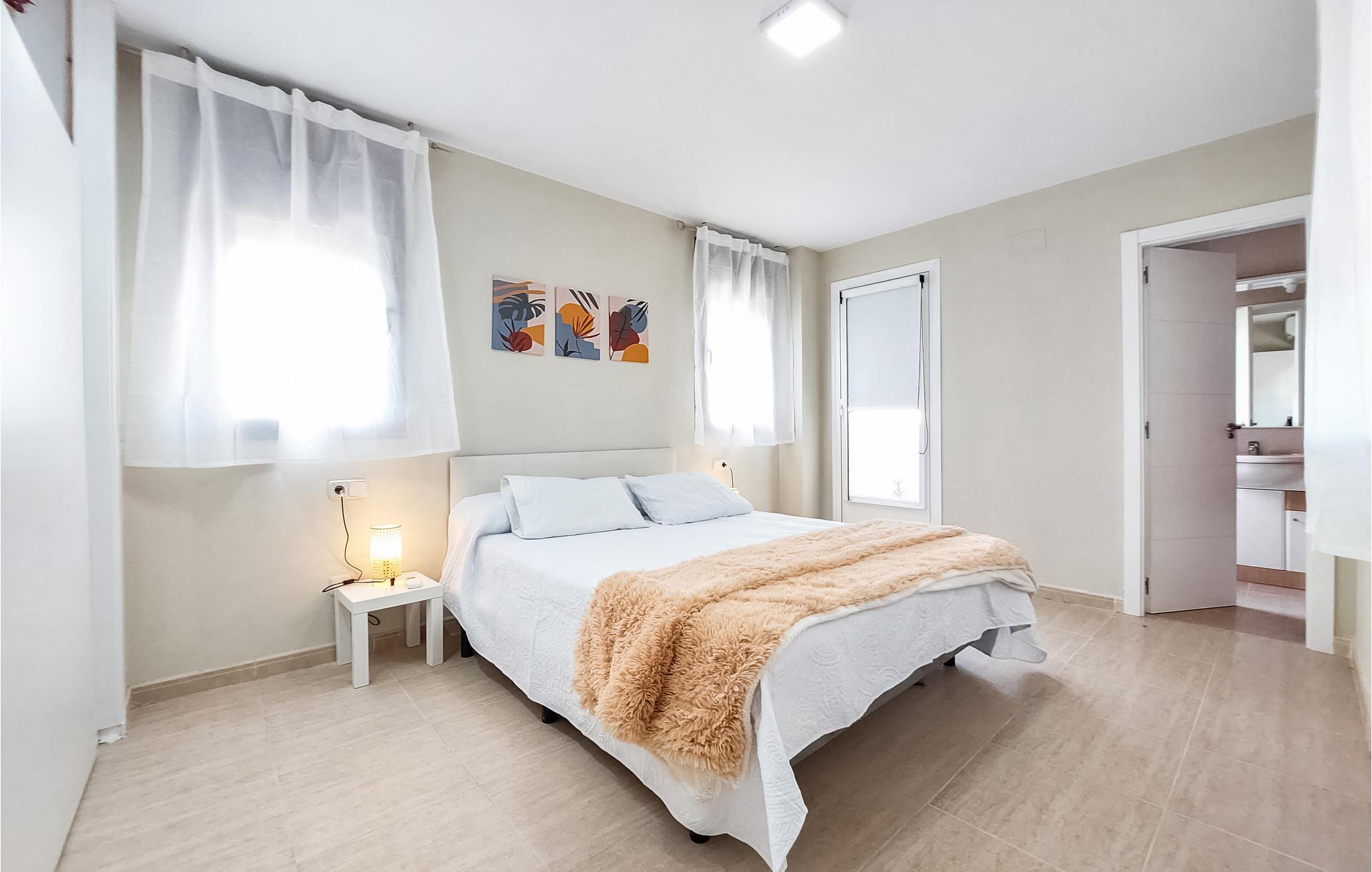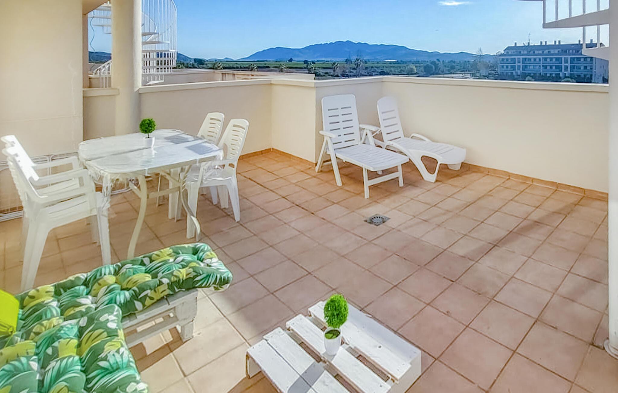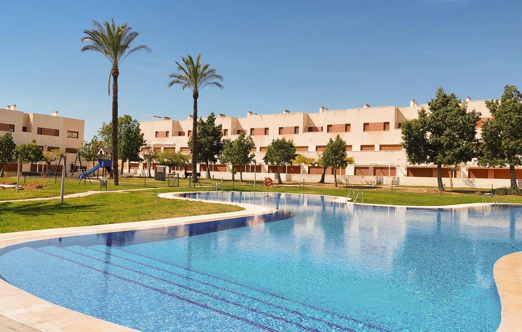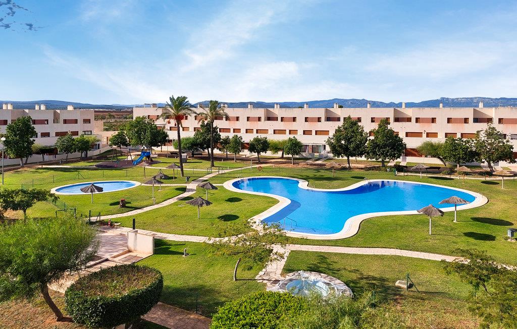 Denne ferielejlighed med fælles pool ligger meget tæt på golfbanen og i kort afstand fra fiskerbyen Vinaròs og flere naturreservater. Det gør den til en oplagt base for dem, hvis hjerte banker for golf og natur. Boligen byder på masser af plads og er ideel til en større familie eller en gruppe venner. Her finder I en lys og luftig atmosfære, og I kan glæde jer til at slappe helt af i den smagfulde indretning. Der er flere terrasser at vælge imellem, så I kan finde både skygge og sol alt efter tidspunktet på dagen. Efter dagens 18 huller er der ikke noget bedre end at køle af i poolen.