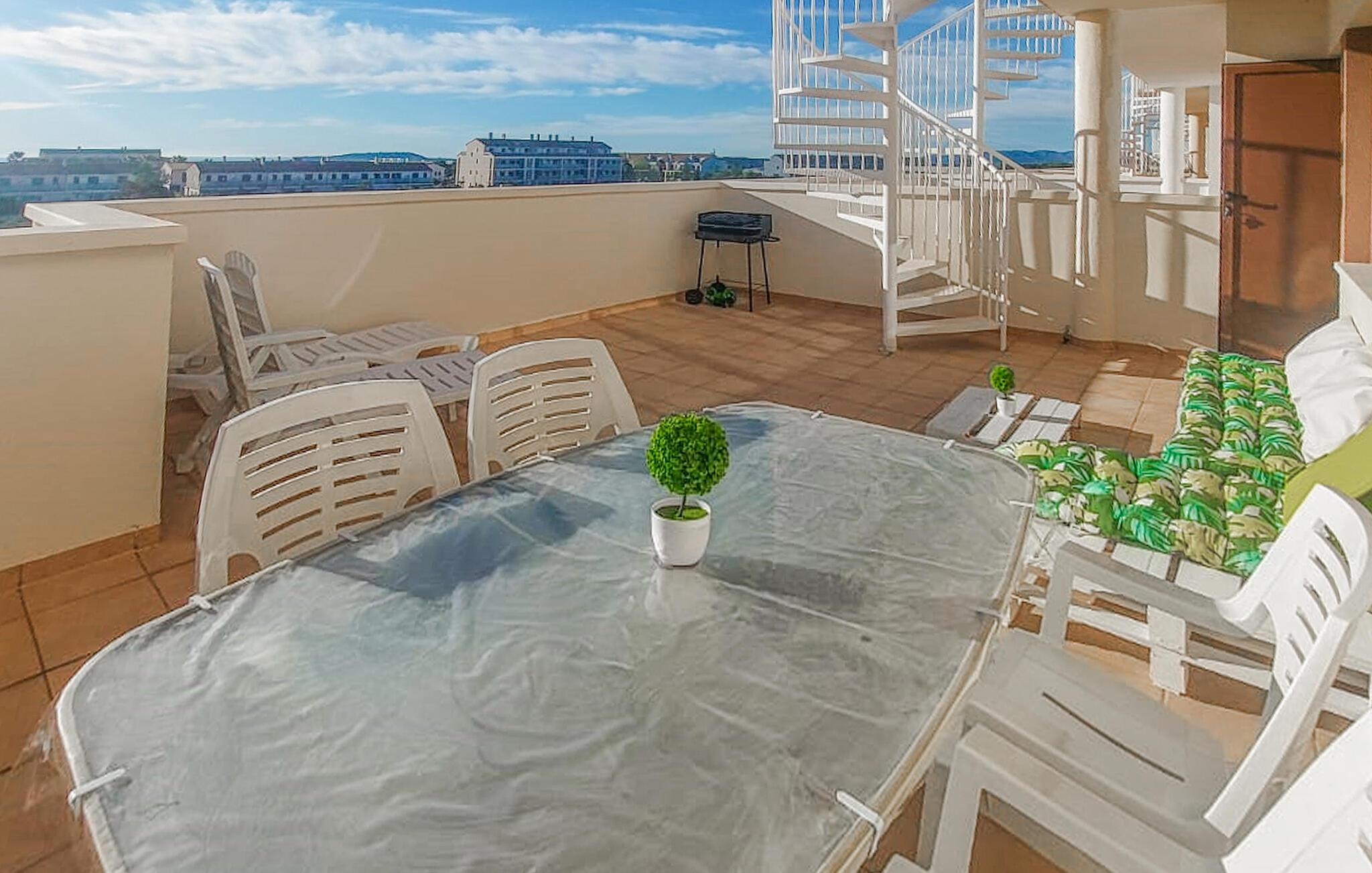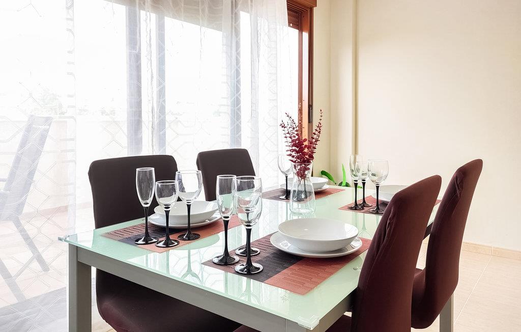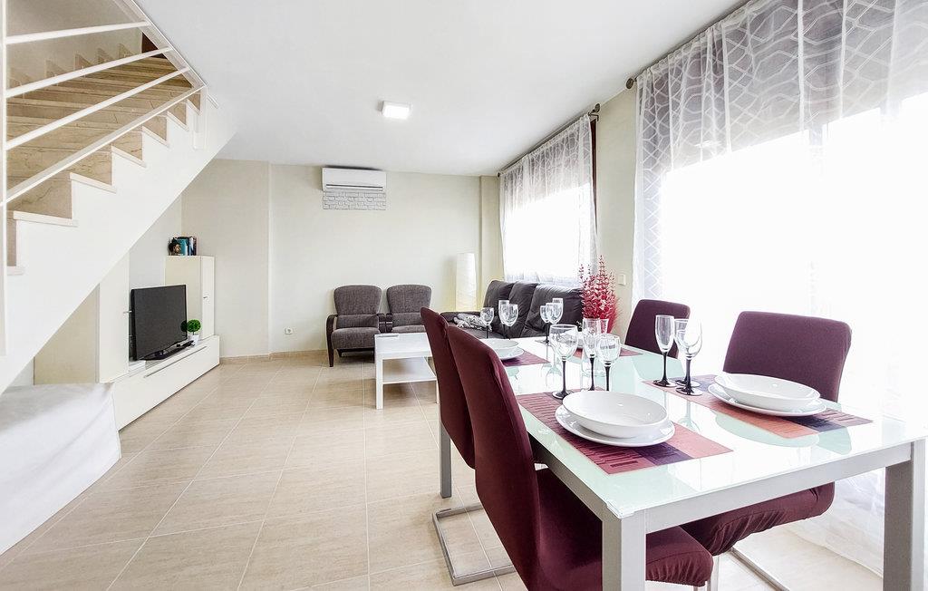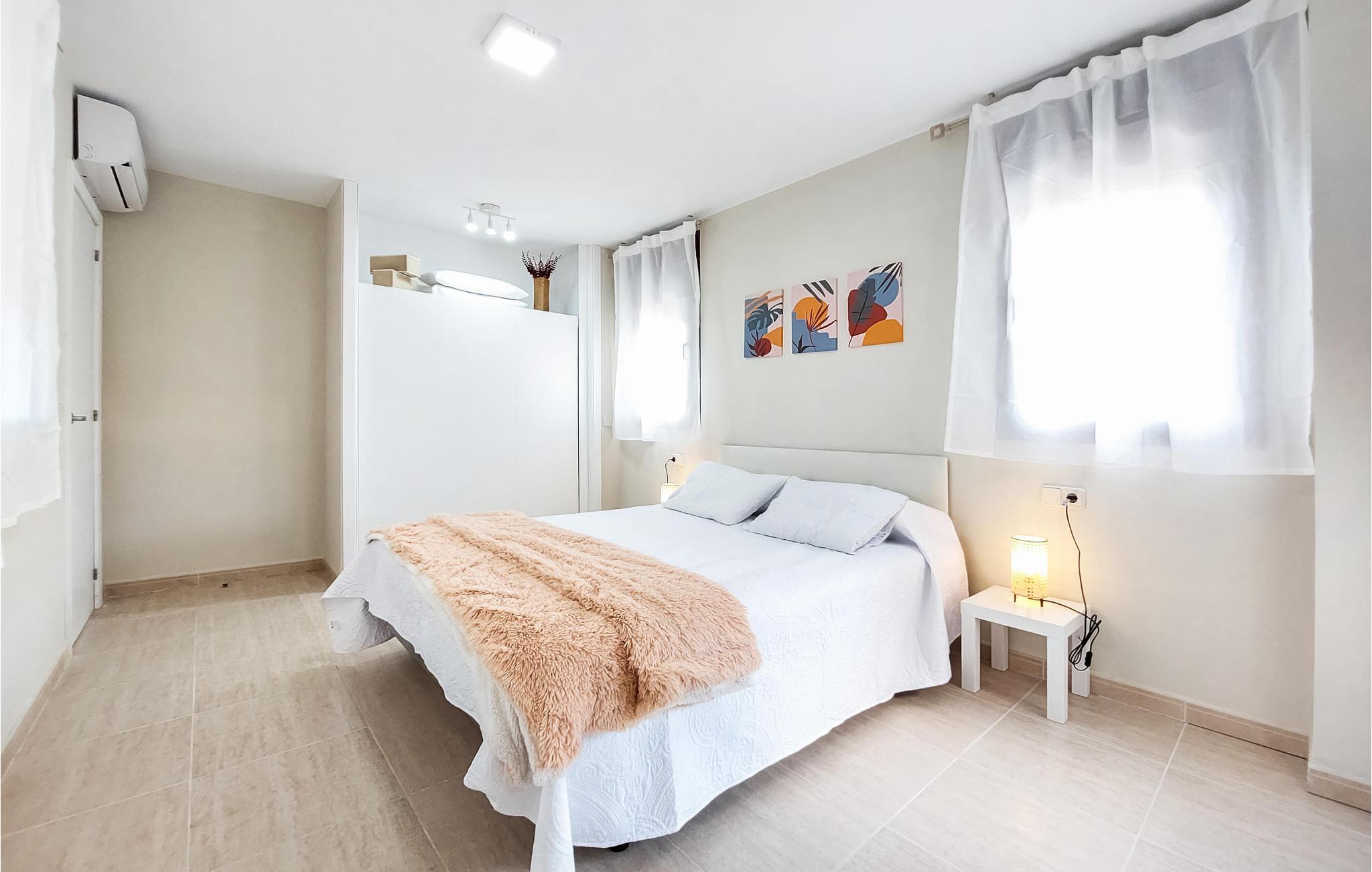 Denne ferielejlighed med fælles pool ligger meget tæt på golfbanen og i kort afstand fra fiskerbyen Vinaròs og flere naturreservater. Det gør den til en oplagt base for dem, hvis hjerte banker for golf og natur. Boligen byder på masser af plads og er ideel til en større familie eller en gruppe venner. Her finder I en lys og luftig atmosfære, og I kan glæde jer til at slappe helt af i den smagfulde indretning. Der er flere terrasser at vælge imellem, så I kan finde både skygge og sol alt efter tidspunktet på dagen. Efter dagens 18 huller er der ikke noget bedre end at køle af i poolen.