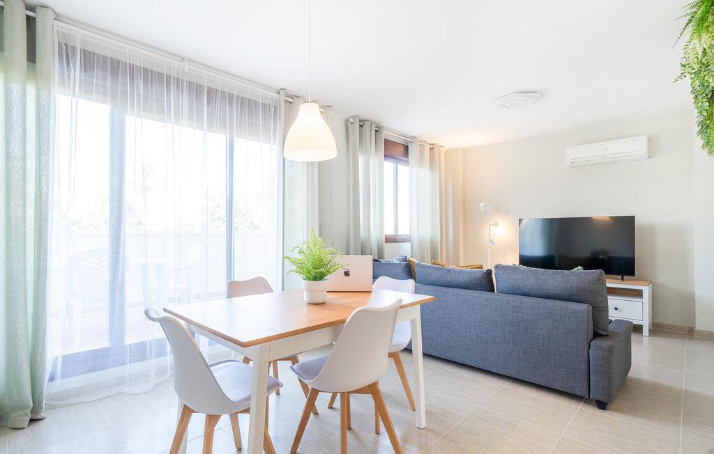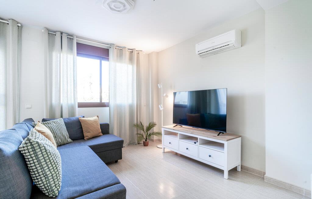 Denne rummelige og lyse ferielejlighed i Panorámica Golf tilbyder jer og familien eller venner det perfekte tilflugtssted for en afslappende ferie. Den smagfulde indretning og udstyr af høj kvalitet sikrer, at I straks føler jer hjemme. Den rummelige tagterrasse lægger op til sociale grillaftener, mens boligkompleksets poolområde byder på forfriskning og afslapning. Til aktive dage er der paddletennisbane til rådighed, så der er noget for enhver smag. jeres små kan også udforske legepladsen.