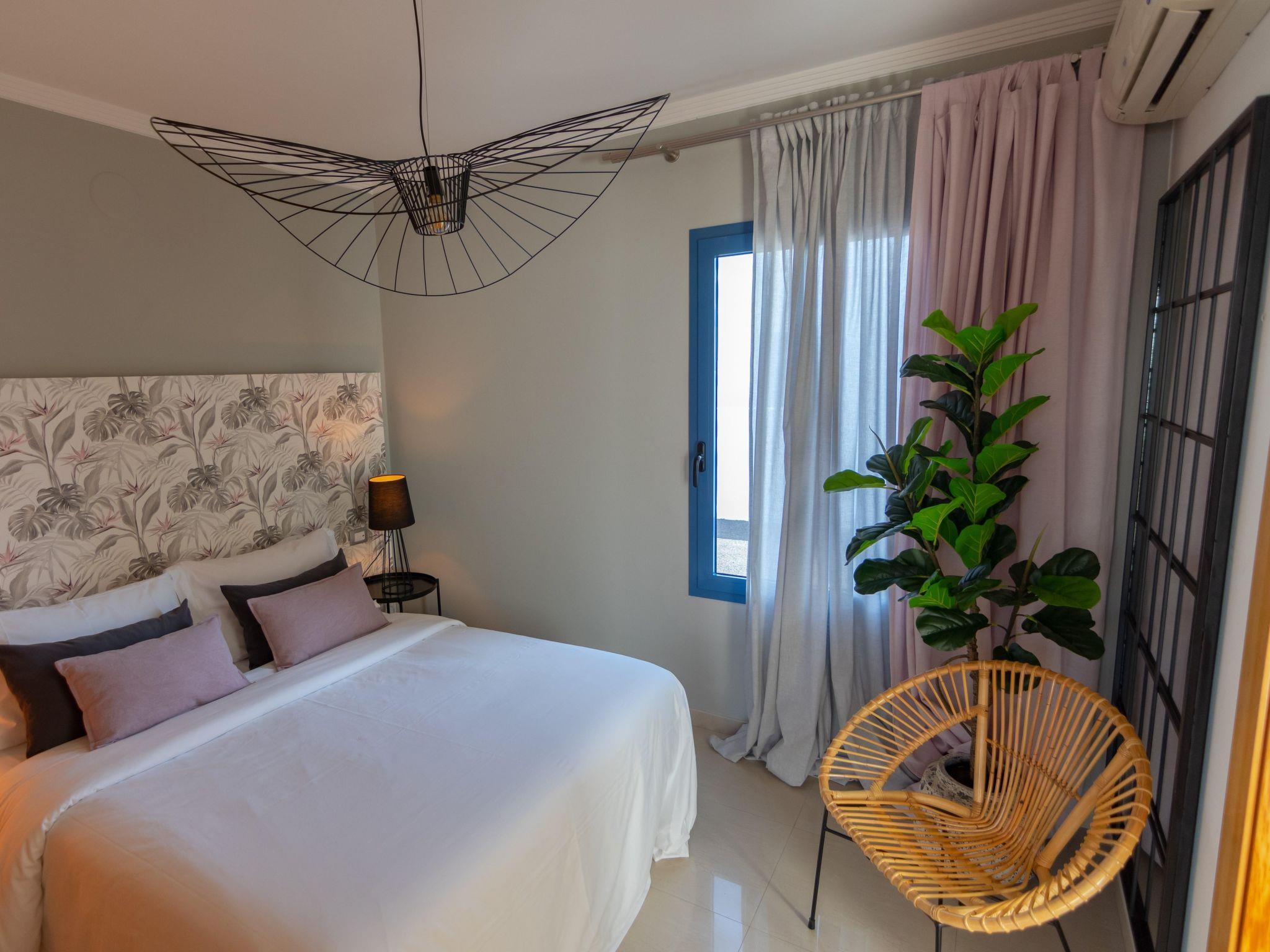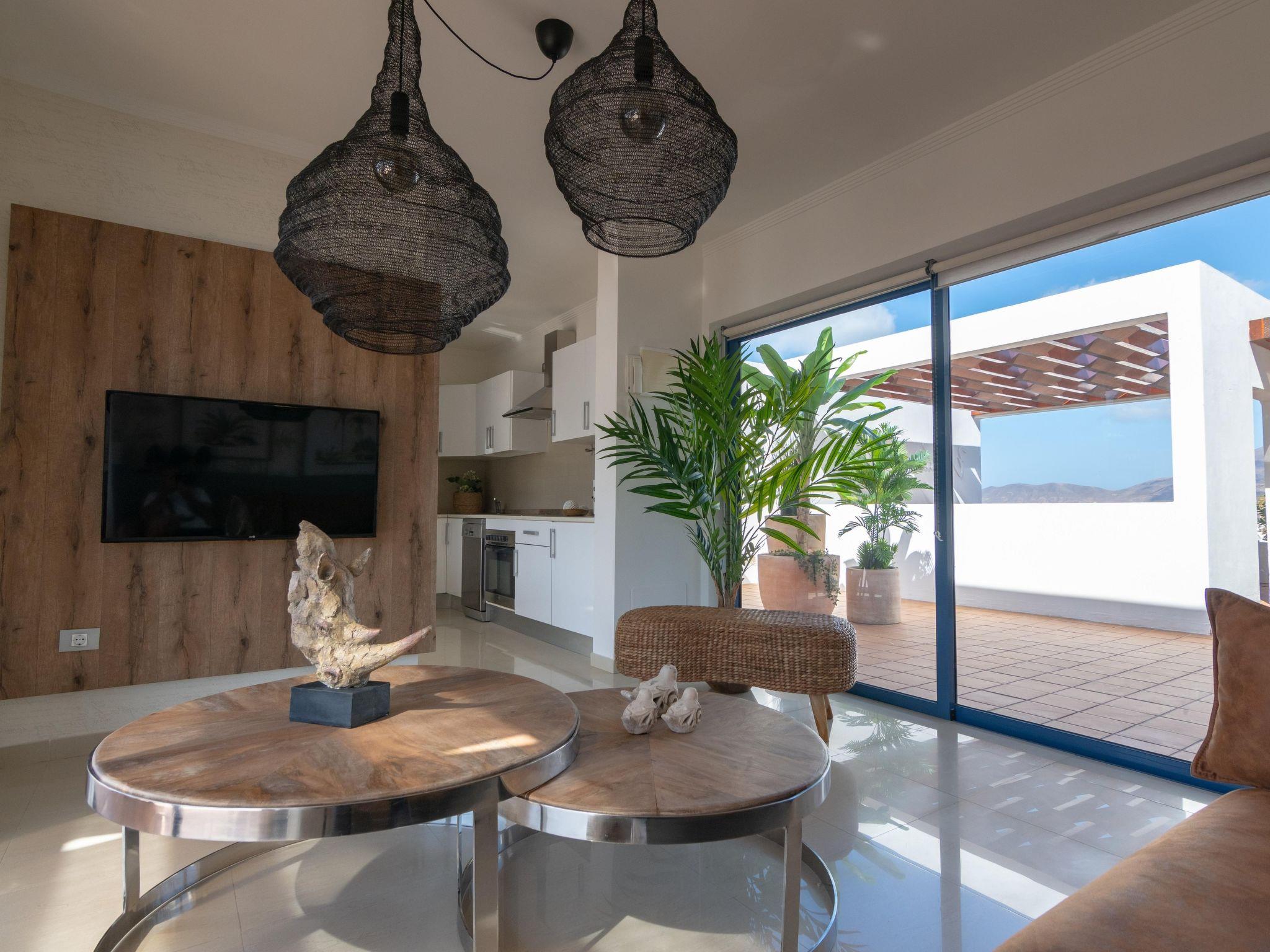 "Guajara", 3-room terraced house 65 m2. Practical and comfortable furnishings: living/dining room with satellite TV, digital TV, flat screen and air conditioning. Exit to the terrace, to the swimming pool. 1 room with 1 french bed (150 cm, length 190 cm), bath/WC and air conditioning. 1 room with 2 beds (90 cm, length 190 cm). Open kitchen (oven, dishwasher, 4 ceramic glass hob hotplates, toaster, kettle, microwave, electric coffee machine, Capsules for coffee machine (Dolce Gusto)). Exit to the terrace. Bath/WC. Terrace. Terrace furniture, deck chairs (4). View of the sea, the mountains and the swimming pool. Facilities: washing machine, safe, iron, children's high chair, baby cot, hair dryer. Internet (WiFi, free). Parking. Please note: non-smoking house. VV-35-3-0000318 // Reg. Nr.: ESFCTU0000350190005225860000000000000VV-35-3-00003182