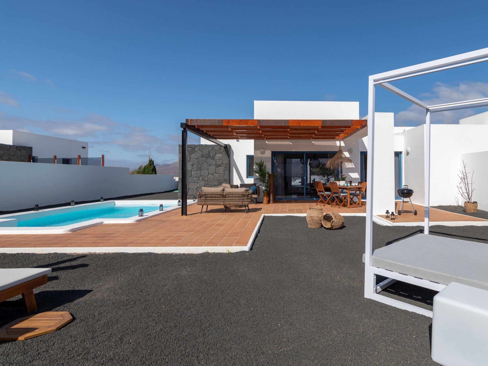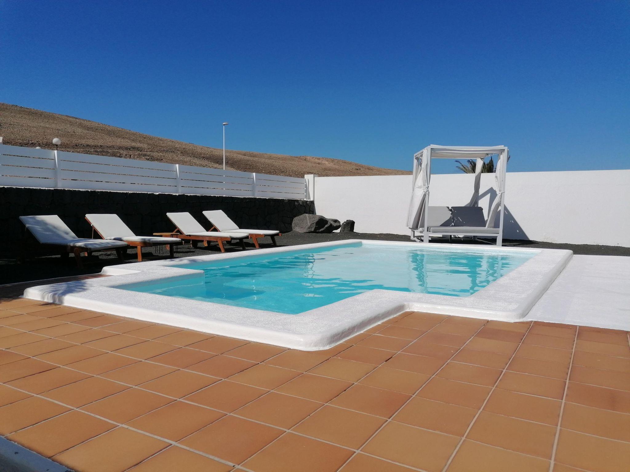 Bellavista 3 km from Playa Blanca: Beautiful terraced house "Bellavista". 2.5 km from the sea. Private: property 500 m2, swimming pool angular, heated (6 x 4 m, seasonal availability: 01.Jan. - 31.Dec.) with internal staircase. Barbecue. Stepped path (14 steps) to the house. Supermarket 500 m, restaurant 1.5 km, bus stop "El Pueblito" 550 m, sandy beach "Flaamingo" 2.5 km. Golf course (18 hole) 32 km, riding stable 1.5 km. Nearby attractions: Paque acúatico Agualava 1.8 km. Please note: car recommended.