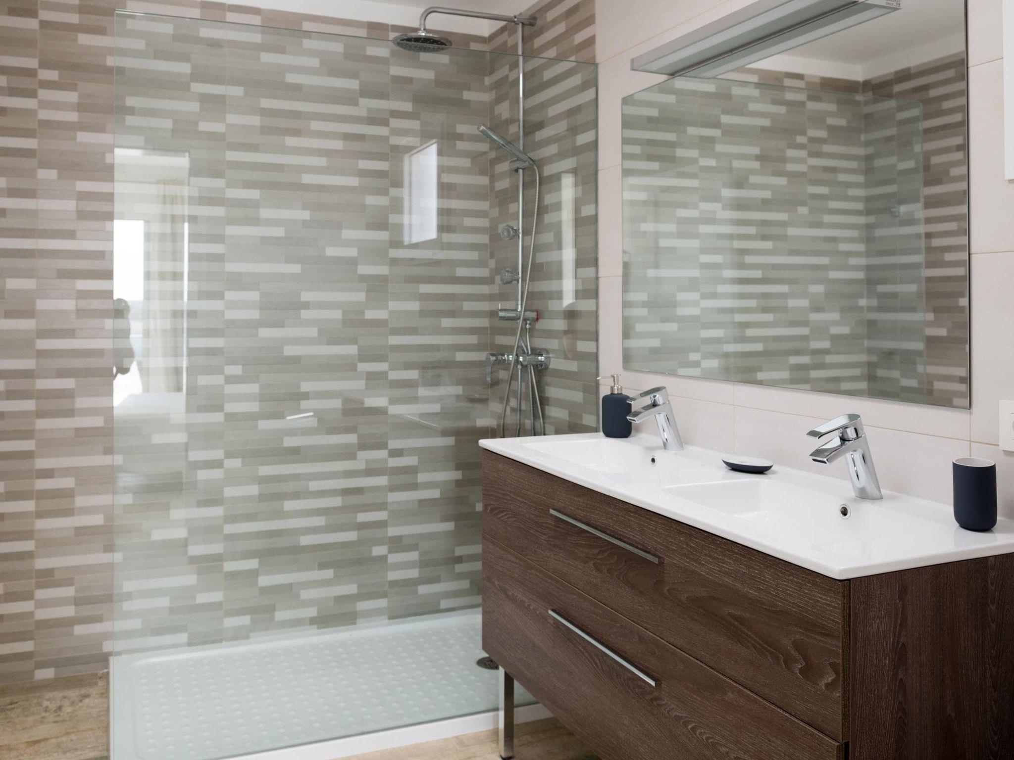 "Maria", 4-room terraced house 65 m2. Practical and comfortable furnishings: living/dining room with satellite TV, digital TV, flat screen and air conditioning. Exit to the terrace, to the swimming pool. 1 room with 1 french bed (1 x 150 cm, length 190 cm), shower/WC and air conditioning. 2 rooms, each room with 2 beds (90 cm, length 190 cm). Open kitchen (oven, dishwasher, 3 ceramic glass hob hotplates, toaster, kettle, microwave, electric coffee machine). Exit to the terrace. Shower/WC. Terrace. Terrace furniture, barbecue (portable), deck chairs (4). View of the mountains, the swimming pool and the garden. Facilities: washing machine, safe, iron, children's high chair, baby cot for up to 2 year olds, hair dryer. Internet (WiFi, free). Parking. Please note: non-smoking house. VV-35-3-0002559 // Reg. Nr.: ESFCTU0000350190004217040000000000000VV-35-3-00025597