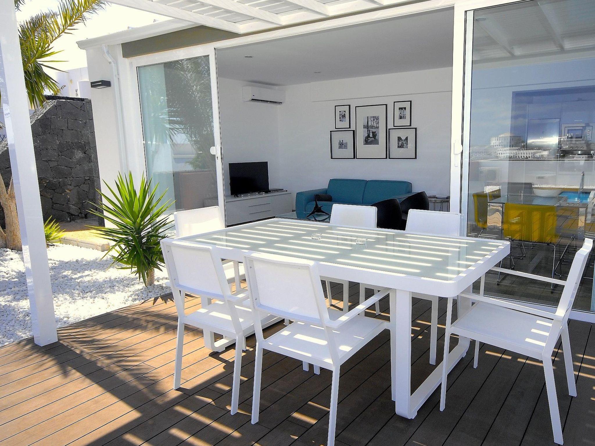 Beautiful terraced house "Maria". 450 m from the sea, 450 m from the beach. Private: property 100 m2, swimming pool angular, heated (5 x 3 m, seasonal availability: 01.Jan. - 31.Dec.). Barbecue. Stepped path (14 steps) to the house. Supermarket 350 m, bus stop "Las Coloradas" 75 m, sandy beach "Playa Blanca" 450 m. Nearby attractions: Paque acúatico Agualava 650 m. Please note: car recommended.
