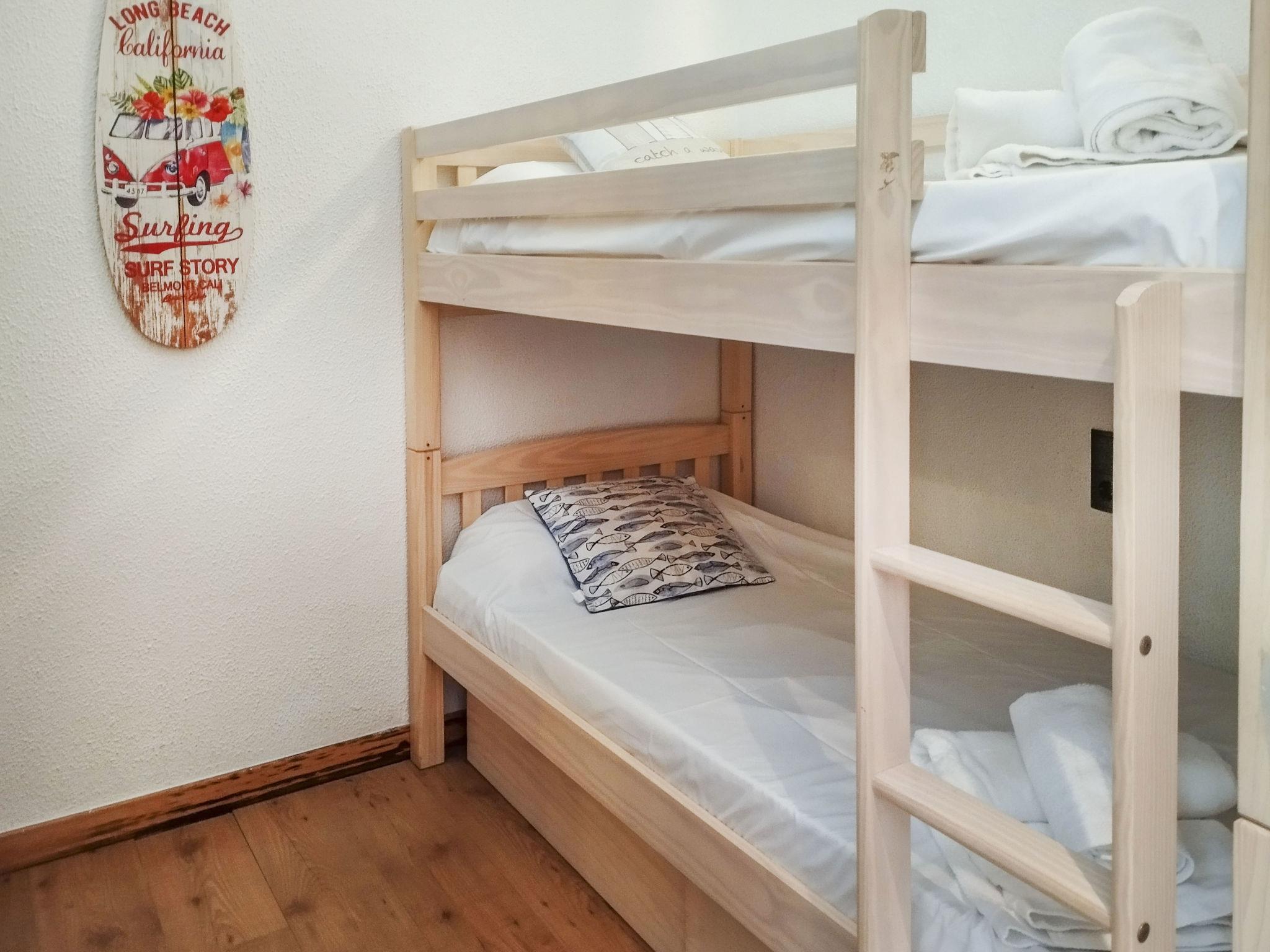 "Neptuno", 3-room apartment 50 m2. Bright, cosy furnishings: living/dining room with dining table, digital TV, air conditioning and forced-air heating. Exit to the balcony. 1 room with 1 french bed (160 cm, length 200 cm), fan. 1 room with 1 x 2 bunk beds (90 cm, length 190 cm). Kitchenette (oven, 3 ceramic glass hob hotplates, toaster, kettle, microwave, freezer, electric coffee machine). Bath/WC. Balcony. Balcony furniture. View of the resort. Facilities: washing machine, iron, hair dryer. Internet (WiFi, free). Please note: non-smokers only. HUTG-061616 // Reg. Nr.: ESFCTU00001701700016337600000000000000000000000000002